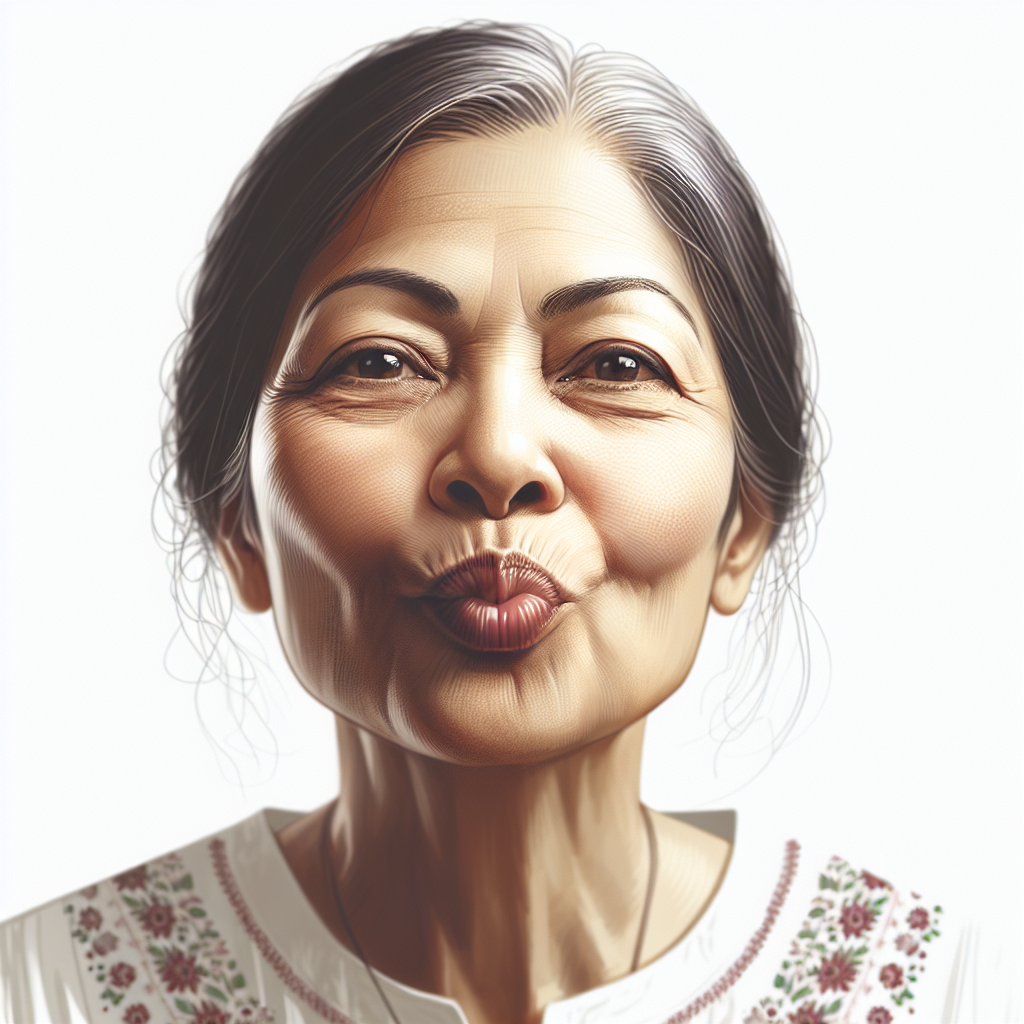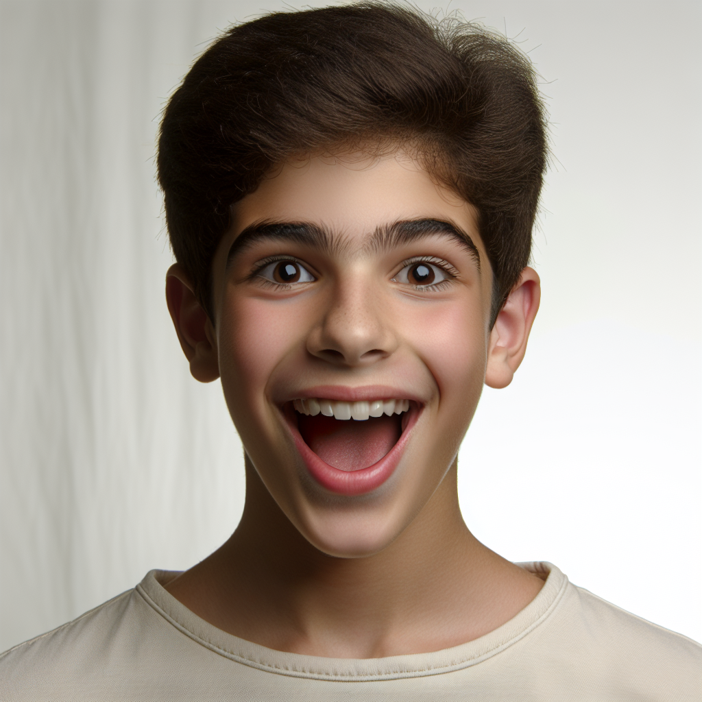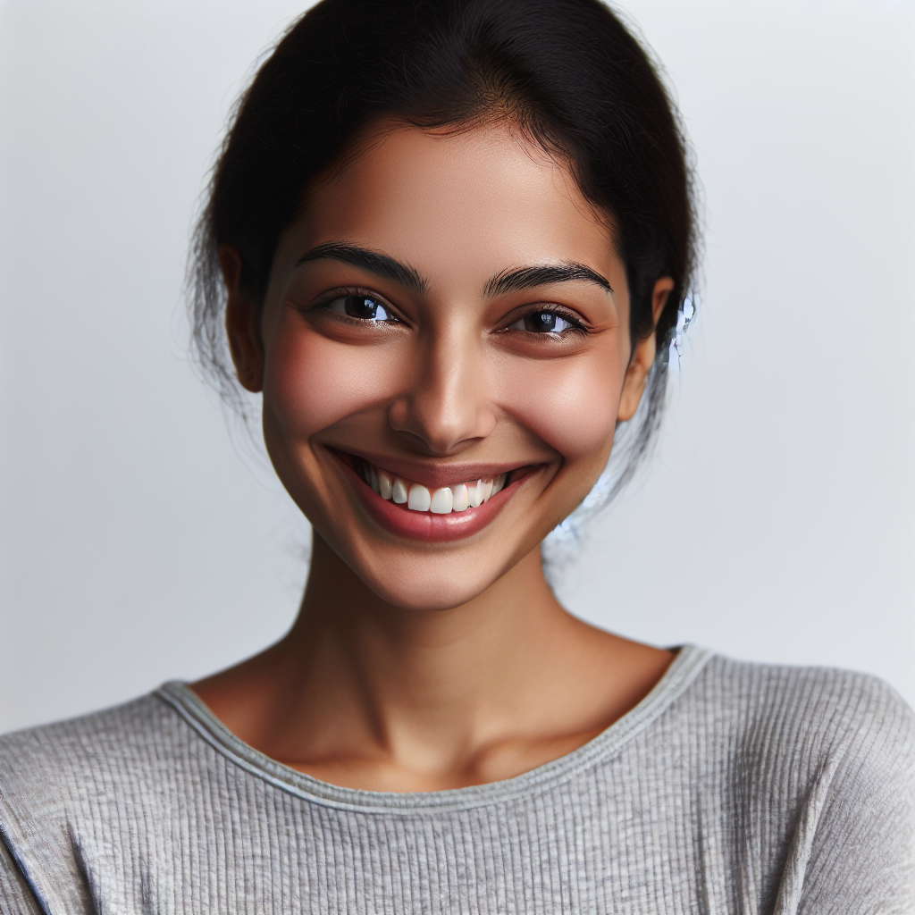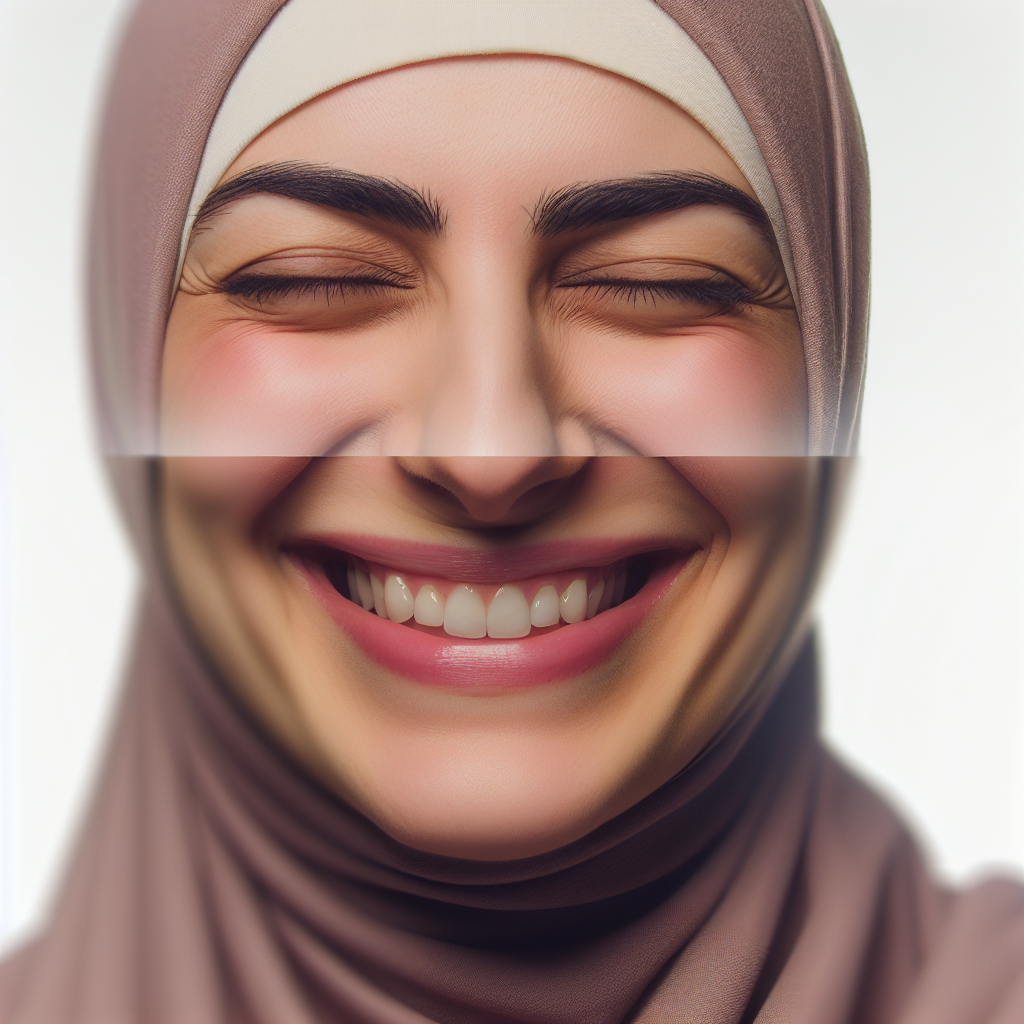 "prompt_used": "A adult showing the emotion: 'giggle'. Clear facial expression, plain white background.",