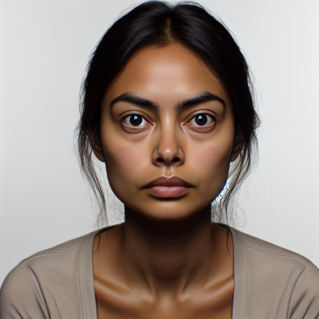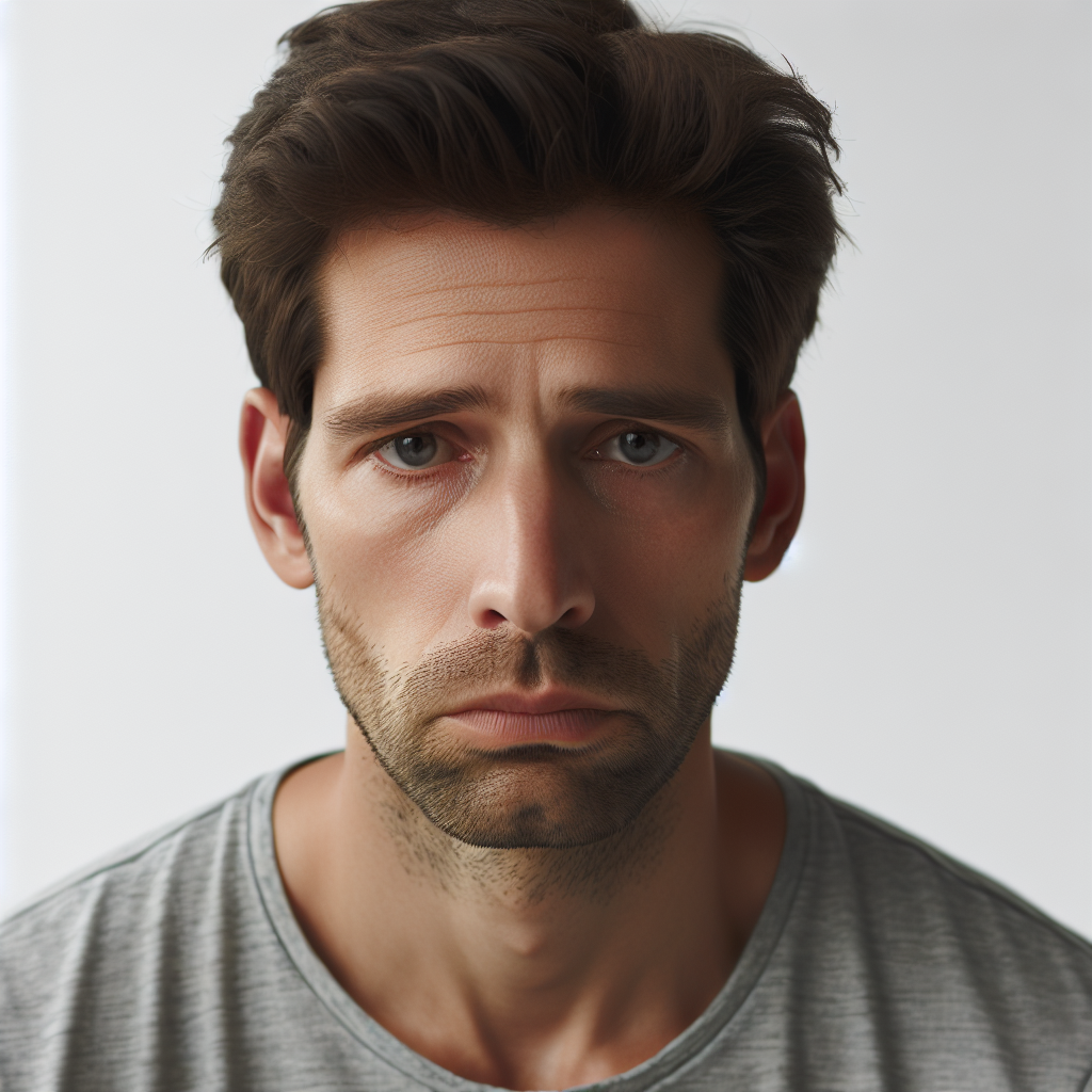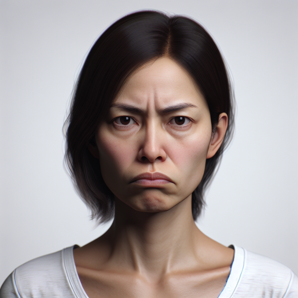 "prompt_used": "A adult showing the emotion: 'frown'. Clear facial expression, plain white background.",