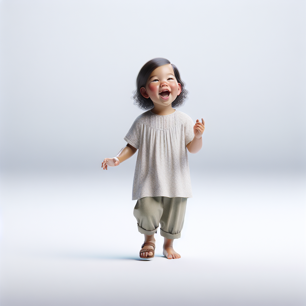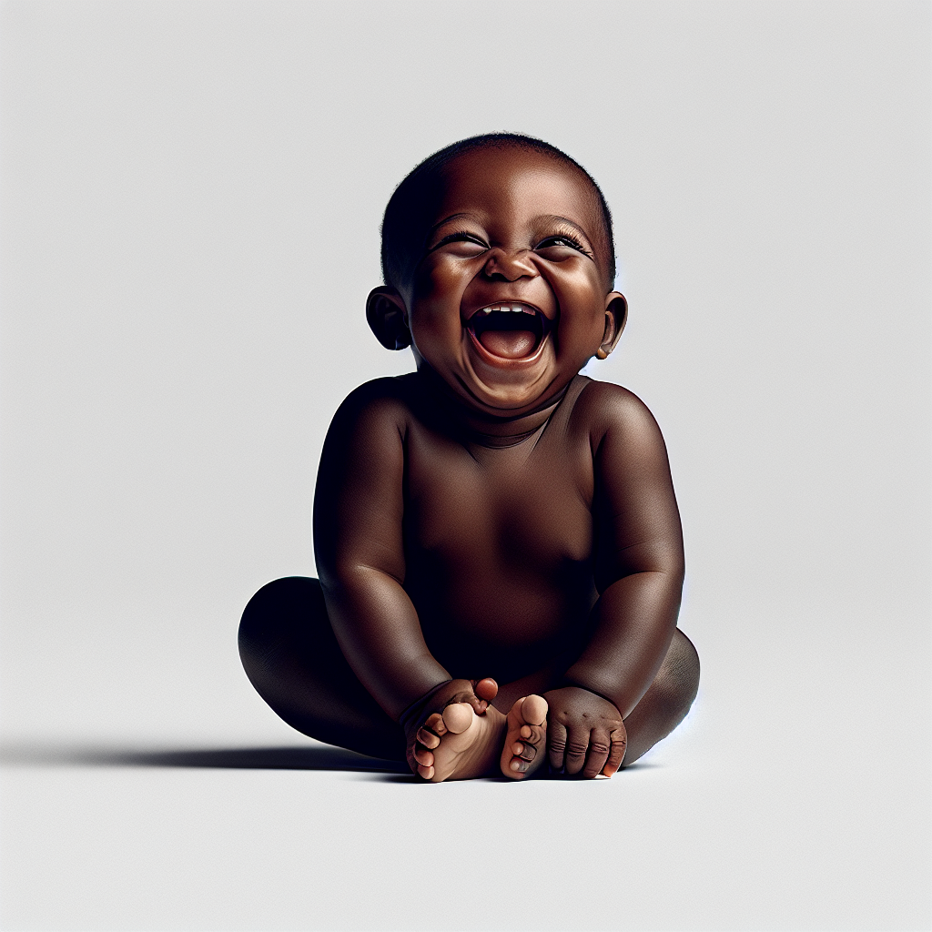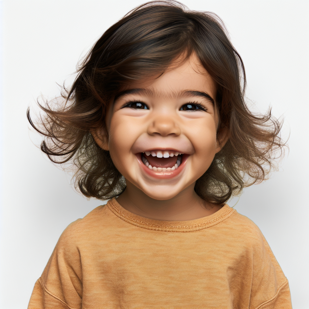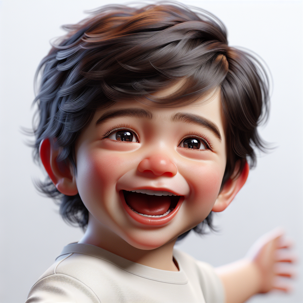 "prompt_used": "A toddler showing the emotion: 'giggle'. Clear facial expression, plain white background.",