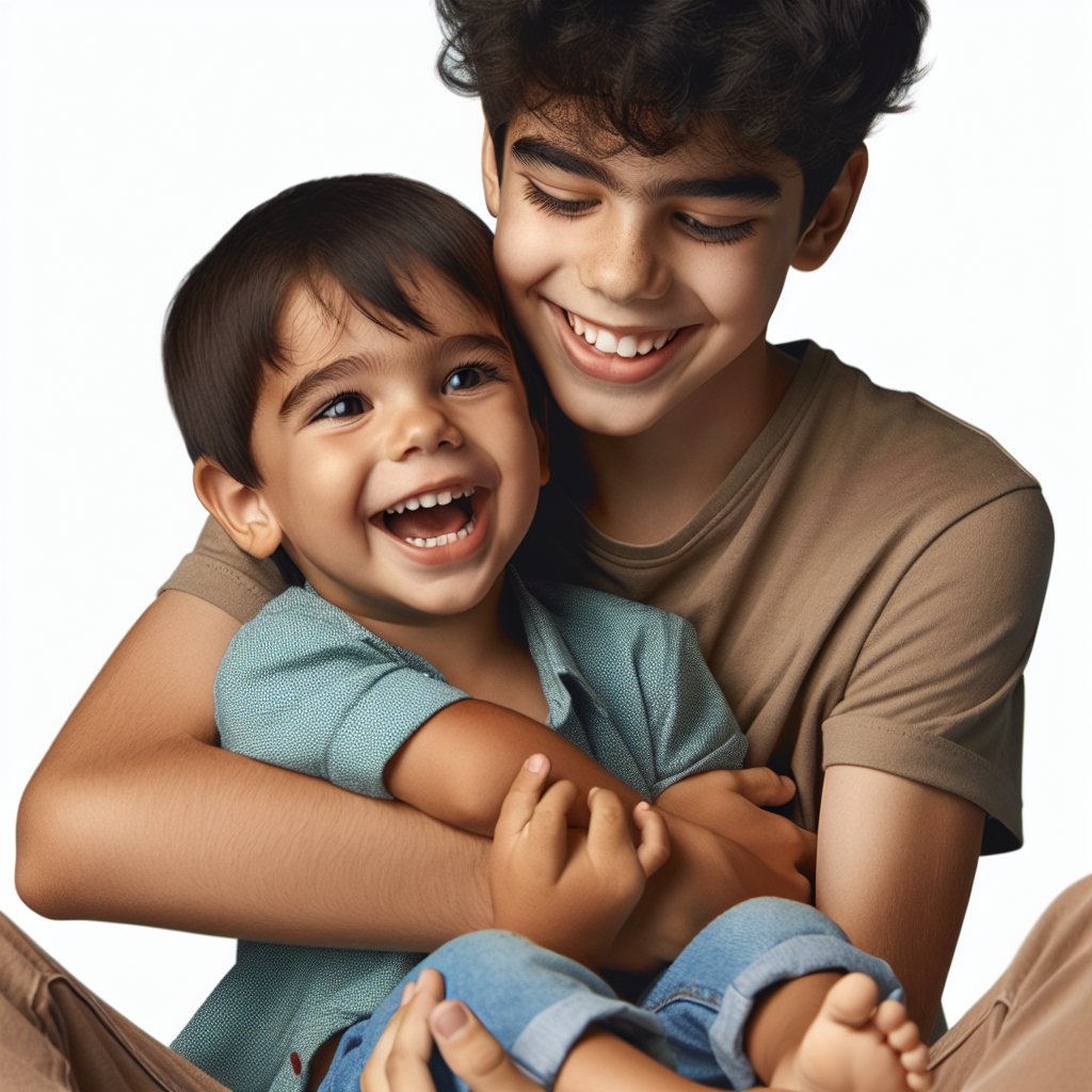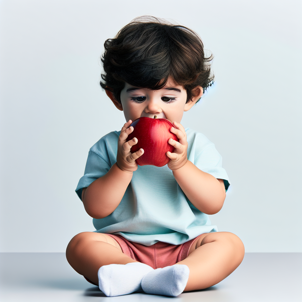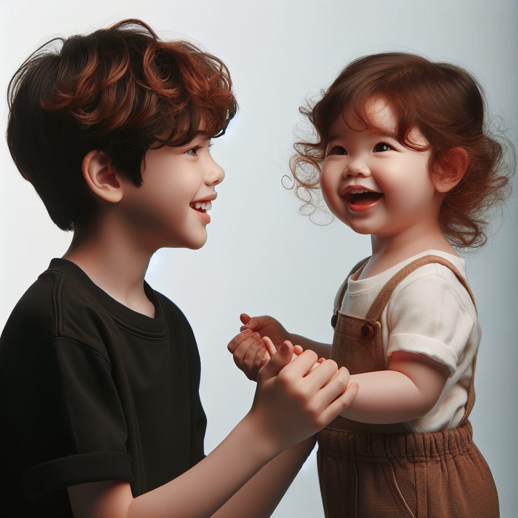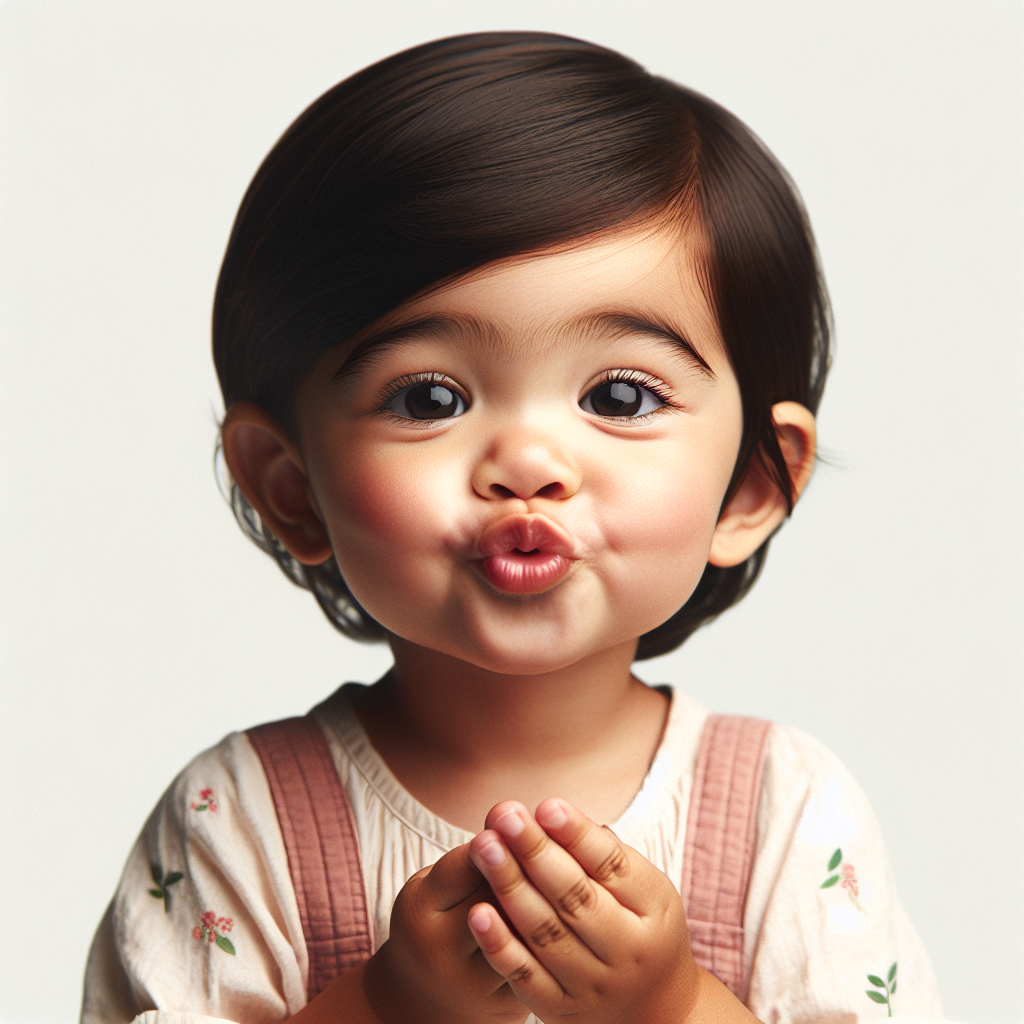 "prompt_used": "A toddler showing the emotion: 'giggle'. Clear facial expression, plain white background.",