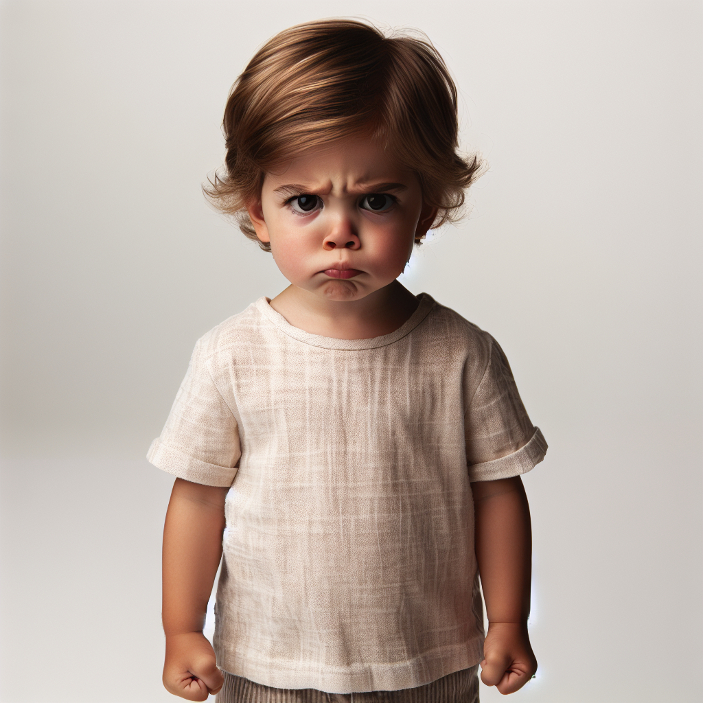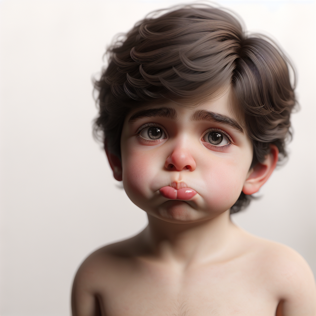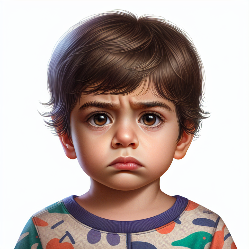 "prompt_used": "A toddler showing the emotion: 'pout'. Clear facial expression, plain white background.",