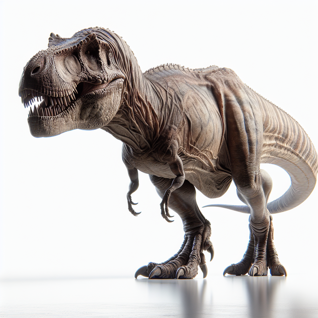 "enhanced_prompt": "Prompt: Create an ultra-realistic, full-body image of a Tyrannosaurus Rex, centered against a white background. The T-Rex should be depicted in incredible detail, showcasing its textured skin, powerful limbs, and distinctive features like its large head and sharp teeth. Use soft, natural colors to give the dinosaur a lifelike appearance. Ensure the focus is solely on the dinosaur, with no additional elements in the image.",
