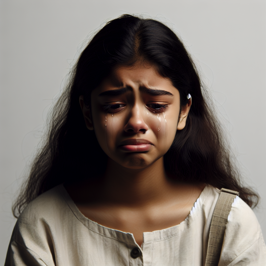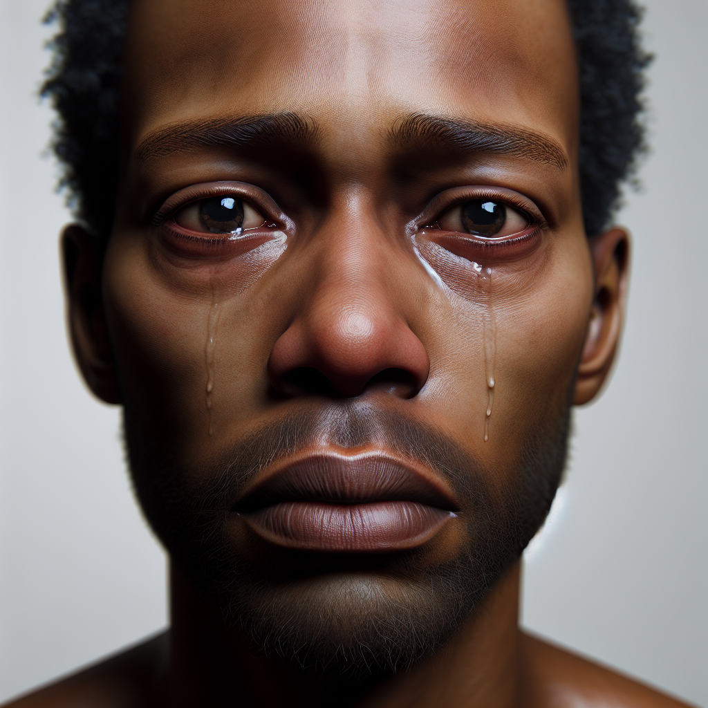 "enhanced_prompt": "Prompt for DALL·E 3: Create a highly realistic image of an adult human centered in the frame with a tearful expression. The facial expression should clearly convey the emotion of sadness or crying, with one or two tears visible on the face. Use a plain white background with minimal distractions and simple, natural lighting to focus on the emotional expression. Avoid props or clutter to ensure the adult's tearful expression is the clear focal point of the image.",