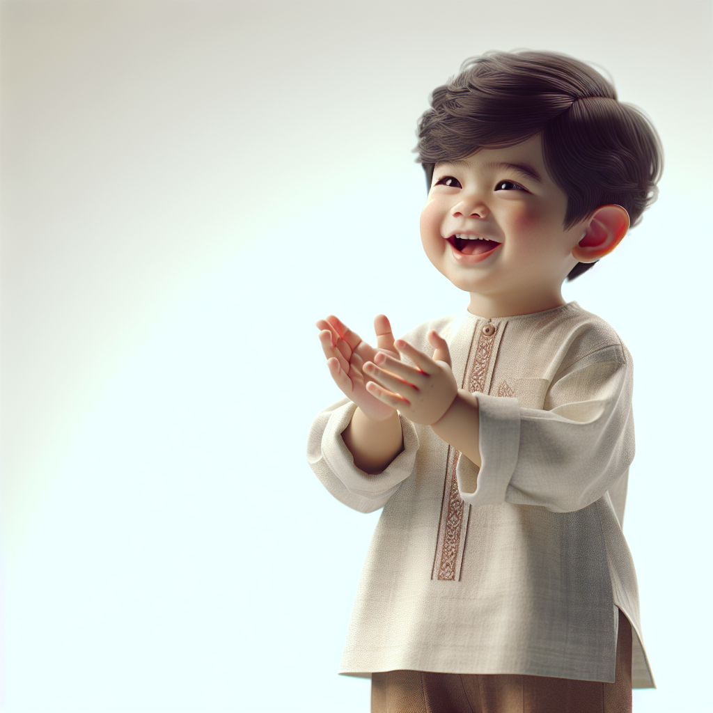 "prompt_used": "A toddler showing the emotion: 'clap'. Clear facial expression, plain white background.",