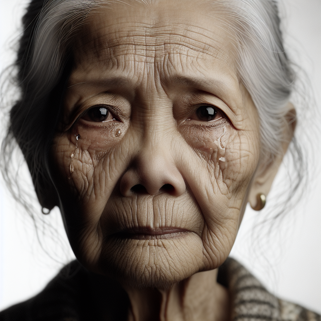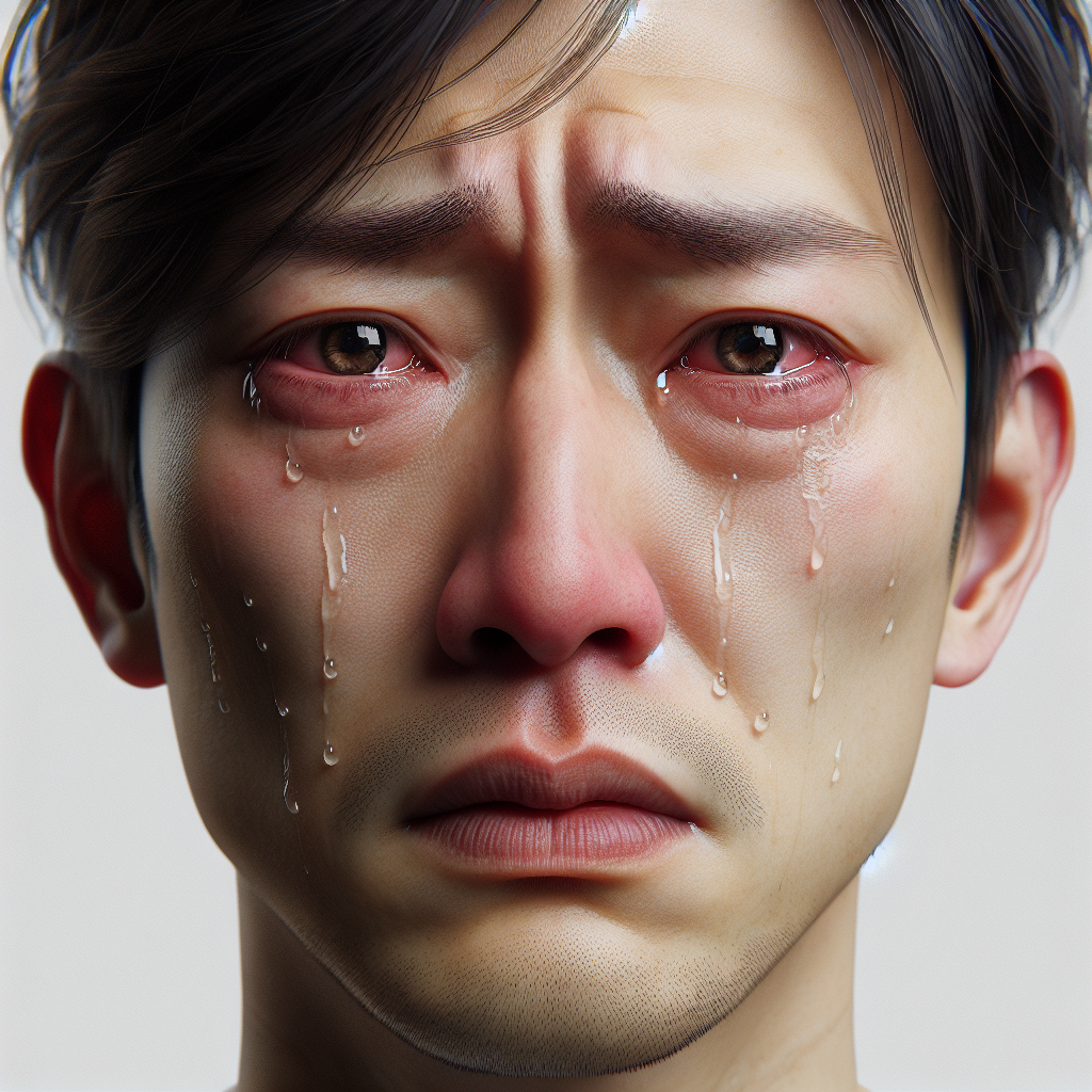 "prompt_used": "A adult showing the emotion: 'tear'. Clear facial expression, plain white background.",