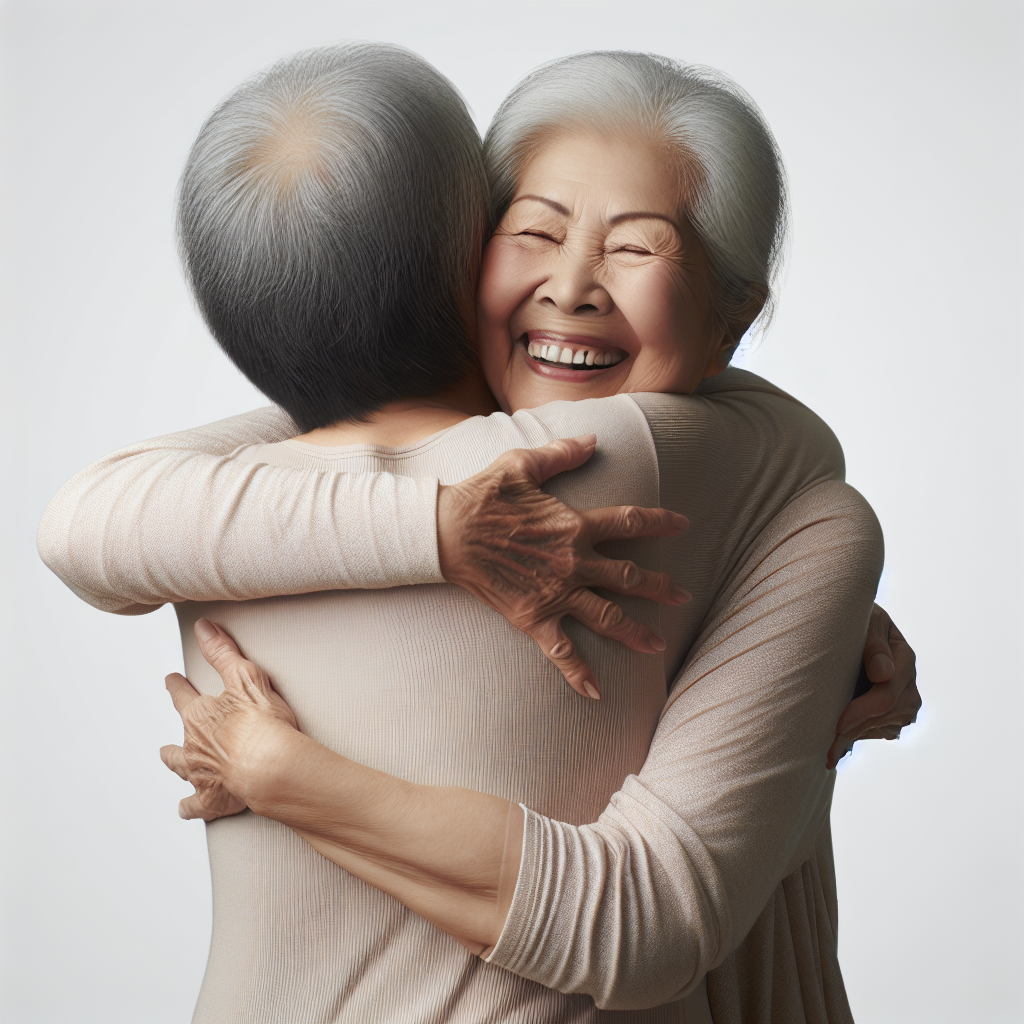 "prompt_used": "A elderly showing the emotion: 'cuddle'. Clear facial expression, plain white background.",