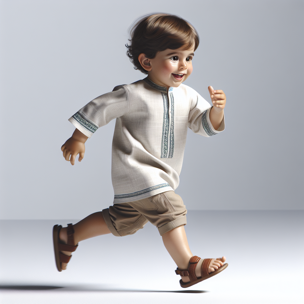 "enhanced_prompt": "Create an image of a young toddler in mid-giggle, centered on a plain white background. The child should exhibit a joyful and light-hearted facial expression, with eyes slightly squinted and mouth open in laughter. Ensure the toddler's whole body is visible and in a natural, upright position to emphasize the action of giggling. The focus should be on capturing the pure joy and naturalness of the emotion, with no additional props or distractions in the image. Ideal for toddler learning materials.",