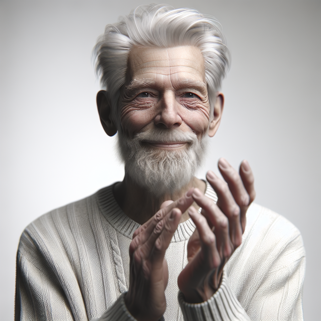 "prompt_used": "A elderly showing the emotion: 'clap'. Clear facial expression, plain white background.",