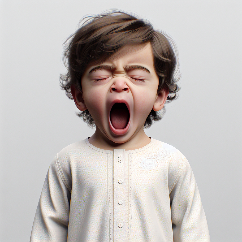 "prompt_used": "A toddler showing the emotion: 'yawn'. Clear facial expression, plain white background.",