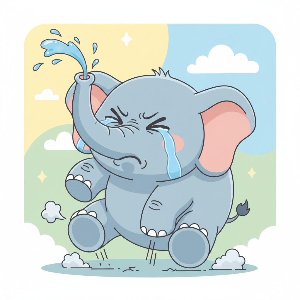 "hi": "सही! यह हाथी परेशान है और बड़ी भावनाएँ महसूस कर रहा है!",