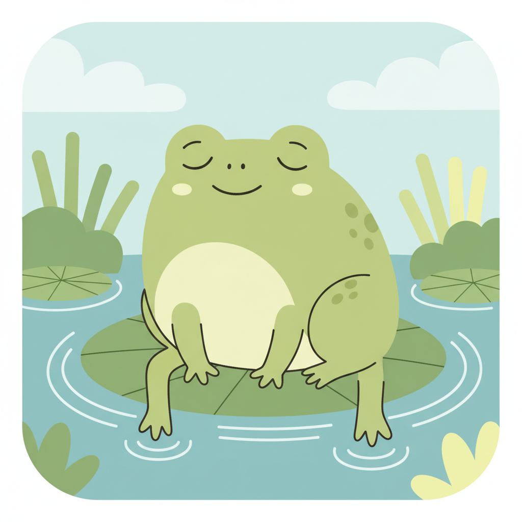 "hi": "शानदार! यह मेंढक शांत और सुकून में है!",