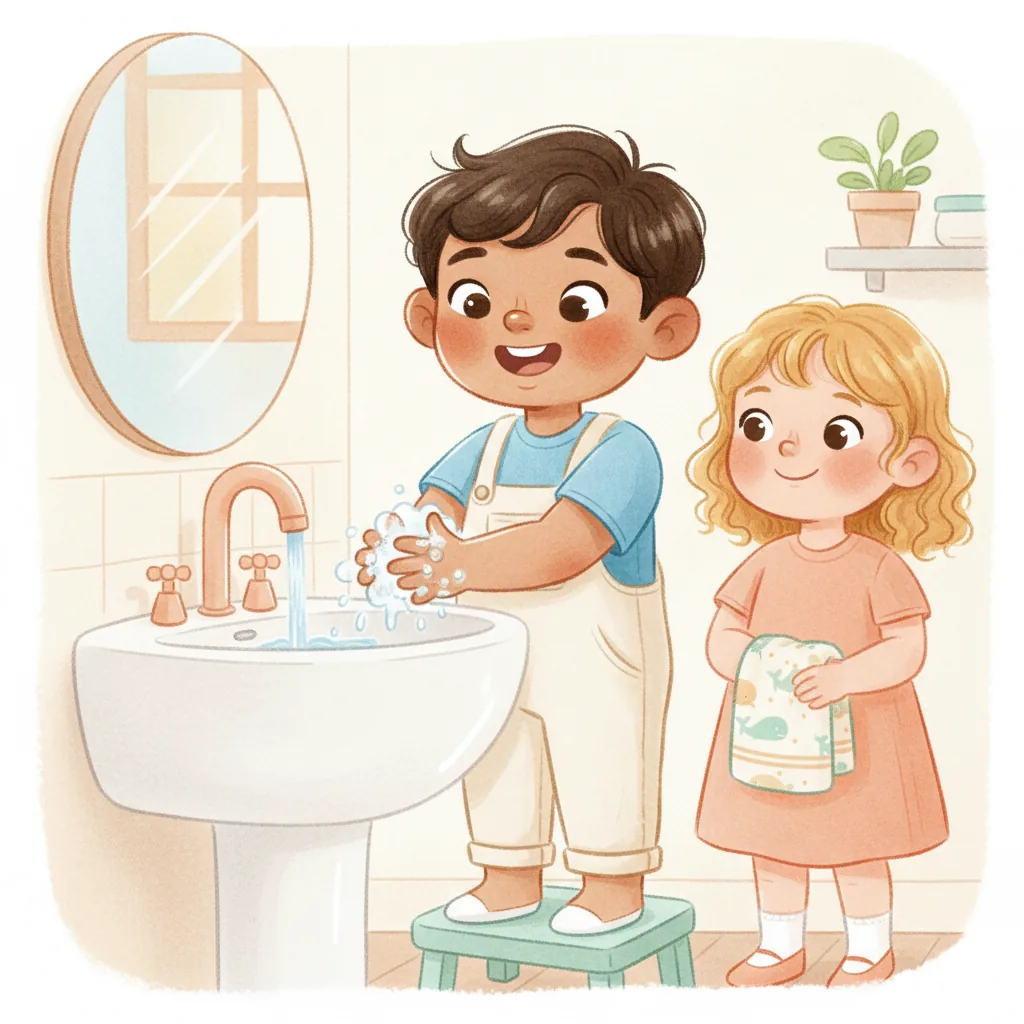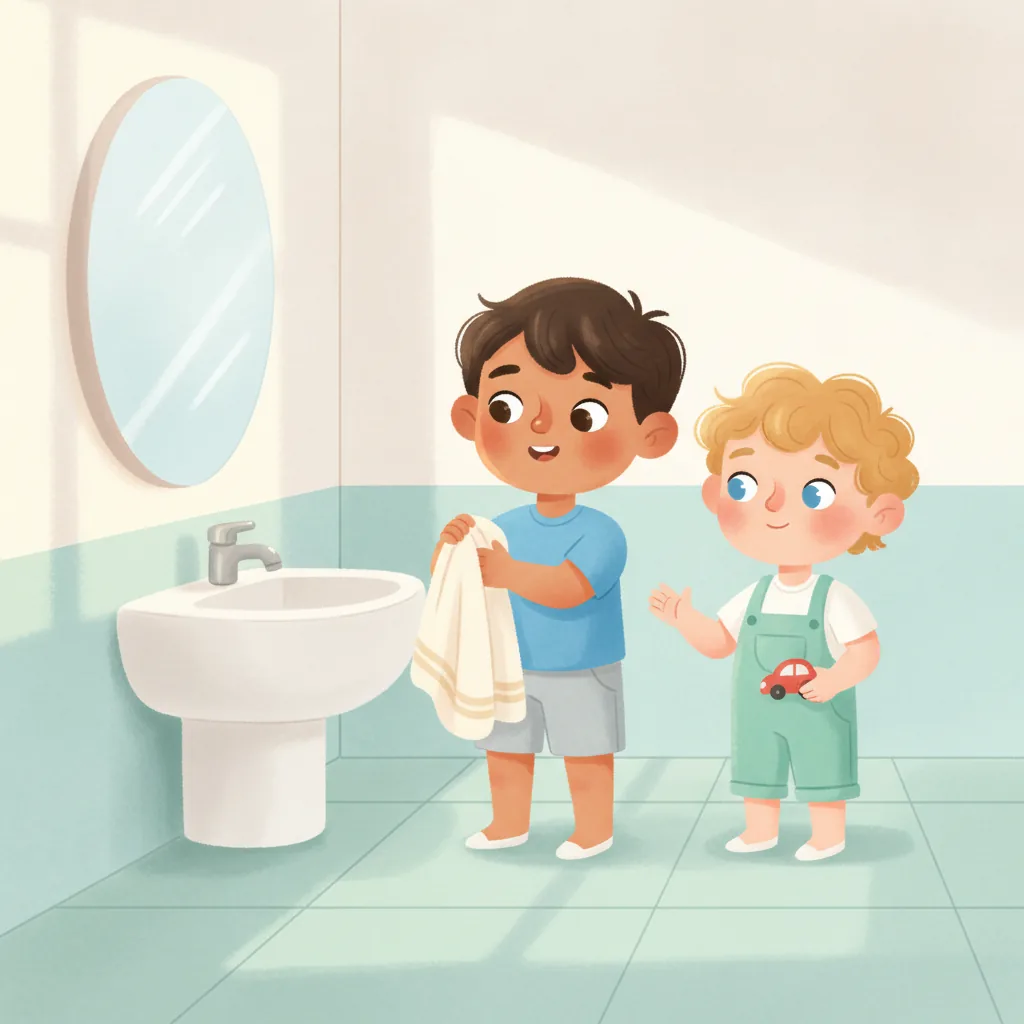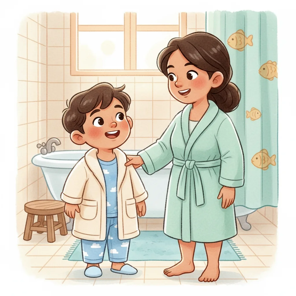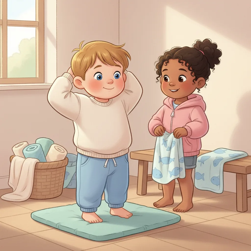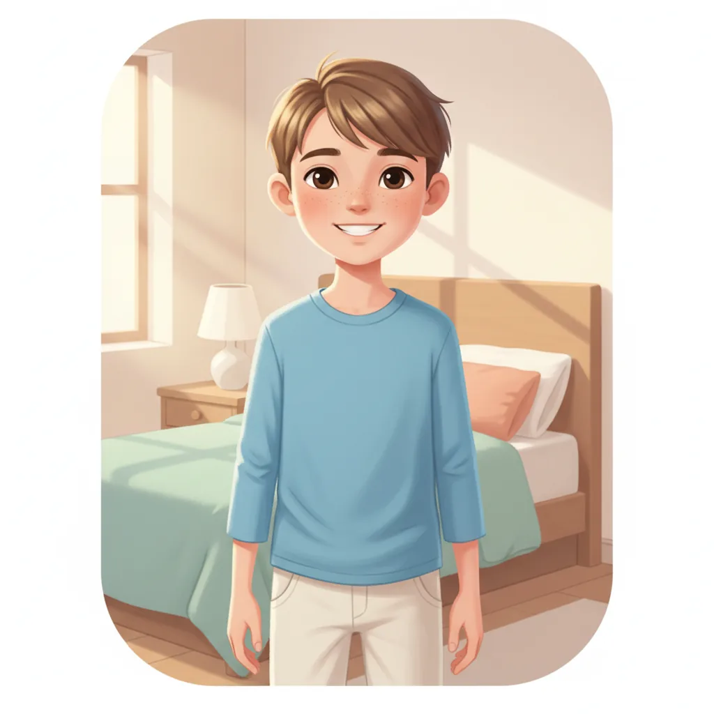 "content": ": Dima's Bedtime Tidy-Up Adventure**\n\n**Scenario 1** \nPretend the child is about to tidy their bed. \nPractice saying, \"I can do this myself!\" — feeling excited and brave. \nEncourage them to start pulling up the sheets and smoothing them out.\n\n**Scenario 2** \nAct out a situation where the child finds their favorite toy or pillow. \nPractice placing it neatly on the bed and saying, \"This makes my bed cozy!\" — feeling proud and happy. \nTalk about how nice it feels to have a tidy bed.\n\n**Scenario 3** \nPretend the child has finished tidying their bed. \nPractice saying, \"Look, my bed is all ready for bedtime!\" — feeling calm and accomplished. \nThey can share a big smile with a parent or friend to show how proud they feel.",