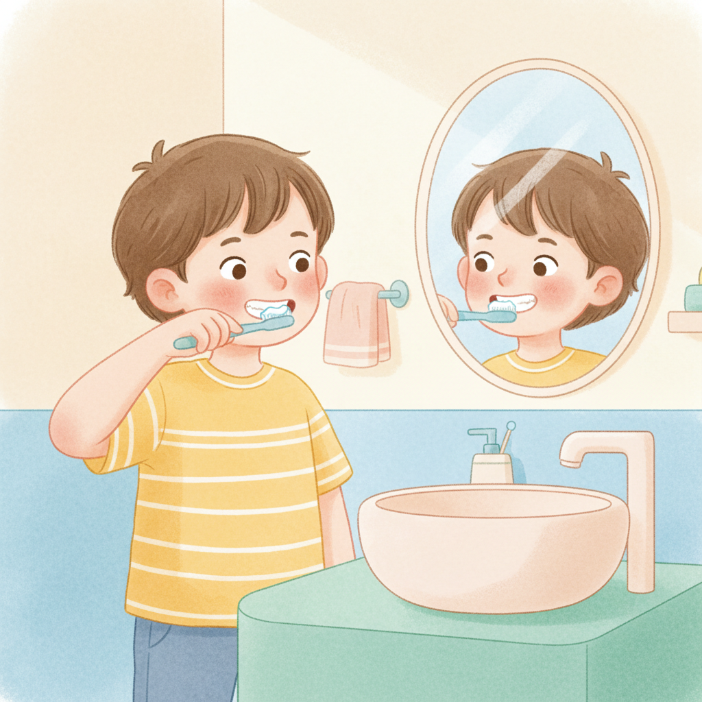 "topic_hi": "साफ-सफाई रखना: दांत साफ करना और हाथ धोना",