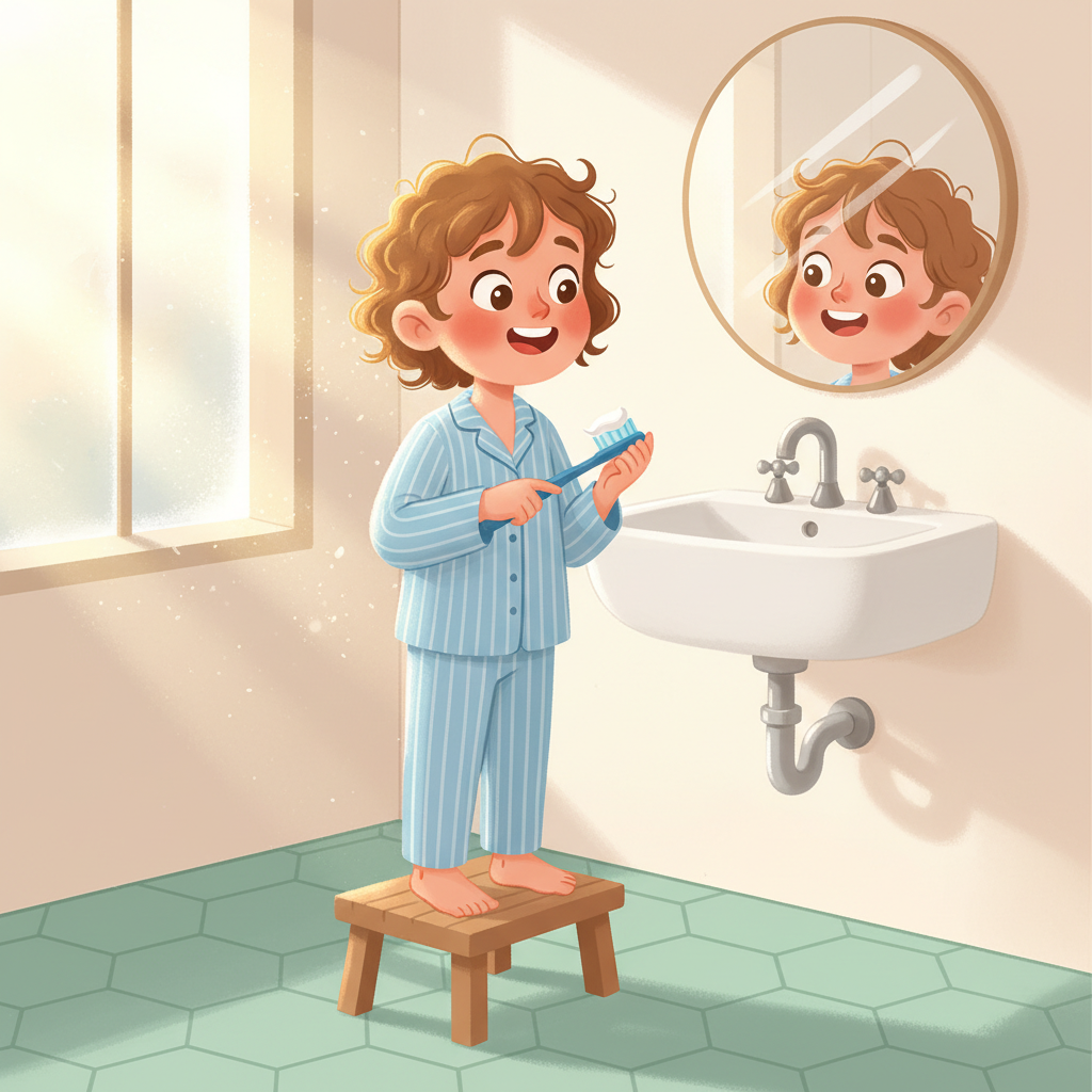 "sentence": "In the morning, I brush my teeth to start fresh.",