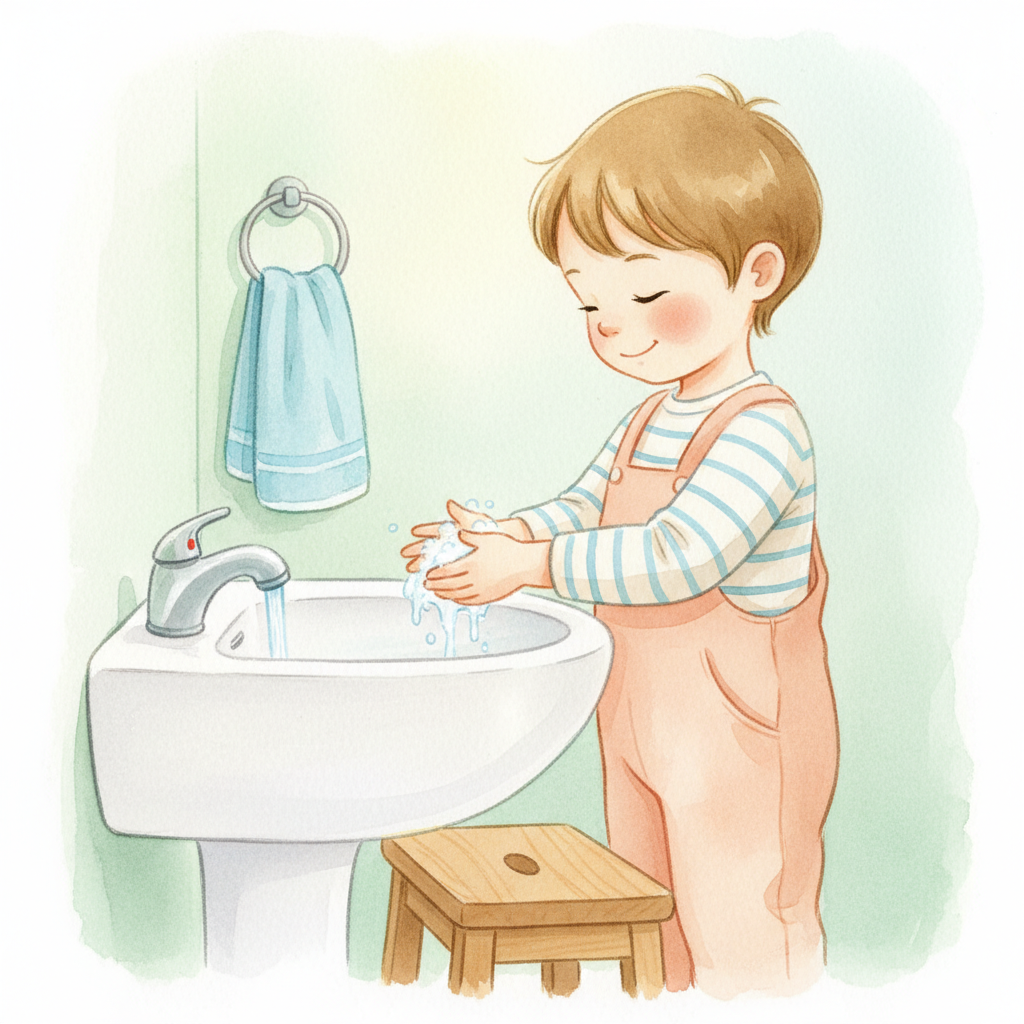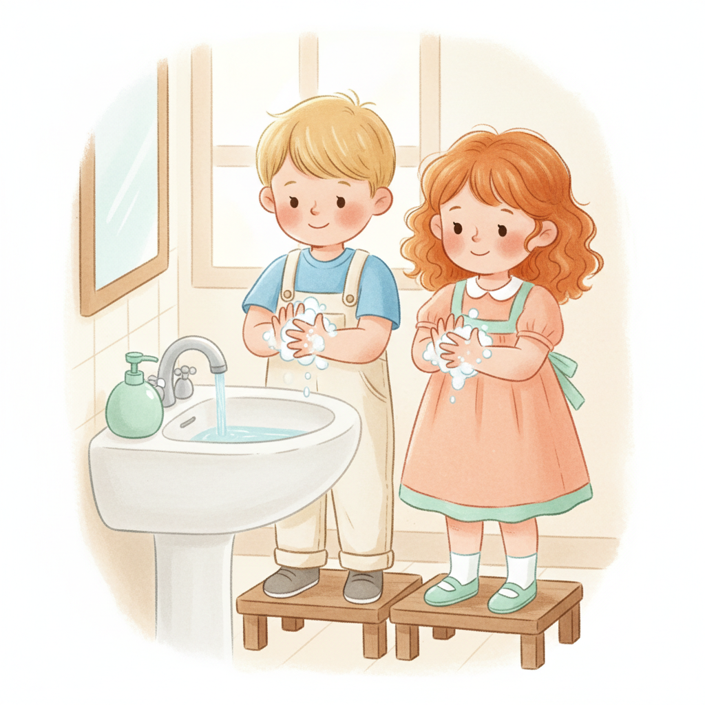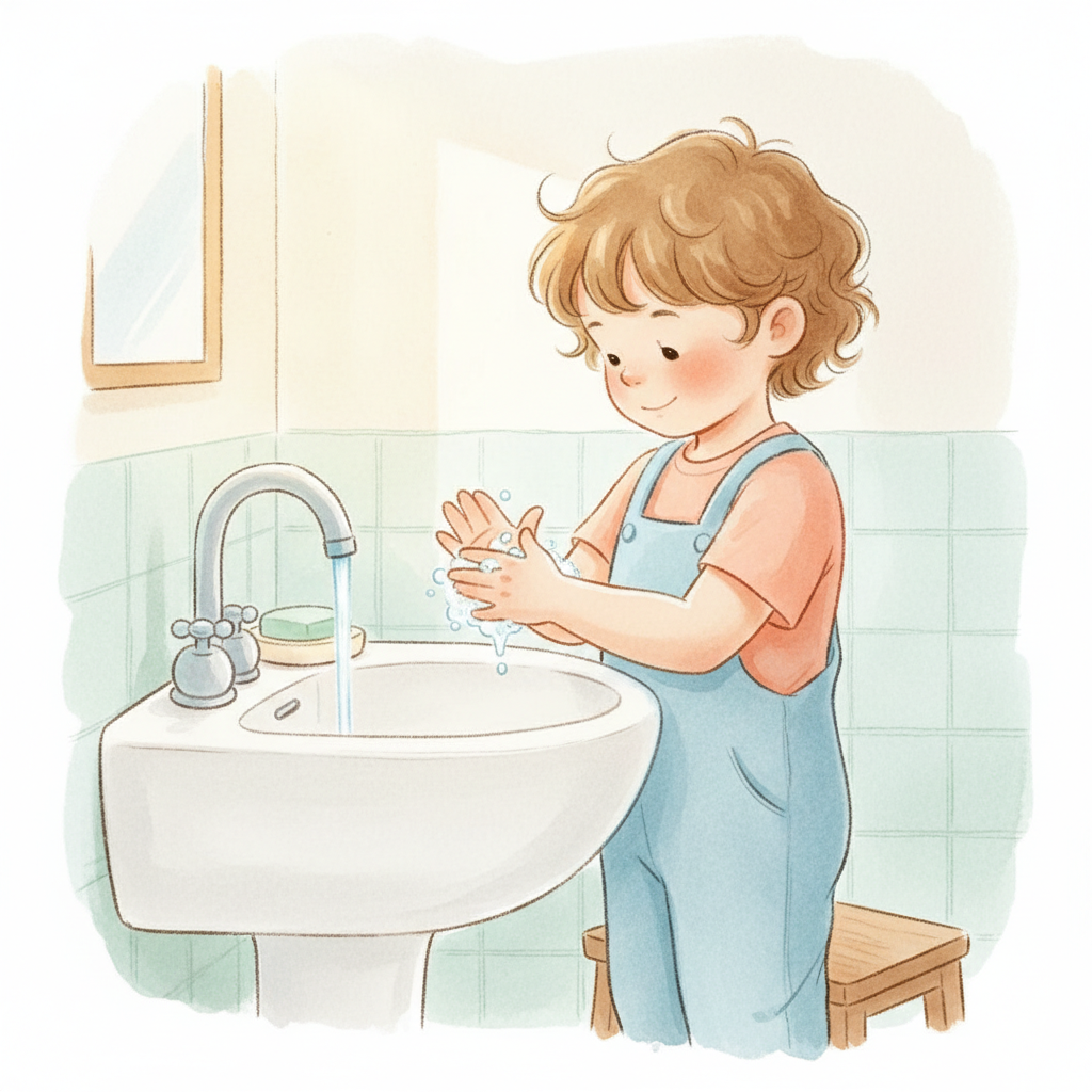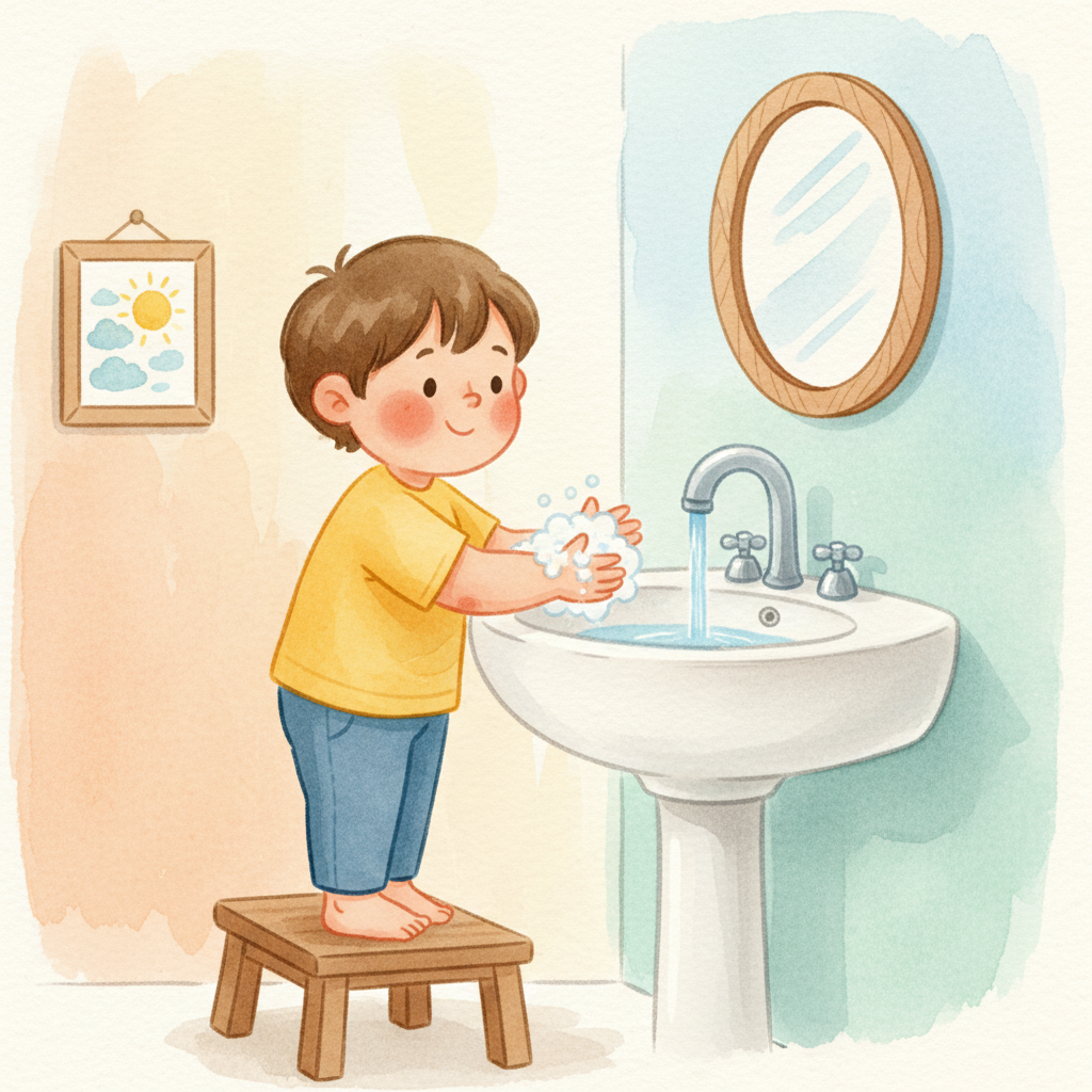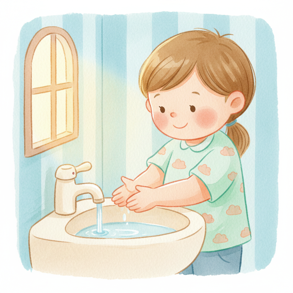 "topic": "Keeping Clean: Brushing Teeth and Washing Hands",