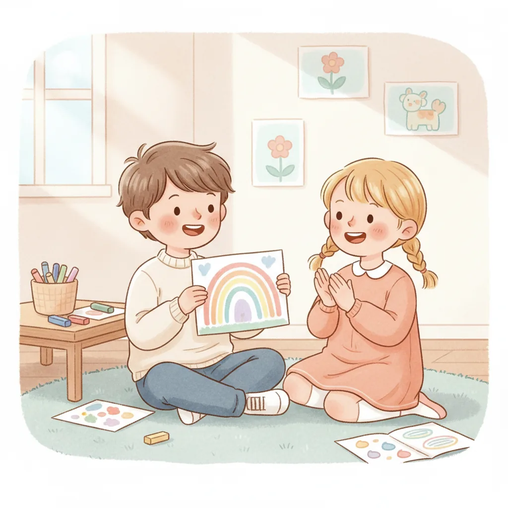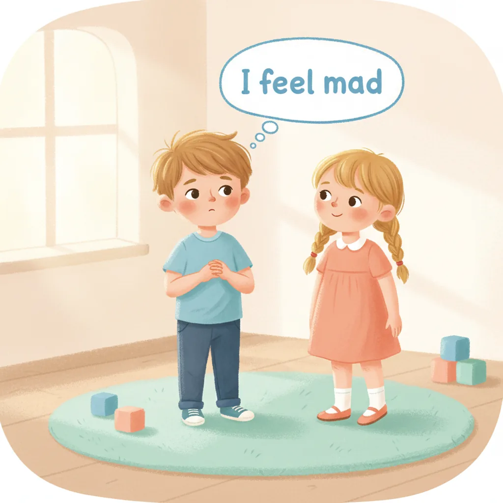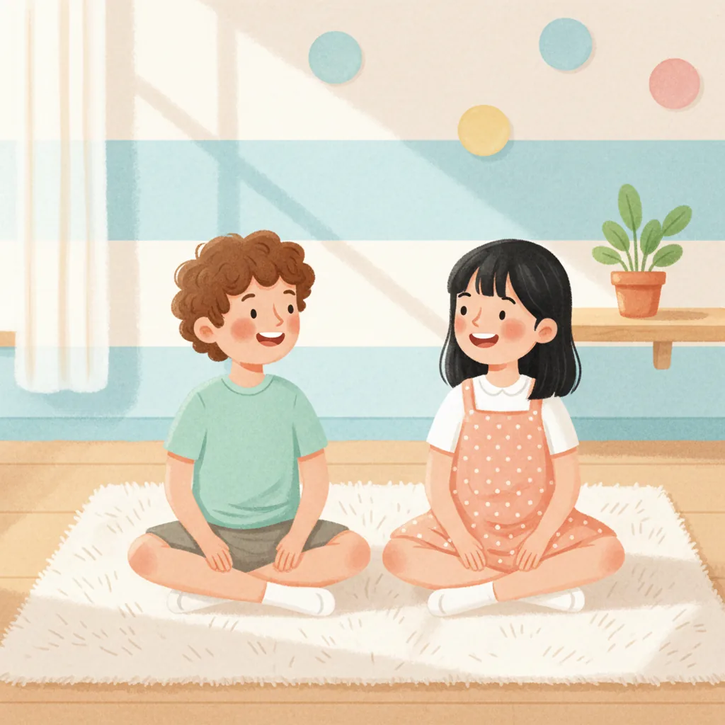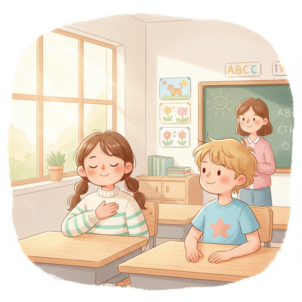 "content": "✏️ Vocabulary:\n\n1. **Shy**\n - Feeling a little nervous or quiet around new people\n\n2. **Brave**\n - Doing something even if you feel a bit scared\n\n3. **Smile**\n - A happy face you make with your mouth\n\n4. **Friend**\n - Someone you like and have fun with\n\n5. **Listen**\n - Paying attention to what someone is saying\n\n6. **Excited**\n - Feeling very happy and eager\n\n7. **Happy**\n - Feeling good inside\n\n8. **Proud**\n - Feeling good about something you did",