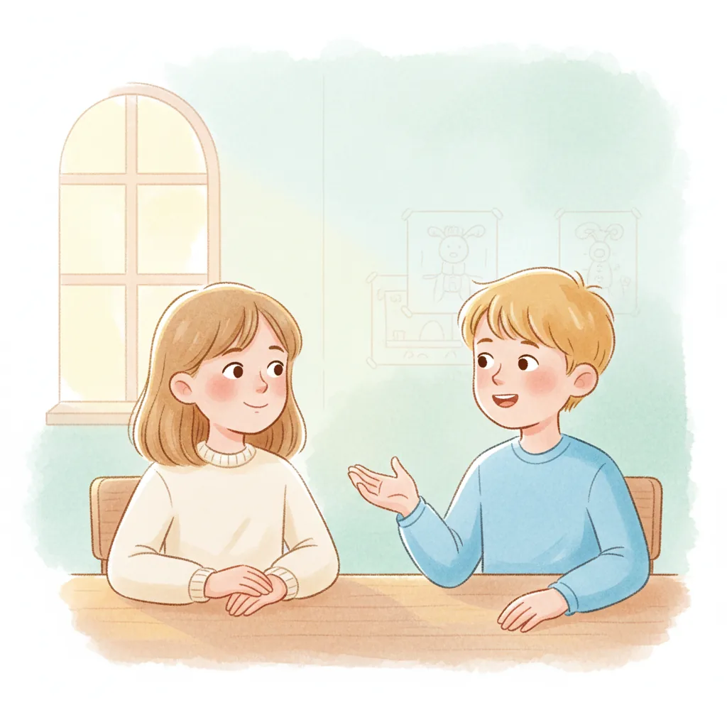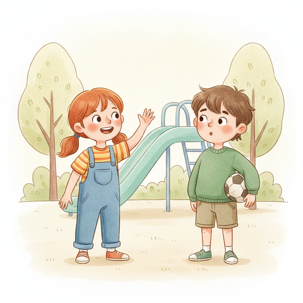 "es": "✏️ Vocabulary:\n\n\n1. **Tímido** \n- Sentirse un poco nervioso o callado alrededor de personas nuevas\n\n2. **Valiente** \n- Hacer algo aunque te sientas un poco asustado\n\n3. **Sonrisa**\n- Una cara feliz que haces con tu boca\n\n4. **Amigo/Amiga** \n- Alguien que te gusta y con quien te diviertes\n\n5. **Escuchar**\n- Prestar atención a lo que alguien está diciendo\n\n6. **Emocionado** \n- Sintiendo mucha felicidad y entusiasmo\n\n7. **Feliz** \n- Sentirse bien por dentro\n\n8. **Orgulloso/a**\n- Sentirse bien por algo que hiciste",