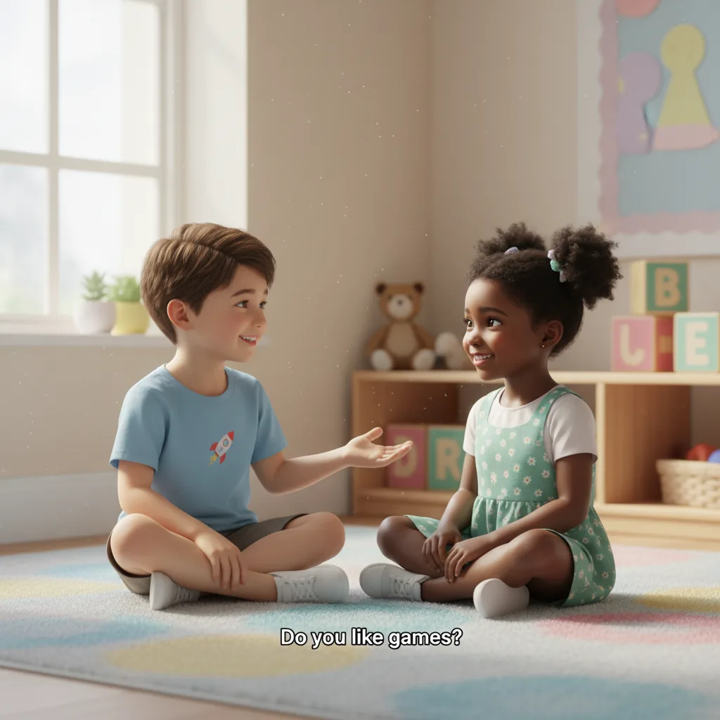 "content_es": "Comprehension Questions (Choose the Best Answer)\n\n\n1. ¿Qué debes hacer si te sientes tímido al conocer a alguien nuevo?\n A: Esconderte y no hablarles ❌\n B: Respirar profundo y decir hola ✅\n\n2. ¿Qué dijo Alex al conocer al nuevo amigo?\n A: \"¡Vete!\" ❌\n B: \"Hola, me llamo Alex.\" ✅\n\n3. ¿Cómo se sintió Alex después de conocer a Sam? \n A: Triste ❌ \n B: Feliz y orgulloso ✅\n\n4. ¿Cuál es una buena pregunta para hacer cuando conoces a alguien nuevo?\n A: \"¿Te gustan los juegos?\" ✅\n B: \"¿Por qué estás aquí?\" ❌\n\n5. ¿Qué debes decir después de jugar con un nuevo amigo?\n A: \"Me voy ahora.\" ❌\n B: \"Gracias.\" ✅\n\n6. ¿Por qué es importante decir tu nombre cuando conoces a alguien nuevo?\n A: Para que sepan quién eres ✅\n B: Para que puedas irte rápidamente ❌\n\n7. ¿Qué hicieron Alex y Sam juntos? \n A: Se ignoraron ❌ \n B: Jugaron y rieron juntos ✅\n\n8. ¿Qué puedes decir para hacer nuevos amigos?\n A: \"Hola, mi nombre es...\" ✅\n B: \"No quiero hablar.\" ❌",