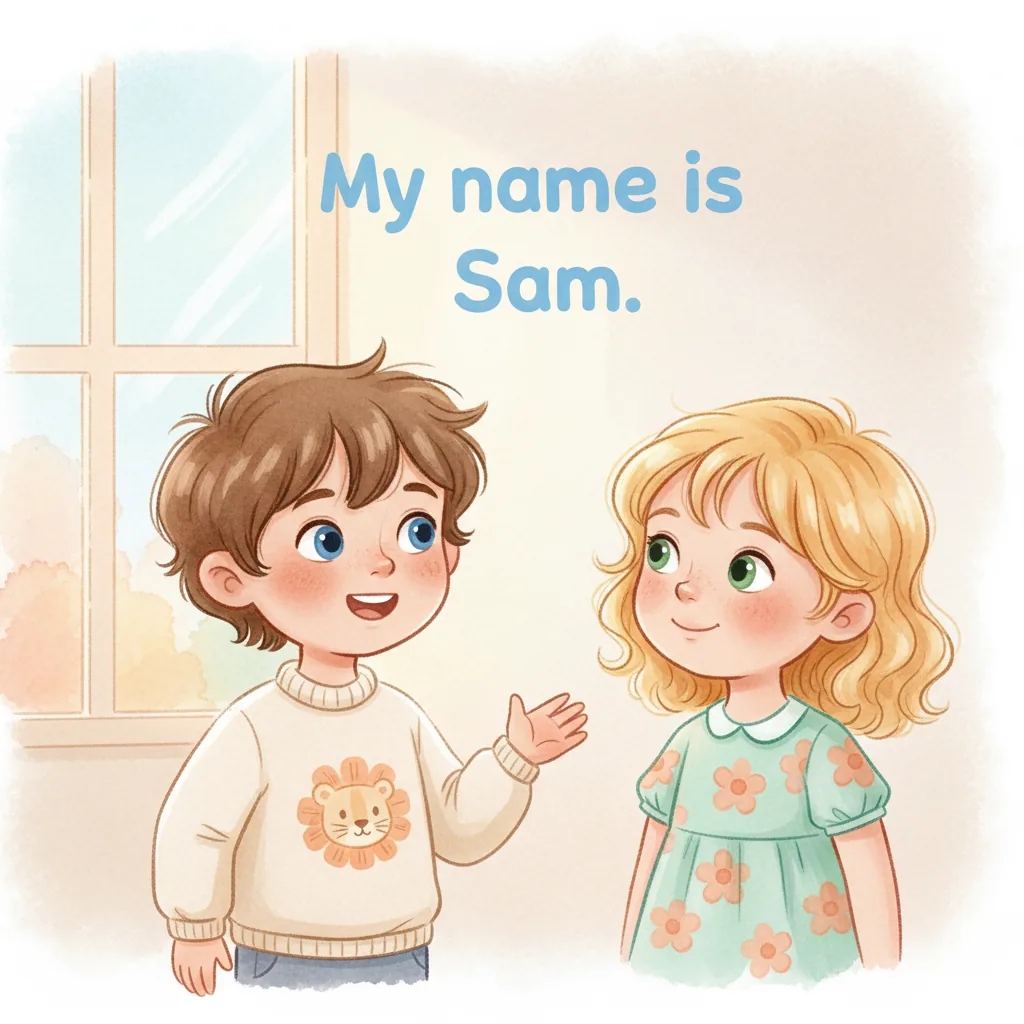 "content": "🧠 Topic: Hello, My Name Is \nComprehension Questions (Choose the Best Answer)\n\n1. What should you do if you feel shy about meeting someone new? \n A: Hide and not talk to them ❌ \n B: Take a big breath and say hello ✅\n\n2. What did Alex say when meeting the new friend? \n A: \"Go away!\" ❌ \n B: \"Hello, my name is Alex.\" ✅\n\n3. How did Alex feel after meeting Sam? \n A: Sad ❌ \n B: Happy and proud ✅\n\n4. What is a good question to ask when you meet someone new? \n A: \"Do you like games?\" ✅ \n B: \"Why are you here?\" ❌\n\n5. What should you say after playing with a new friend? \n A: \"I'm leaving now.\" ❌ \n B: \"Thank you.\" ✅\n\n6. Why is it important to say your name when meeting someone new? \n A: So they know who you are ✅ \n B: So you can leave quickly ❌\n\n7. What did Alex and Sam do together? \n A: They ignored each other ❌ \n B: They played and laughed together ✅\n\n8. What can you say to make new friends? \n A: \"Hello, my name is...\" ✅ \n B: \"I don't want to talk.\" ❌",