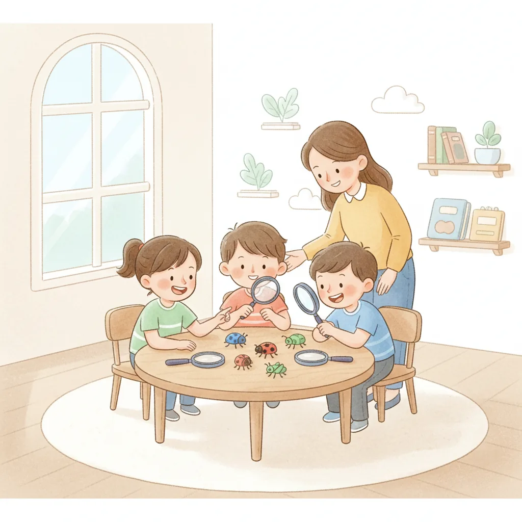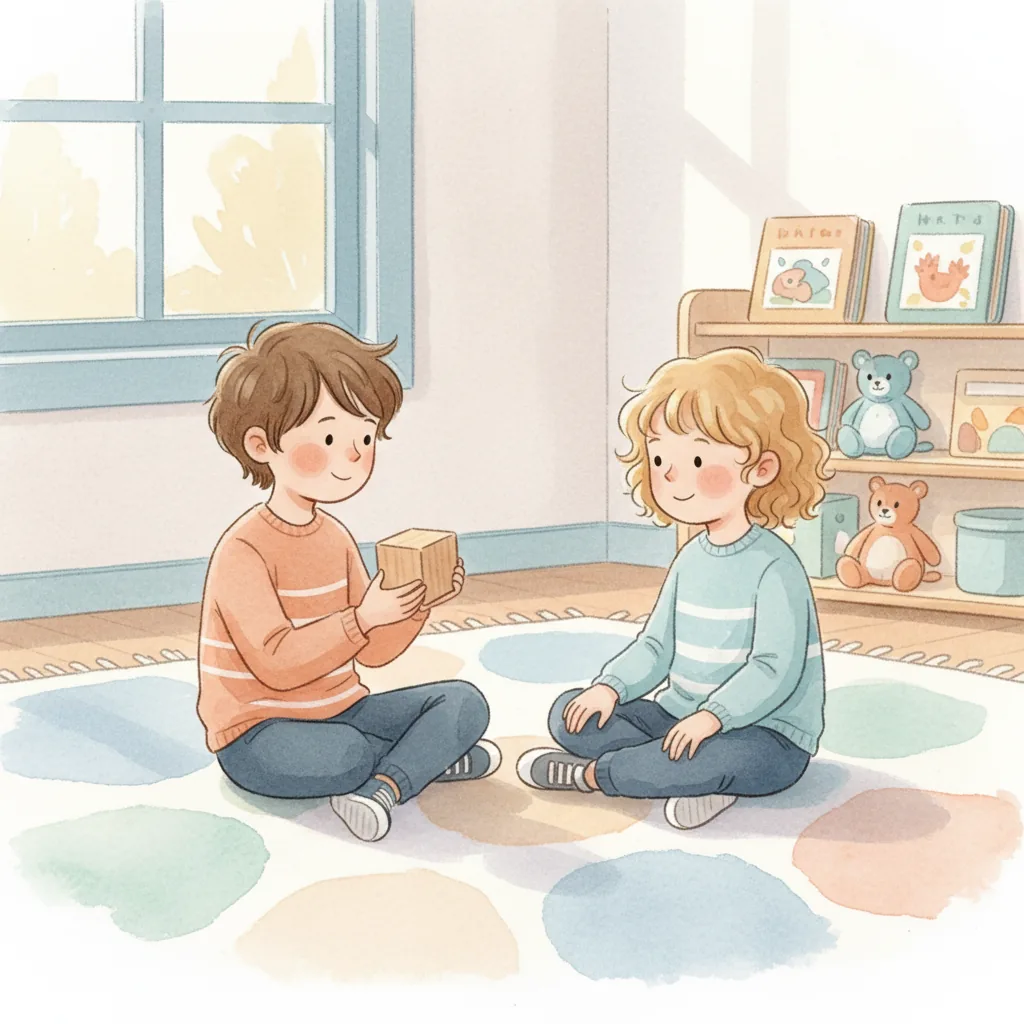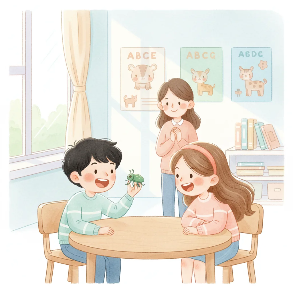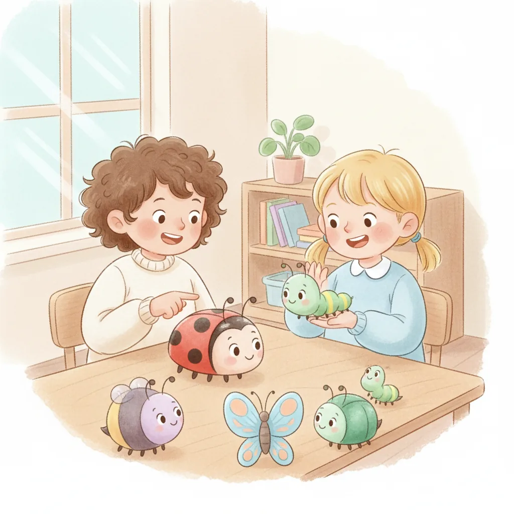 "content": "Creative Activity\n\n**Bug Sharing Circle** \nCreate a circle time activity where each child brings a toy or picture of their favorite bug. \nEncourage them to take turns sharing one fun fact about their bug with the group. \nRemind them to raise their hand and wait patiently for their turn to speak.\n\n**Sharing and Waiting Game** \nSet up a simple game with toys or blocks. \nEncourage children to ask, \"Can I join?\" before participating. \nPractice taking turns and sharing toys, reinforcing the idea that waiting and asking can be fun!",
