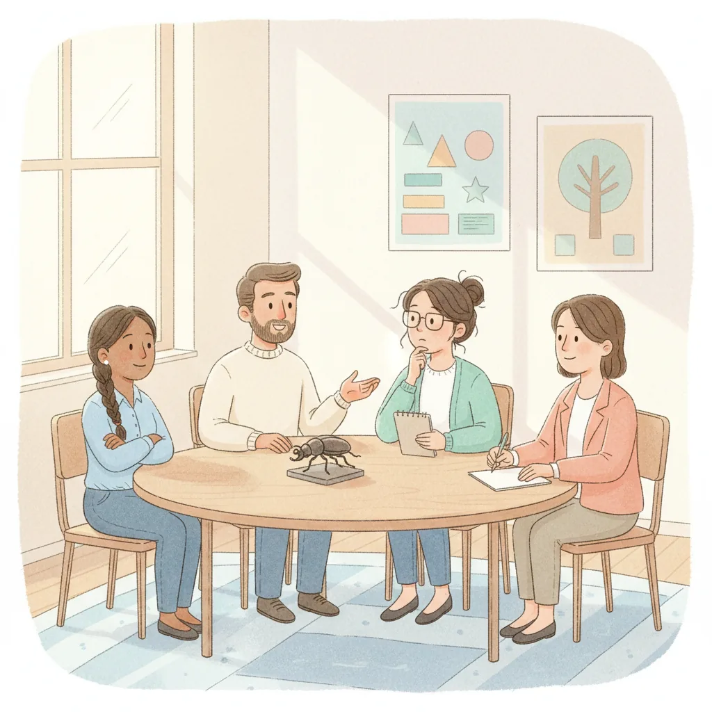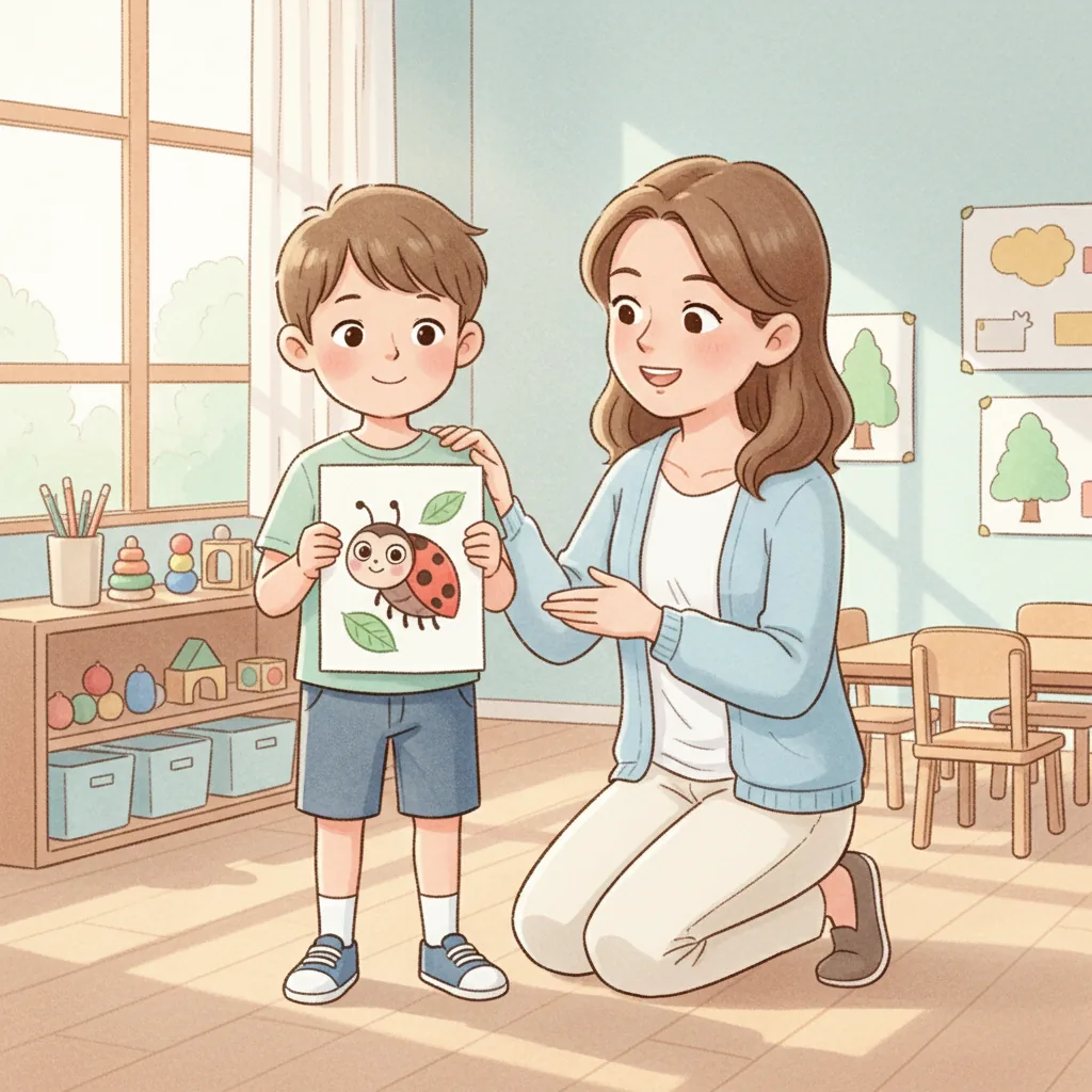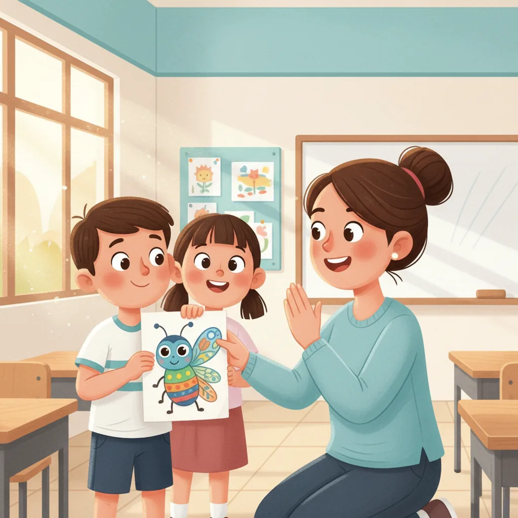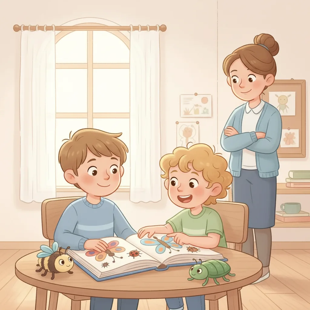 "es": "**Creative Activity**\n\n\n**Actividad Creativa**\n\n**Círculo de Compartir de Bichos** \nCrea una actividad en círculo donde cada niño traiga un juguete o dibujo de su bicho favorito. \nAnima a los niños a turnarse para compartir un dato divertido sobre su bicho con el grupo. \nRecuérdales que levanten la mano y esperen pacientemente su turno para hablar.\n\n**Juego de Compartir y Esperar** \nOrganiza un juego sencillo con juguetes o bloques. \nAnima a los niños a preguntar: \"¿Puedo jugar?\" antes de participar. \nPractica turnarse y compartir juguetes, ¡reforzando la idea de que esperar y pedir permiso puede ser divertido!",