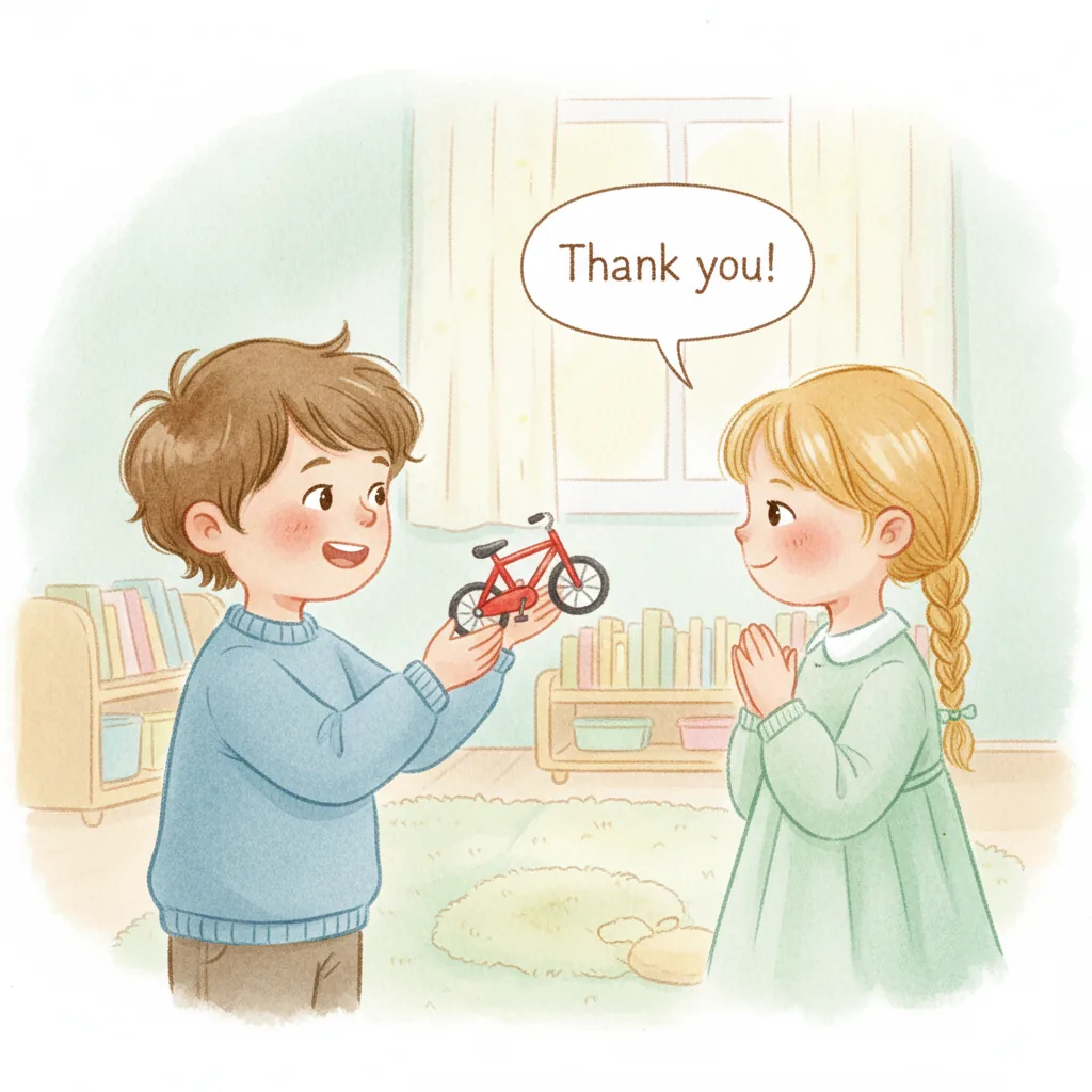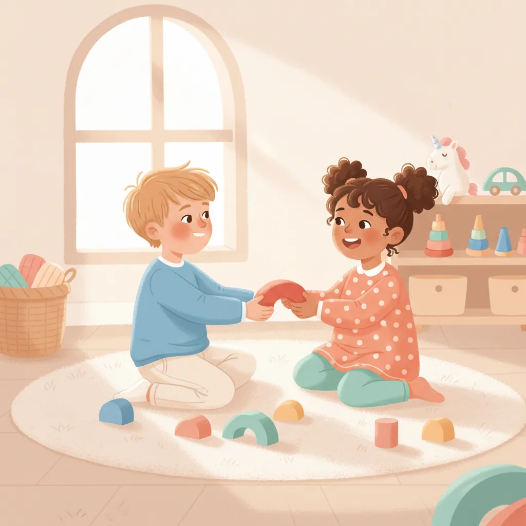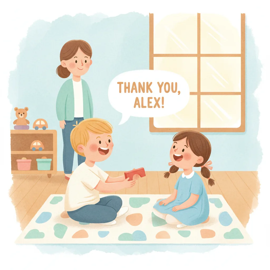 "sentence": "I learned that sharing and waiting helps me have fun with friends.",