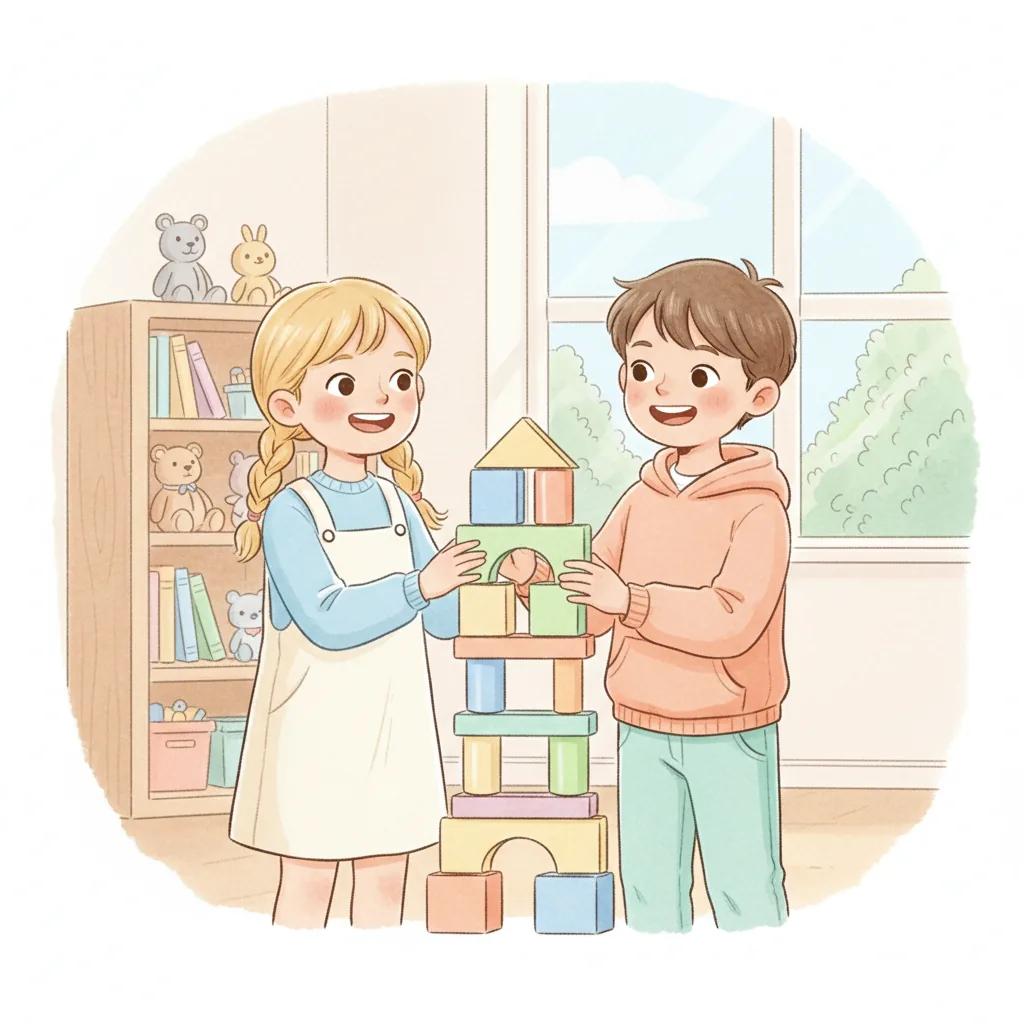 "es": "Vi a mis amigos jugando con bloques.",