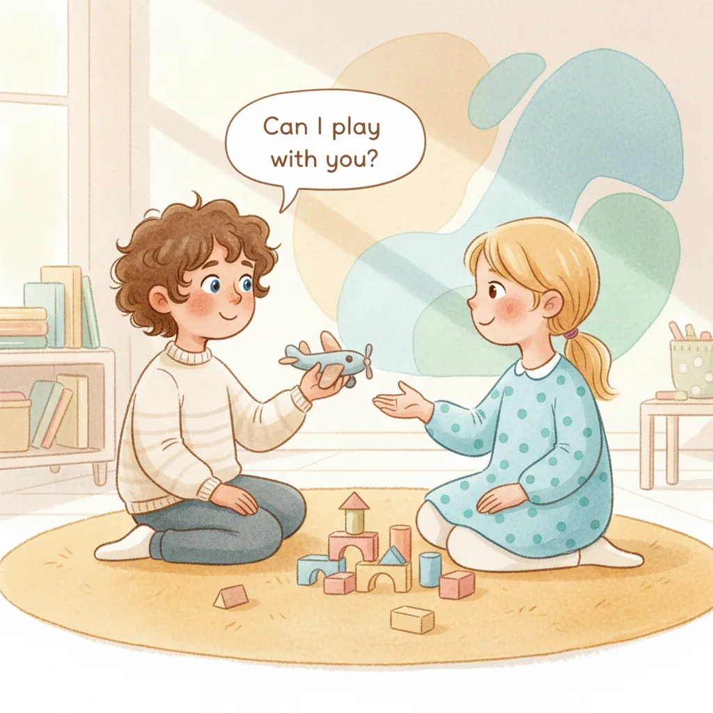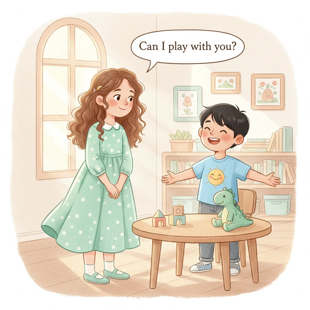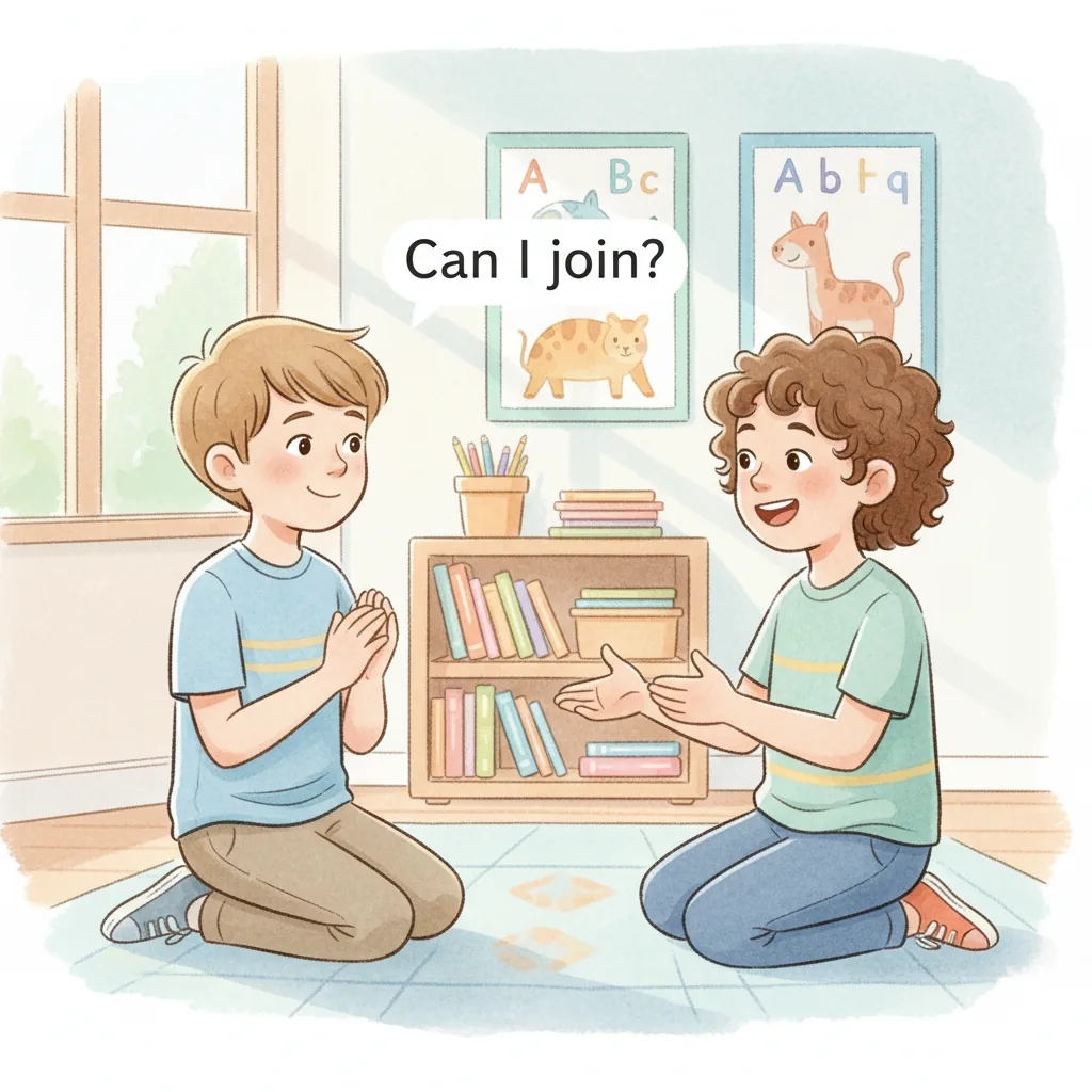 "content": "**Scenario 1** \nPretend the child is excited about sharing their favorite toy. \nPractice asking, \"Can I show you my toy?\" and feeling proud when the friend is interested.\n\n**Scenario 2** \nAct out a situation where the child wants to join a group of friends playing. \nPractice saying, \"Can I join?\" and feeling happy when the friends say, \"Yes!\" and include them.\n\n**Scenario 3** \nPretend the child is feeling wiggly and wants to talk during a story. \nPractice waiting and using a fidget toy to calm down, then sharing a fun fact when it's their turn.",