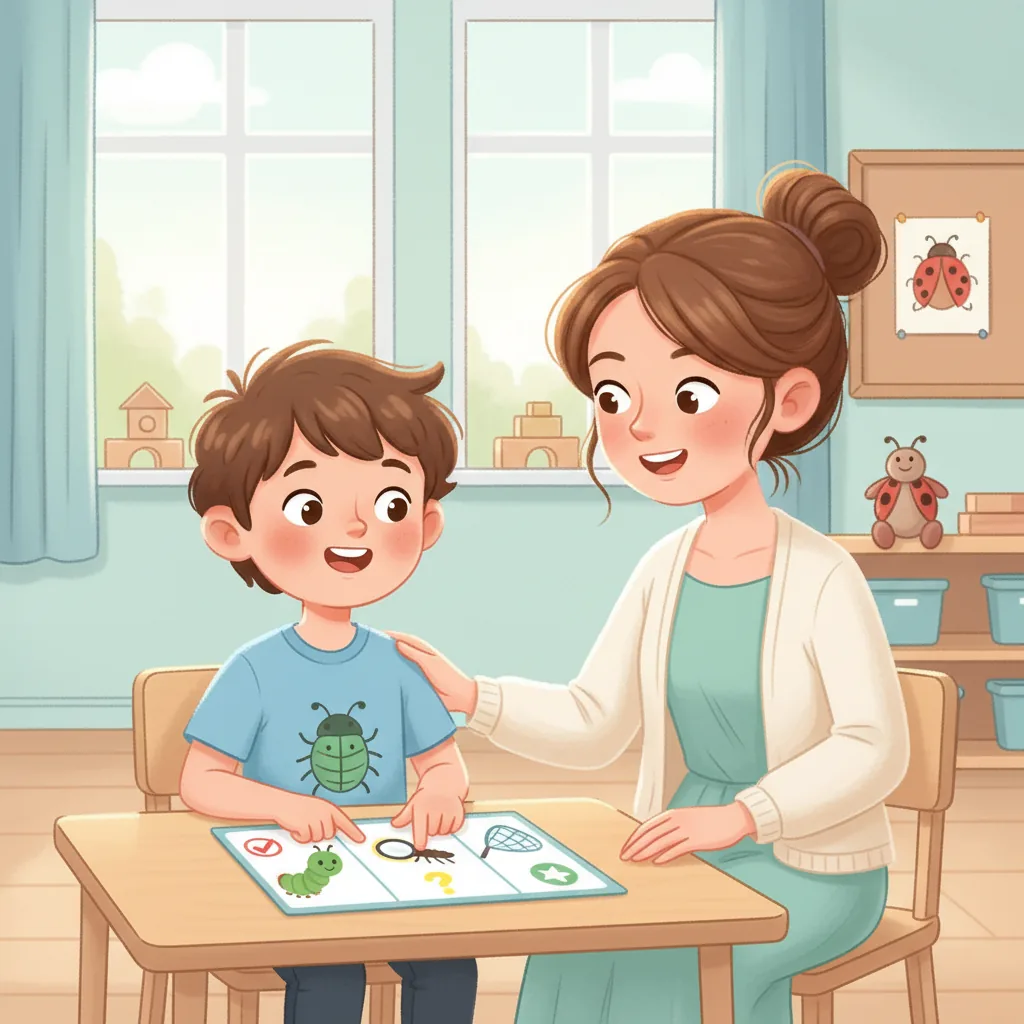 "content_es": "**Creative Activity**\n\n\n**Actividad Creativa**\n\n**Círculo de Compartir de Bichos** \nCrea una actividad en círculo donde cada niño traiga un juguete o dibujo de su bicho favorito. \nAnima a los niños a turnarse para compartir un dato divertido sobre su bicho con el grupo. \nRecuérdales que levanten la mano y esperen pacientemente su turno para hablar.\n\n**Juego de Compartir y Esperar** \nOrganiza un juego sencillo con juguetes o bloques. \nAnima a los niños a preguntar: \"¿Puedo jugar?\" antes de participar. \nPractica turnarse y compartir juguetes, ¡reforzando la idea de que esperar y pedir permiso puede ser divertido!",