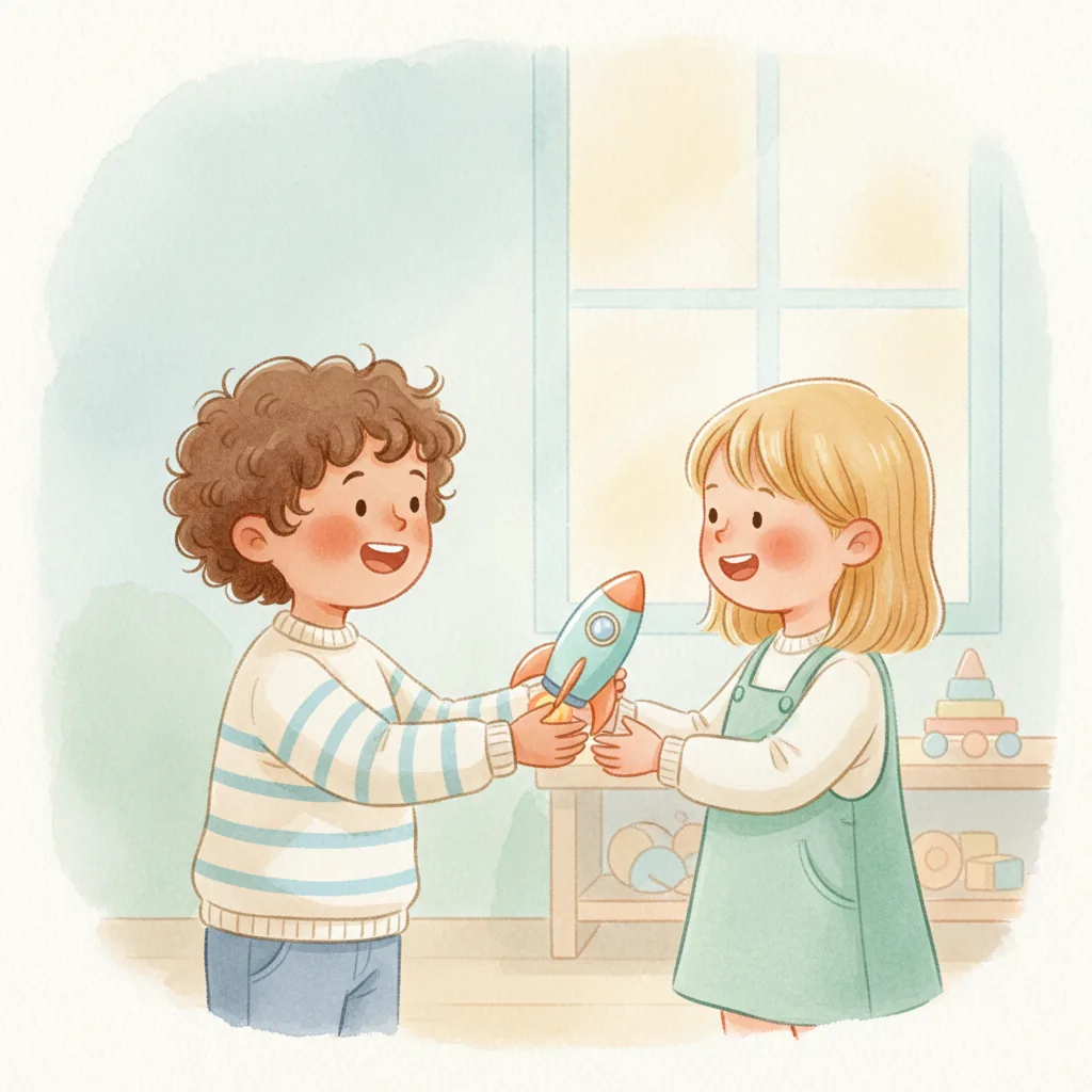 "es": "Vi a mis amigos jugando con juguetes espaciales.",
