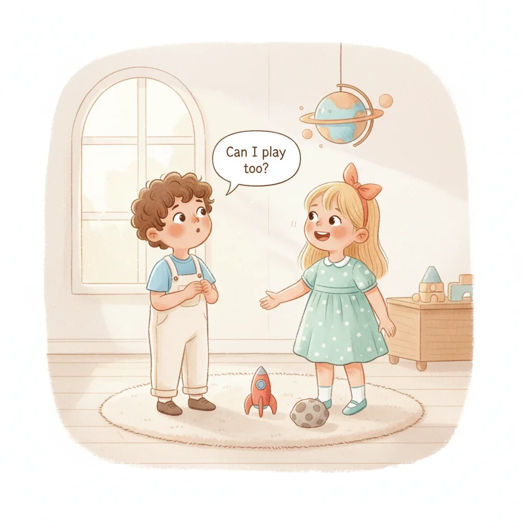 "ta": "நான் கேட்டேன், \"நானும் விளையாடலாமா?\"",