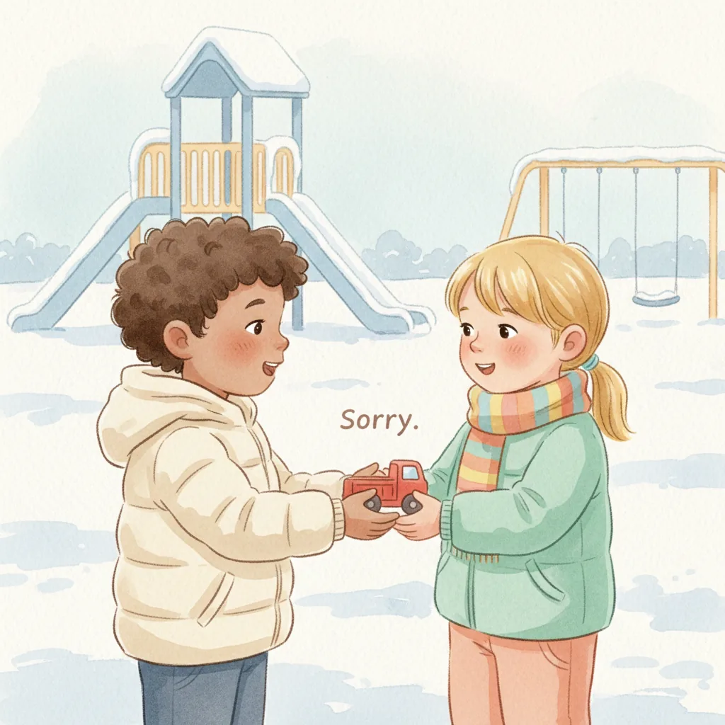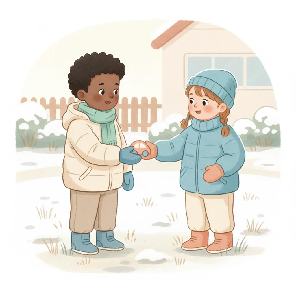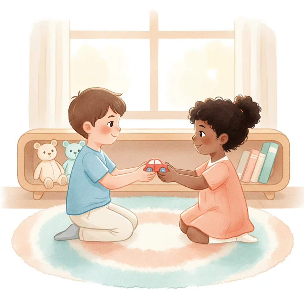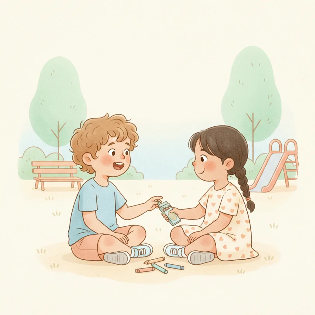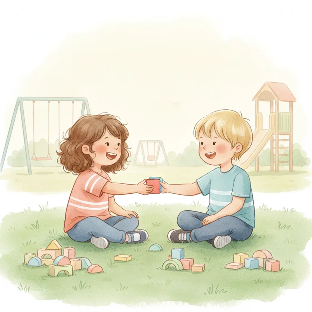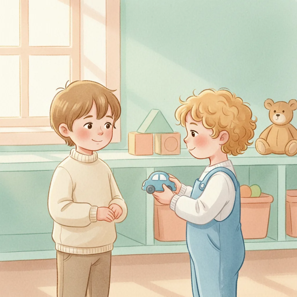 "content": "**Scenario 1** \nPretend the child sees a friend with a toy they want to play with. \nPractice approaching the friend and saying, \"Can I play with you?\" while feeling hopeful. \nThe friend can respond, \"Sure, let's take turns!\" and they both feel happy.\n\n**Scenario 2** \nAct out a situation where the child is waiting to use the swing. \nPractice watching the friend on the swing and saying, \"I can wait for my turn,\" feeling patient and calm. \nWhen the friend finishes, they say, \"Your turn!\" and the child feels excited and proud.\n\n**Scenario 3** \nPretend the child and a friend are playing catch. \nPractice saying, \"Your turn,\" after throwing the ball, and feeling joy when the friend catches it and says, \"Thank you!\" \nThey both smile and giggle, enjoying the game together.",