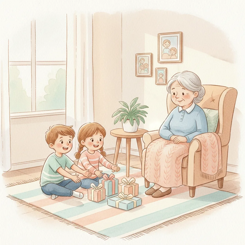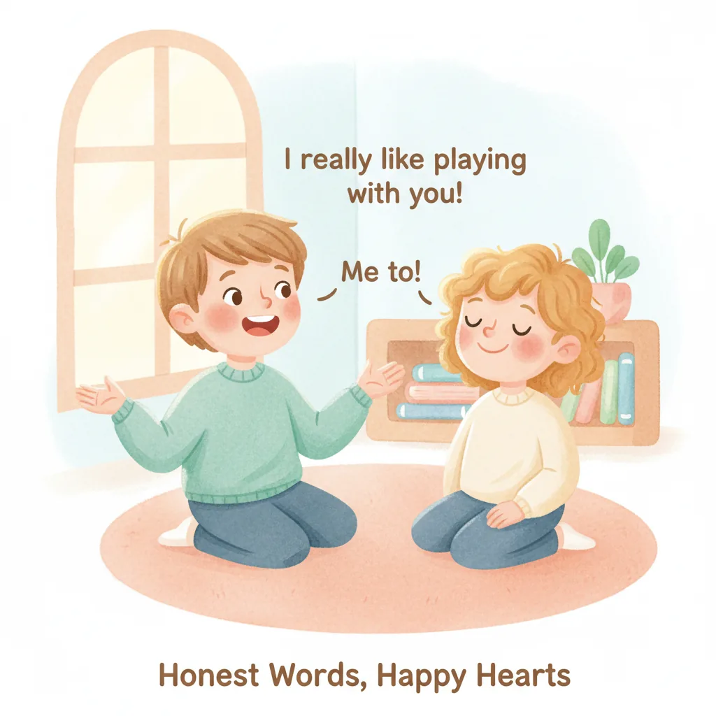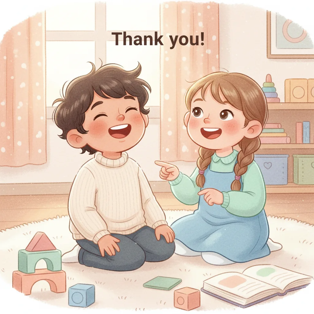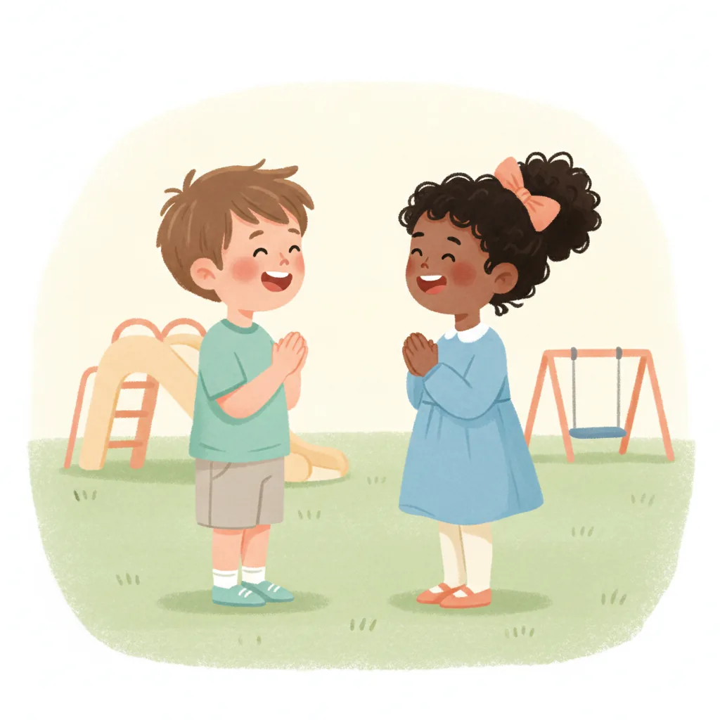 "content": "✏️ Vocabulary:\n\n1. **Listen**\n - Paying attention to what someone is saying\n\n2. **Excited**\n - Feeling very happy and eager\n\n3. **Turn**\n - Waiting for your time to do something\n\n4. **Calm**\n - Feeling relaxed and not upset\n\n5. **Proud**\n - Feeling happy about something you did well\n\n6. **Share**\n - Letting others use something with you\n\n7. **Fun**\n - Enjoying what you are doing\n\n8. **Together**\n - Doing something with someone else",