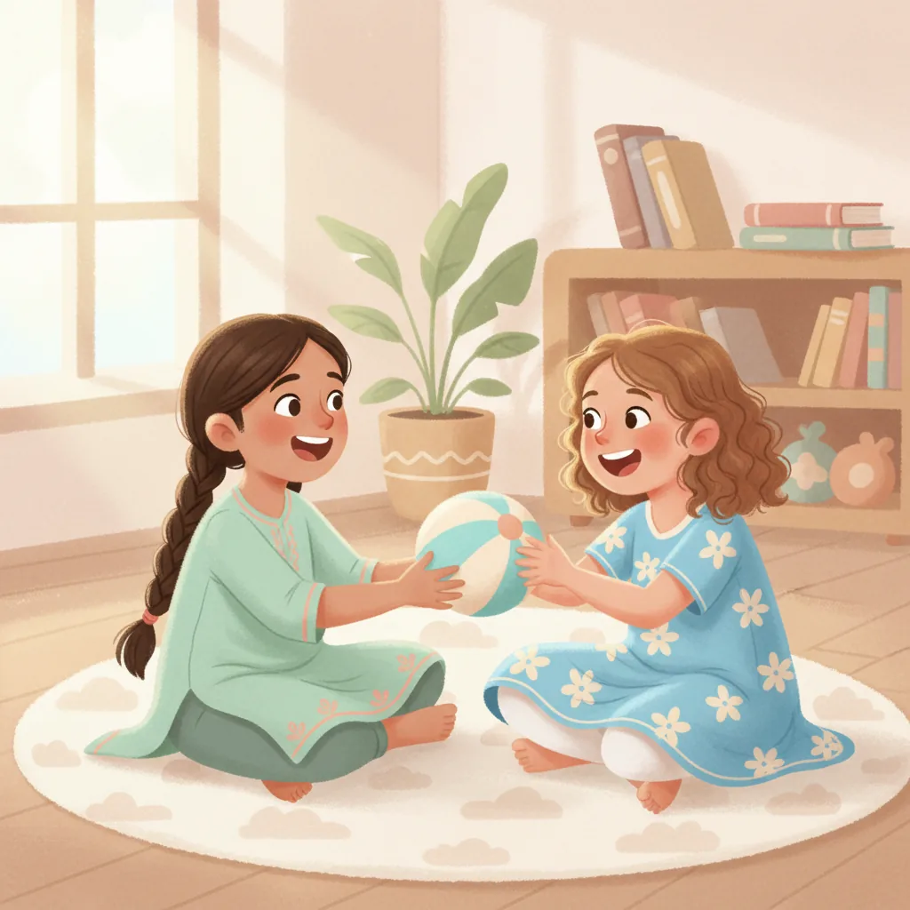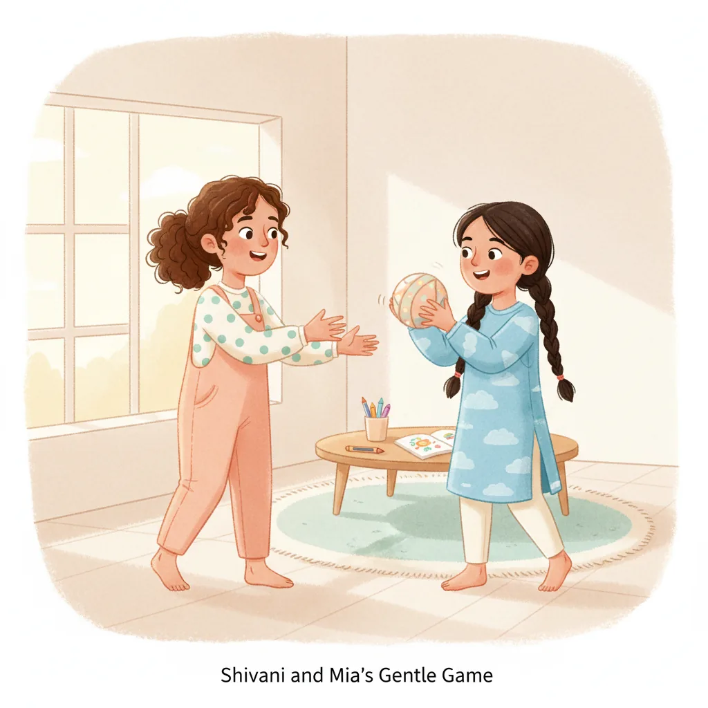 "content": "Comprehension Questions (Choose the Best Answer)\n\n1. What did Shivani want to do in the playground? \n A: Play with Mia's new ball ✅ \n B: Sit on the swing ❌\n\n2. What did Shivani remember to do before playing? \n A: Run away ❌ \n B: Listen to Mia first ✅\n\n3. How did Shivani feel when she waited for her turn? \n A: Happy and calm ✅ \n B: Angry and sad ❌\n\n4. What did Mia say to Shivani? \n A: \"Let's take turns.\" ✅ \n B: \"I don't want to play with you.\" ❌\n\n5. What happened when Shivani listened and waited? \n A: Mia passed the ball to her and smiled ✅ \n B: Mia walked away ❌\n\n6. Why is it important to listen with care? \n A: It helps make playing more fun ✅ \n B: It makes people upset ❌",