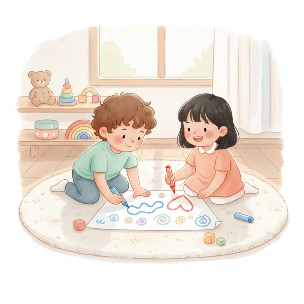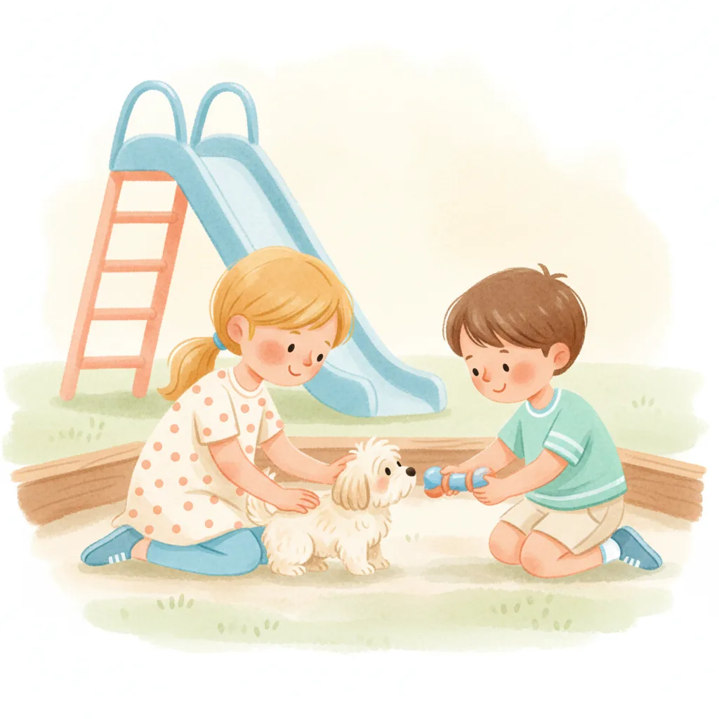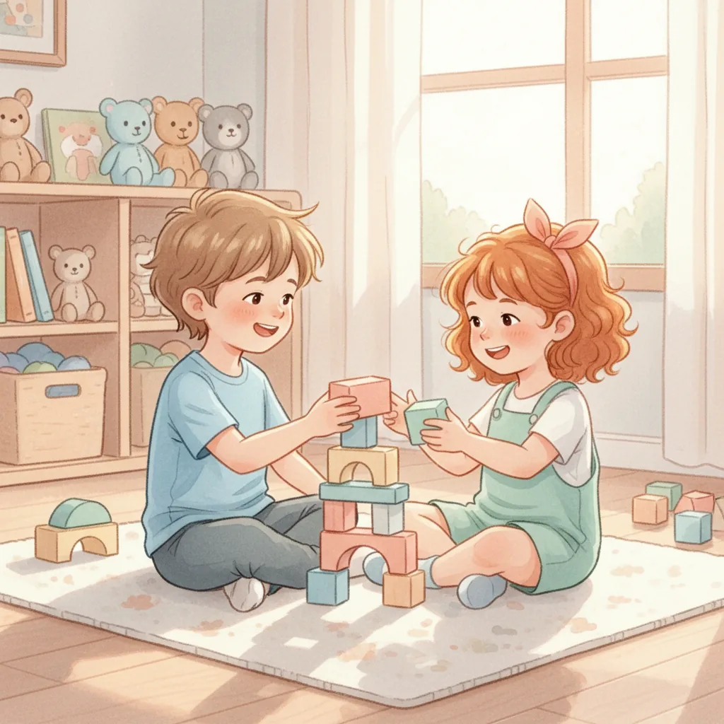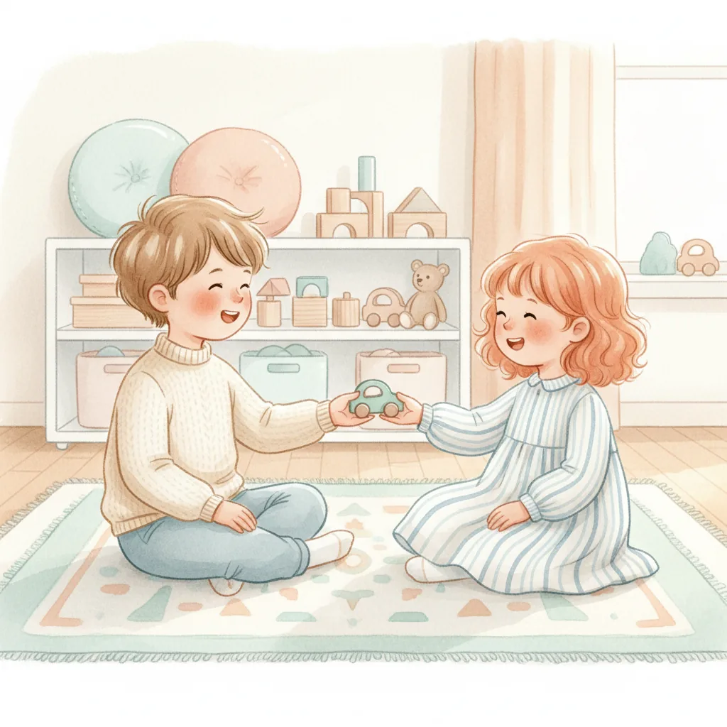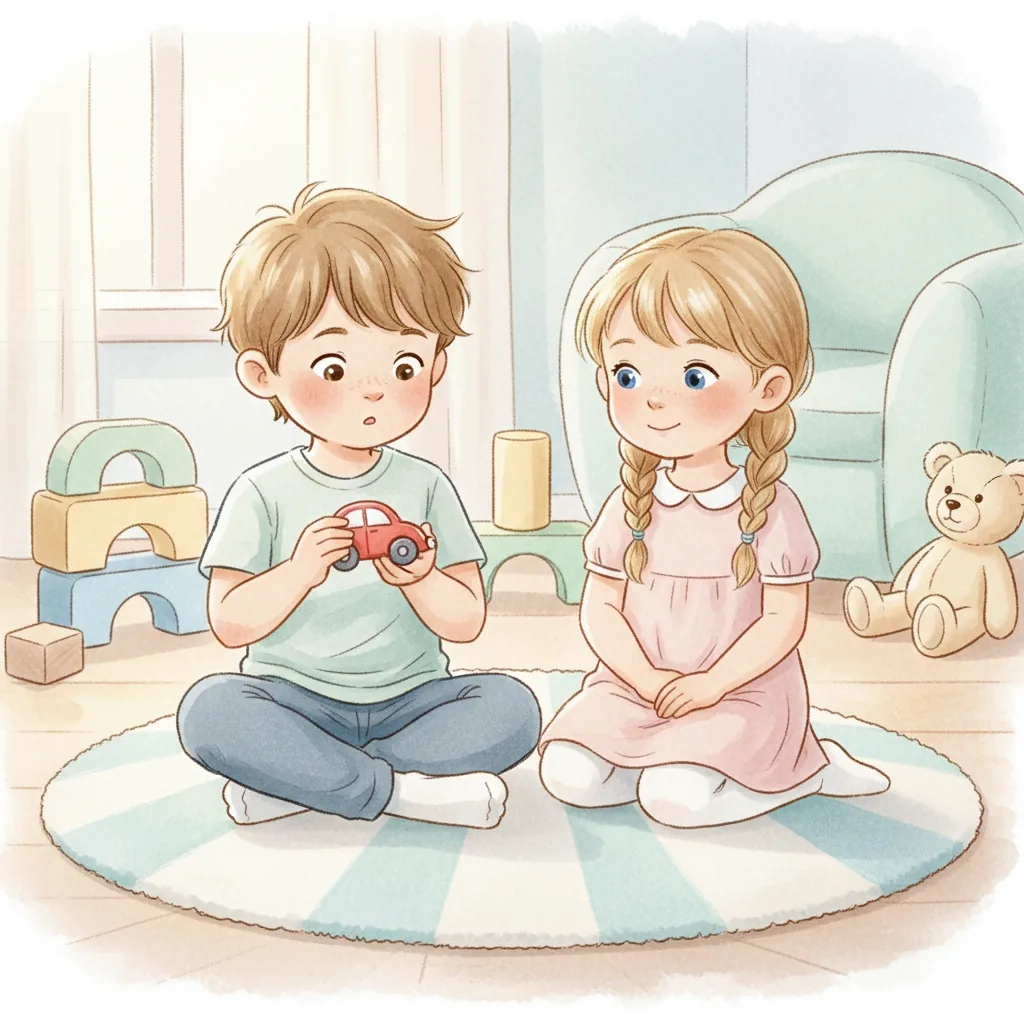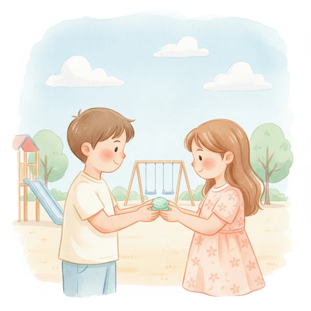 "content": "**Scenario 1** \nPretend the child is with a friend who seems sad. \nPractice asking, \"Do you want to play with me?\" — with a caring tone, feeling concerned and hopeful.\n\n**Scenario 2** \nAct out a situation where the child is gently petting a stuffed animal. \nPractice using gentle hands and saying, \"You are such a good pet!\" — feeling calm and gentle.\n\n**Scenario 3** \nPretend the child and a friend are taking turns with a toy. \nPractice saying, \"Your turn!\" with a smile — feeling happy and sharing.",