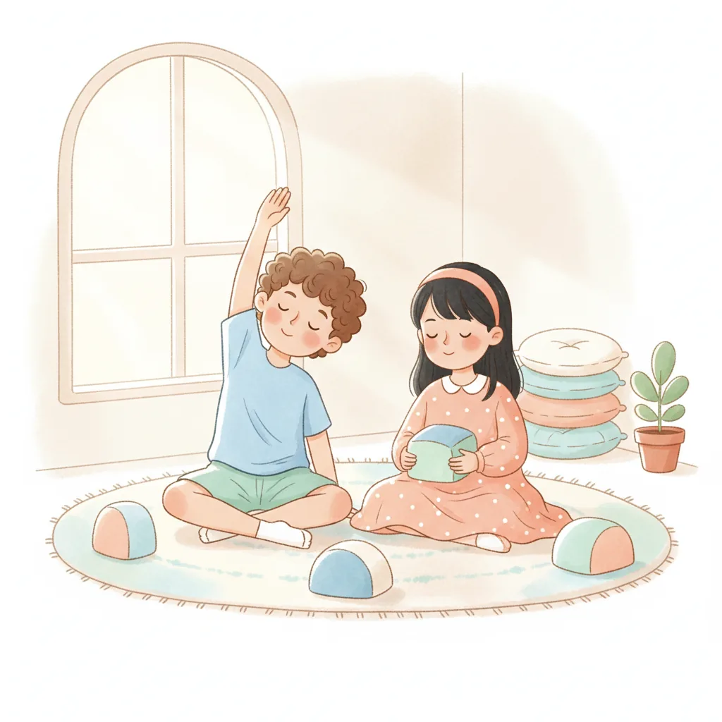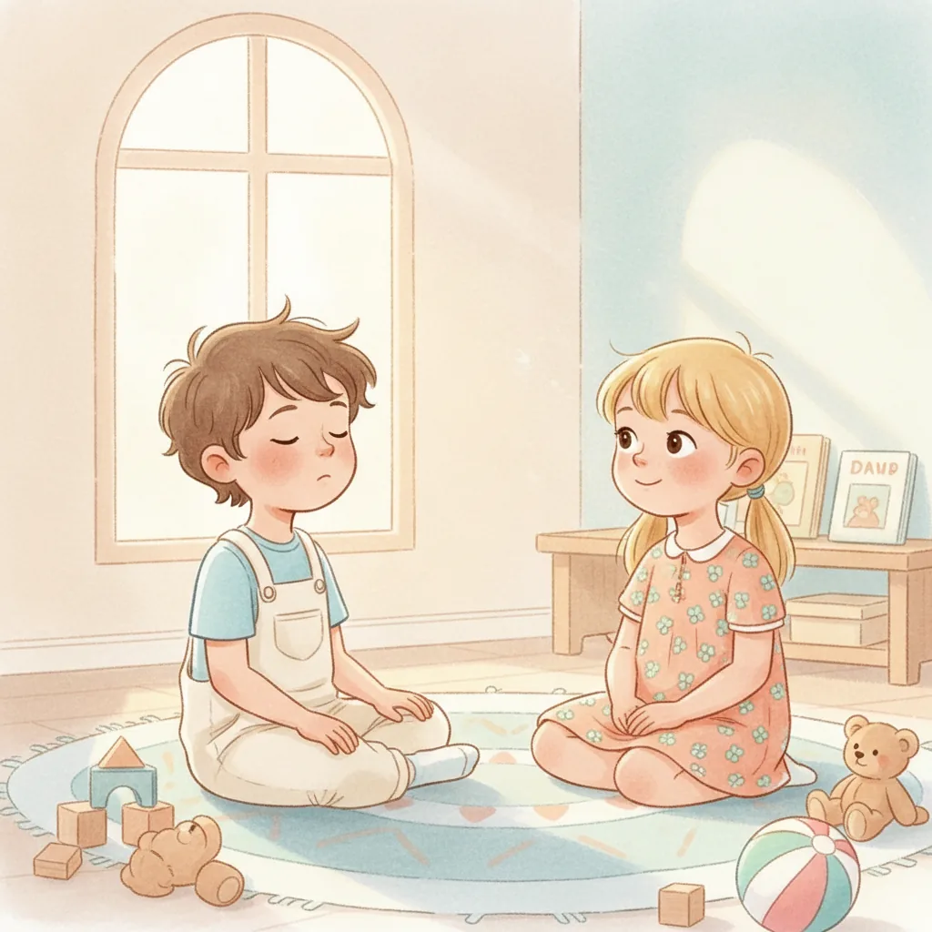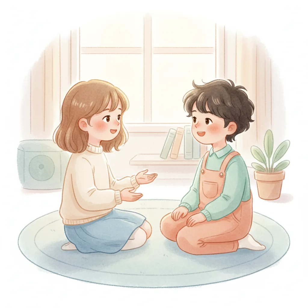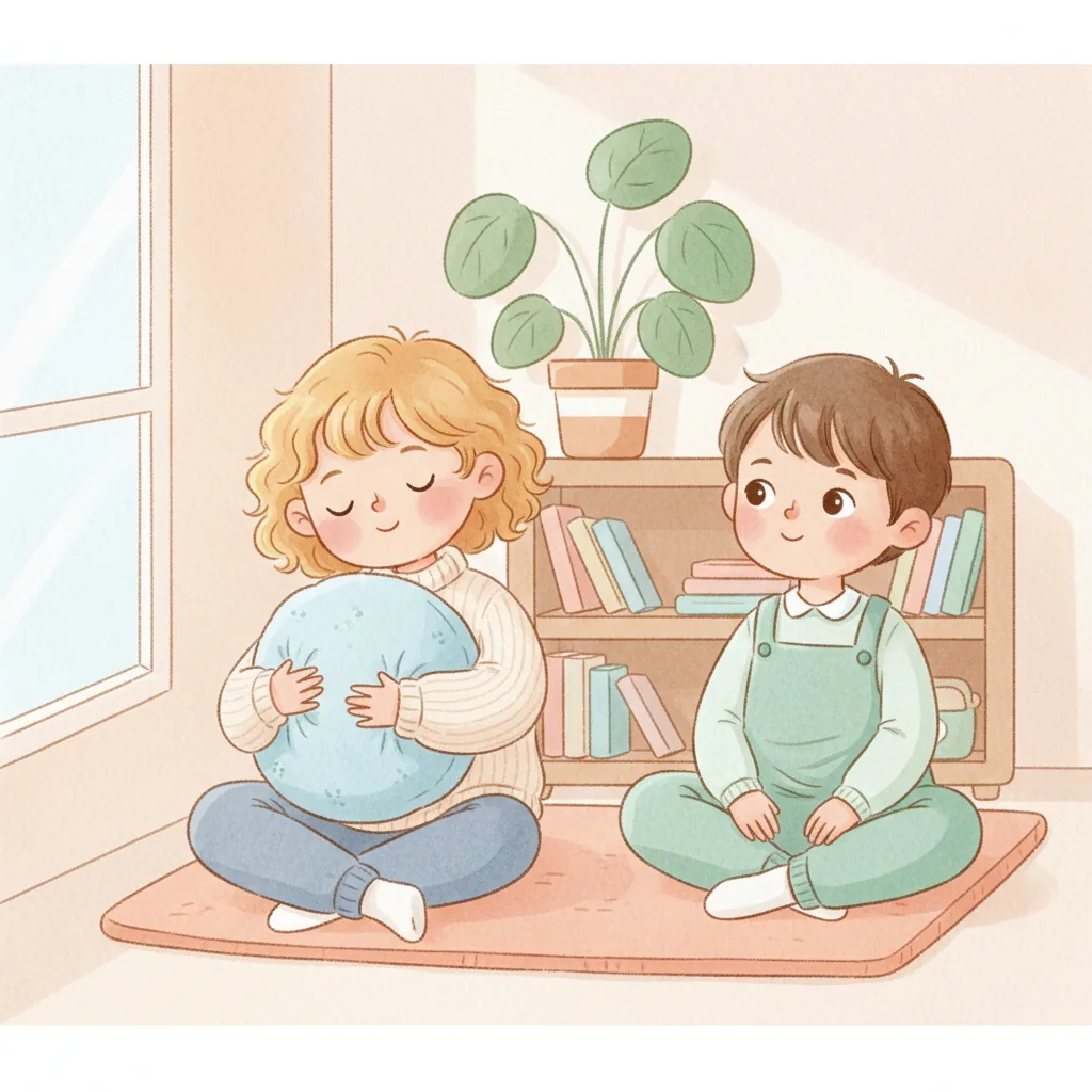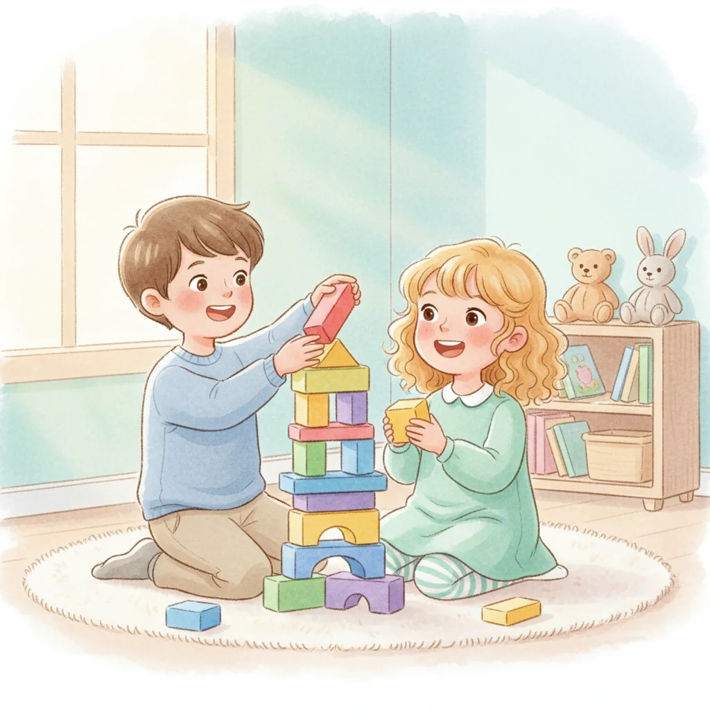 "content": "**Scenario 1** \nPretend the child is with a friend who seems sad. \nPractice asking, \"Do you want to play with me?\" — with a caring tone, feeling concerned and hopeful.\n\n**Scenario 2** \nAct out a situation where the child is gently petting a stuffed animal. \nPractice using gentle hands and saying, \"You are such a good pet!\" — feeling calm and gentle.\n\n**Scenario 3** \nPretend the child and a friend are taking turns with a toy. \nPractice saying, \"Your turn!\" with a smile — feeling happy and sharing.",