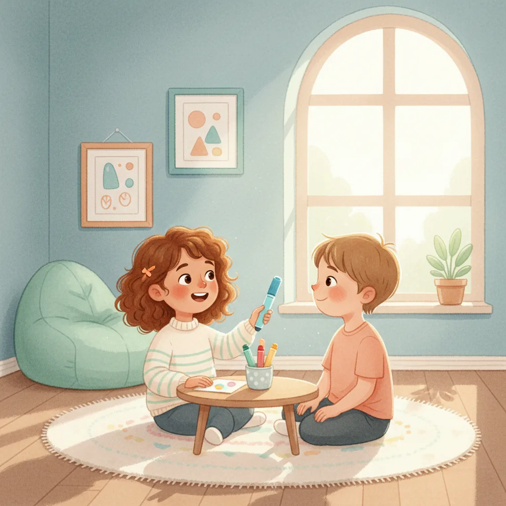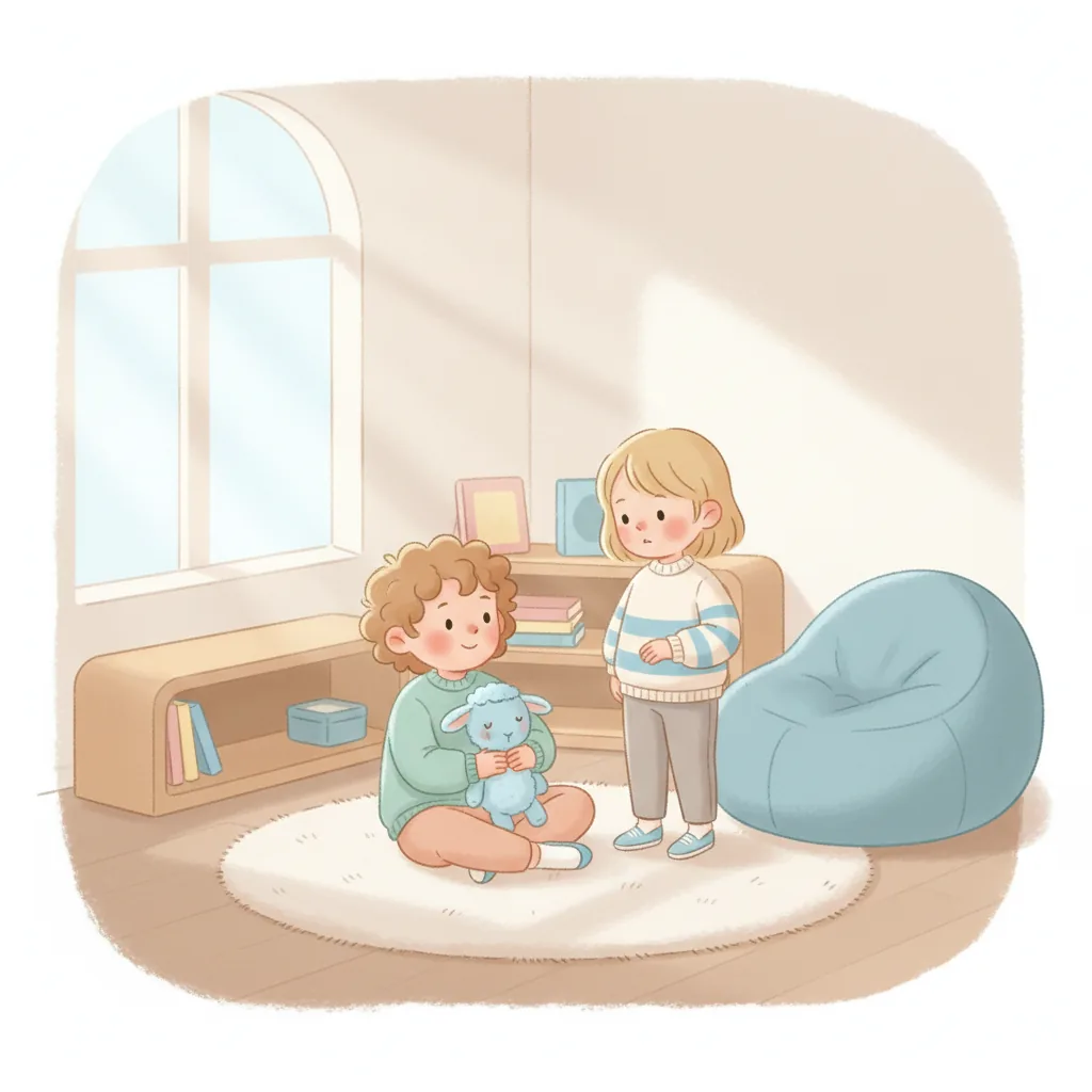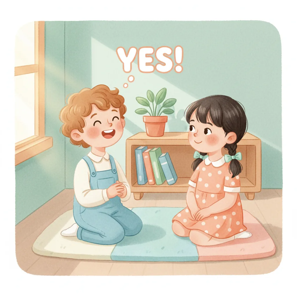 "content_es": "**Role-Play Activity**\n\n\n**Escenario 1** \nImagina que un amigo está triste. \nPractica preguntando: \"¿Quieres jugar conmigo?\" — con un tono cariñoso, sintiéndote preocupado y esperanzado.\n\n**Escenario 2** \nActúa una situación donde el niño acaricia suavemente un peluche. \nPractica usando manos suaves y diciendo: \"¡Eres una mascota tan buena!\" — sintiéndote calmado y gentil.\n\n**Escenario 3** \nImaginen que tú y un amigo están turnándose para jugar con un juguete. \nPractiquen decir, \"¡Te toca a ti!\" con una sonrisa — sintiéndose felices y compartiendo.",