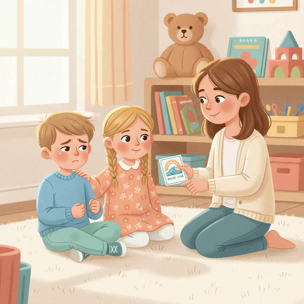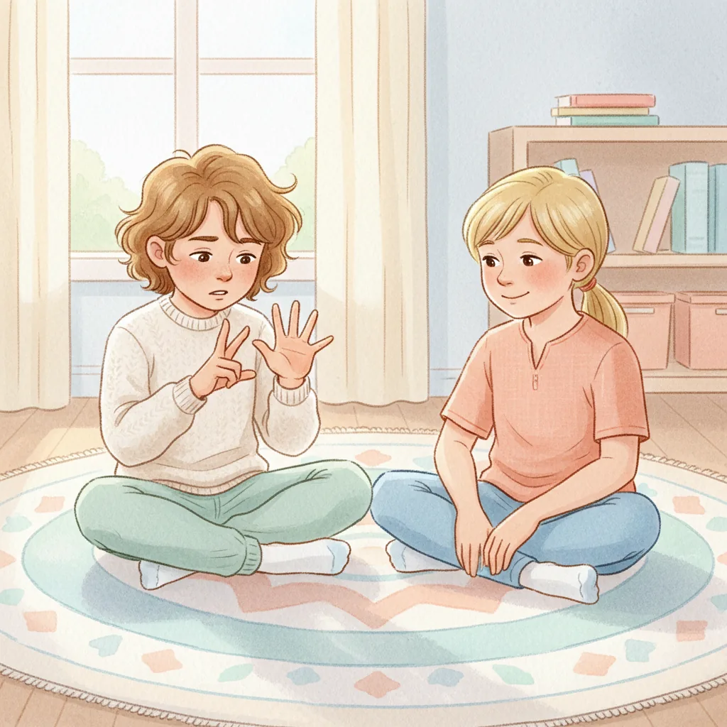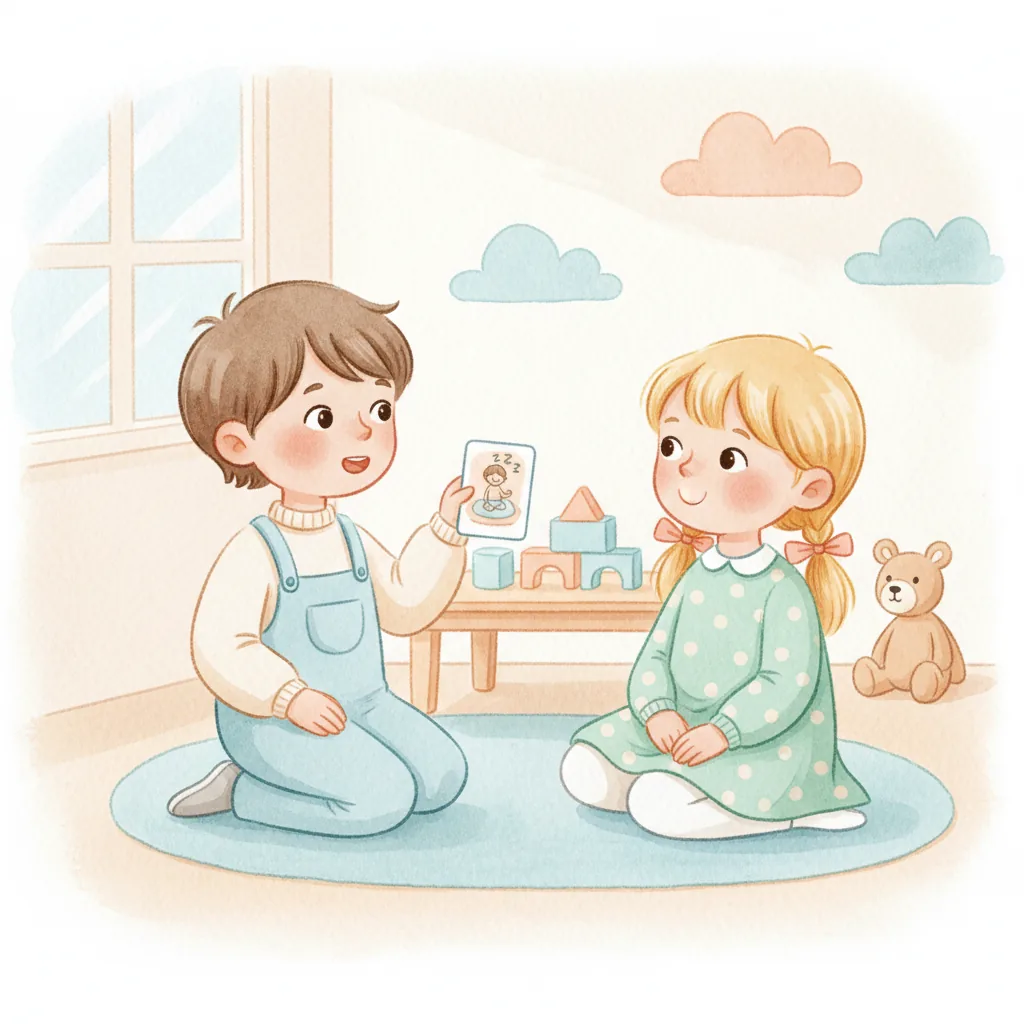 "content_es": "**Role-Play Activity**\n\n\n**Escenario 1** \nImagina que un amigo está triste. \nPractica preguntando: \"¿Quieres jugar conmigo?\" — con un tono cariñoso, sintiéndote preocupado y esperanzado.\n\n**Escenario 2** \nActúa una situación donde el niño acaricia suavemente un peluche. \nPractica usando manos suaves y diciendo: \"¡Eres una mascota tan buena!\" — sintiéndote calmado y gentil.\n\n**Escenario 3** \nImaginen que tú y un amigo están turnándose para jugar con un juguete. \nPractiquen decir, \"¡Te toca a ti!\" con una sonrisa — sintiéndose felices y compartiendo.",