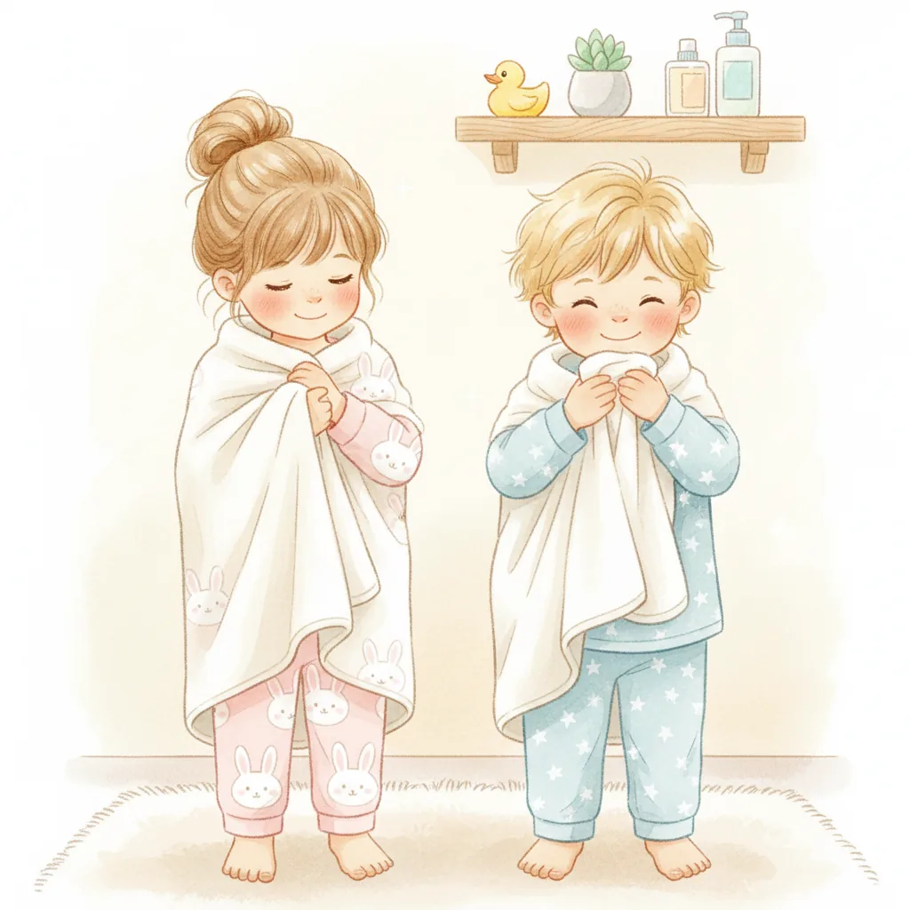 "es": "Me seco y me pongo mi pijama acogedor.",