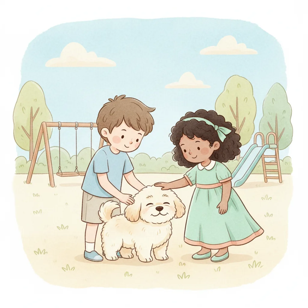"es": "✏️ Vocabulary:\n\n\n1. **Cariñoso** \n- Ser amable y gentil con los demás\n\n2. **Amable** \n- Suave y cuidadoso al tocar\n\n3. **Amigo/Amiga** \n- Alguien que te gusta y con quien pasas tiempo\n\n4. **Mascota** \n- Un animal del que cuidas y al que quieres\n\n5. **Suave** \n- No duro ni áspero; fácil de tocar\n\n6. **Compartir**\n- Dejar que otros usen o tengan algo que tú tienes\n\n7. **Saludable**\n- Sentirse bien y fuerte\n\n8. **Abrazo**\n- Rodear a alguien con tus brazos para mostrar amor o cariño",