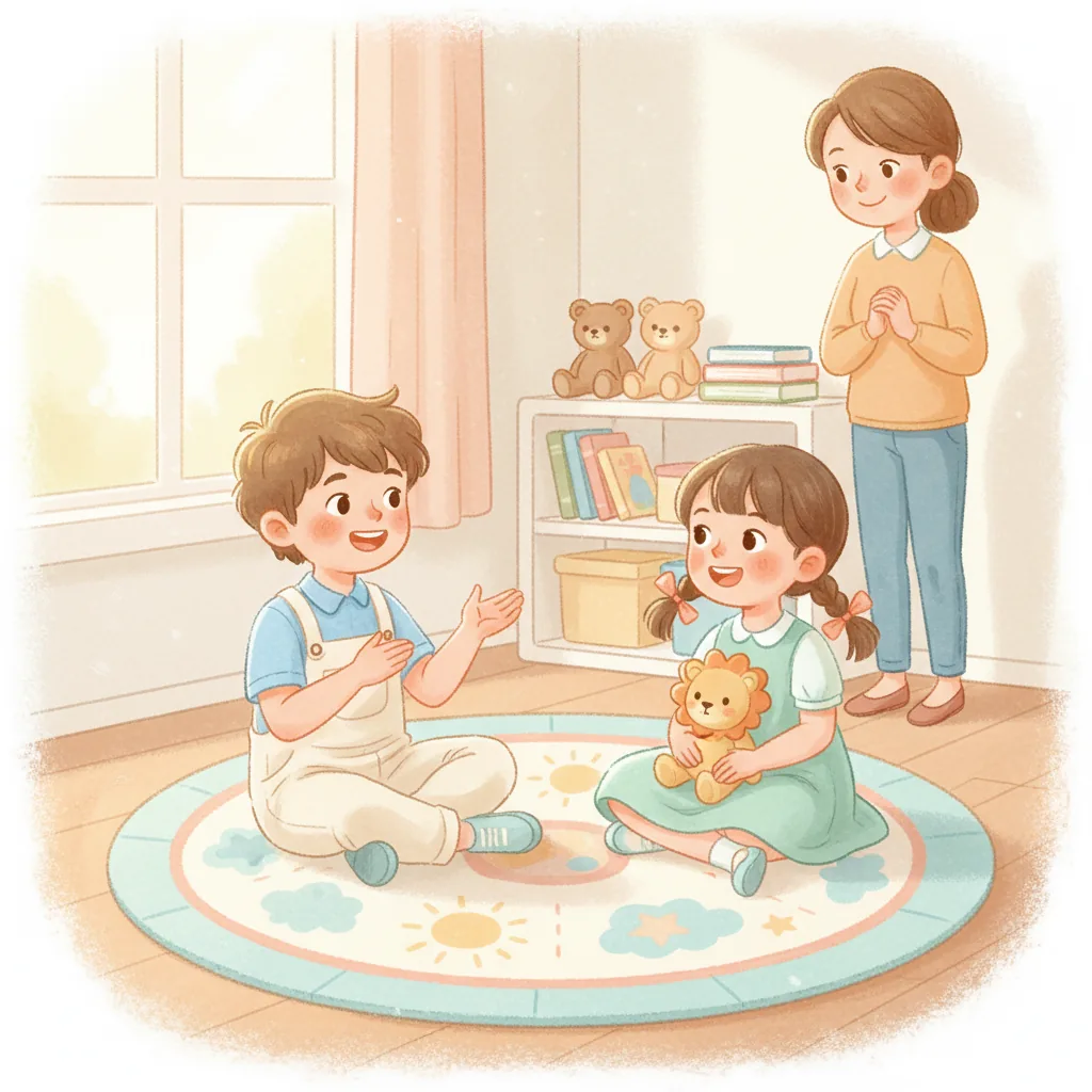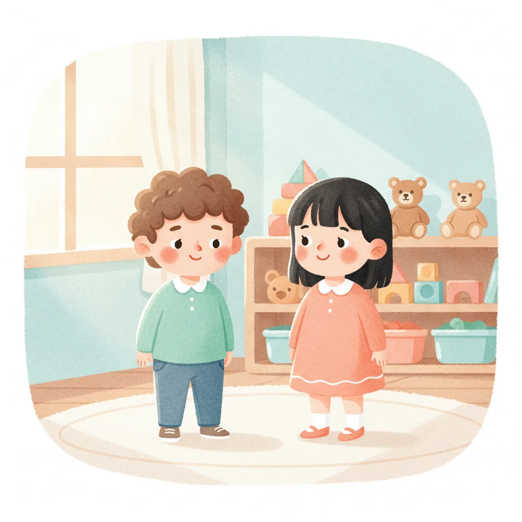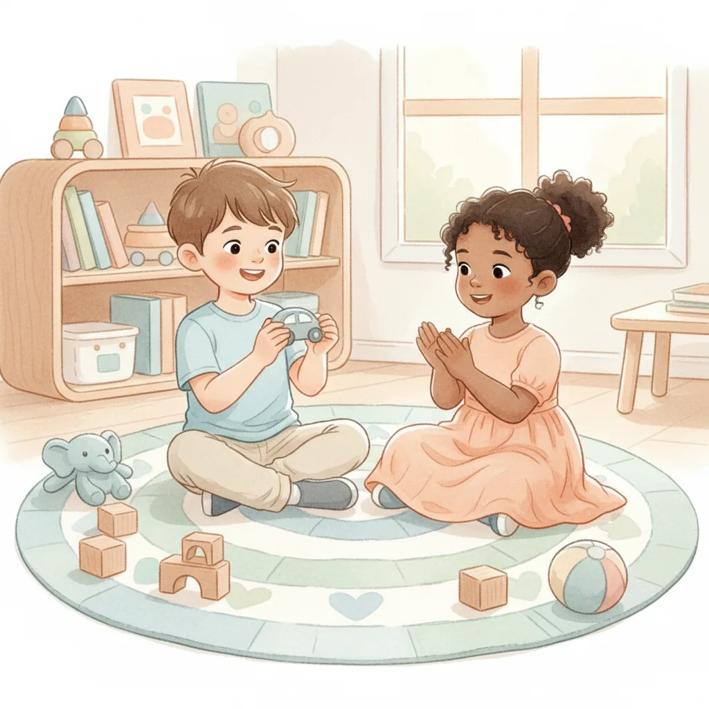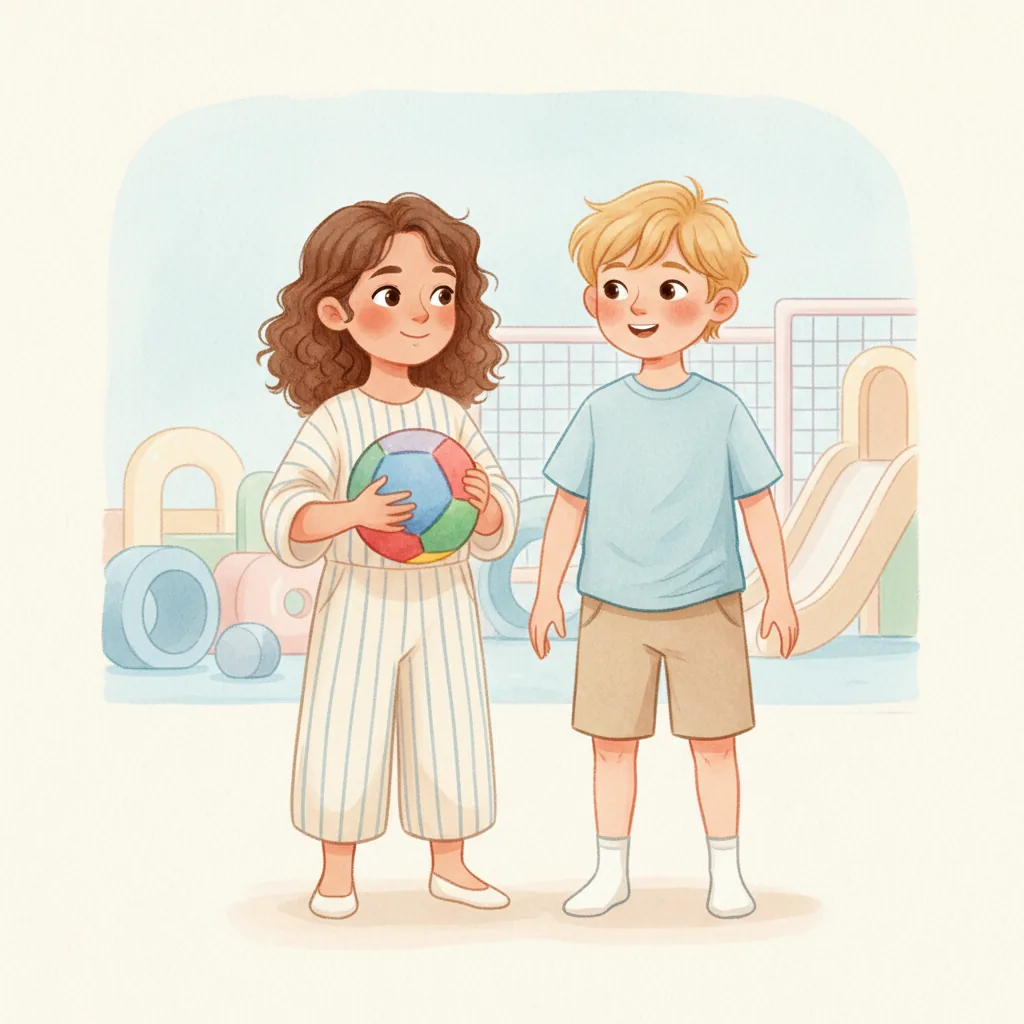 "content": ": Sharing Toys with Friends**\n\n**Scenario 1** \nPretend the child sees a friend playing with a favorite toy. \nPractice saying, \"Can I play with the toy too?\" — feeling a bit shy, then happy when the friend says, \"Yes, let's play together!\"\n\n**Scenario 2** \nAct out a situation where both children have a toy. \nPractice taking turns by saying, \"Your turn,\" with a smile, and waiting patiently for the friend to finish before saying, \"My turn now,\" feeling proud.\n\n**Scenario 3** \nPretend the child is playing with a toy and a friend asks to join. \nPractice responding with, \"Sure, let's share!\" — feeling excited to play together and happy when the friend joins in.",