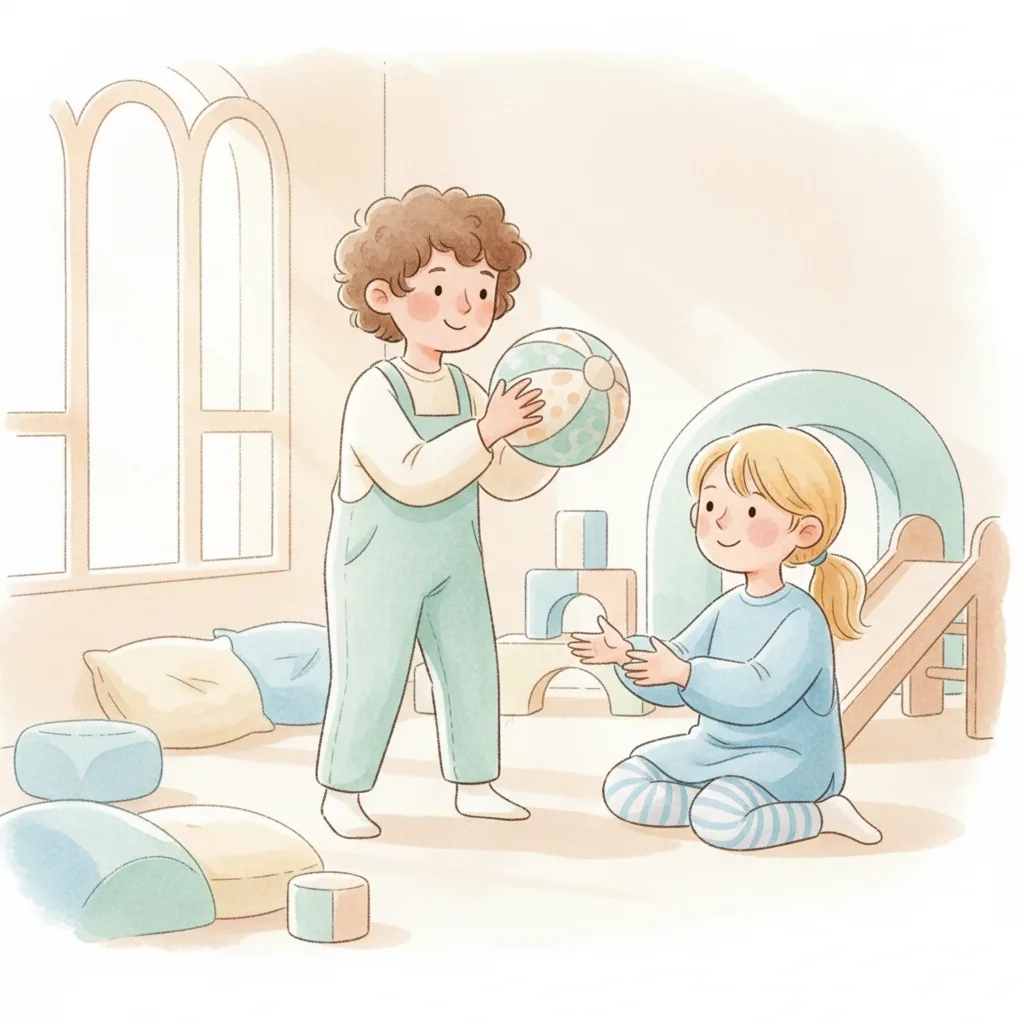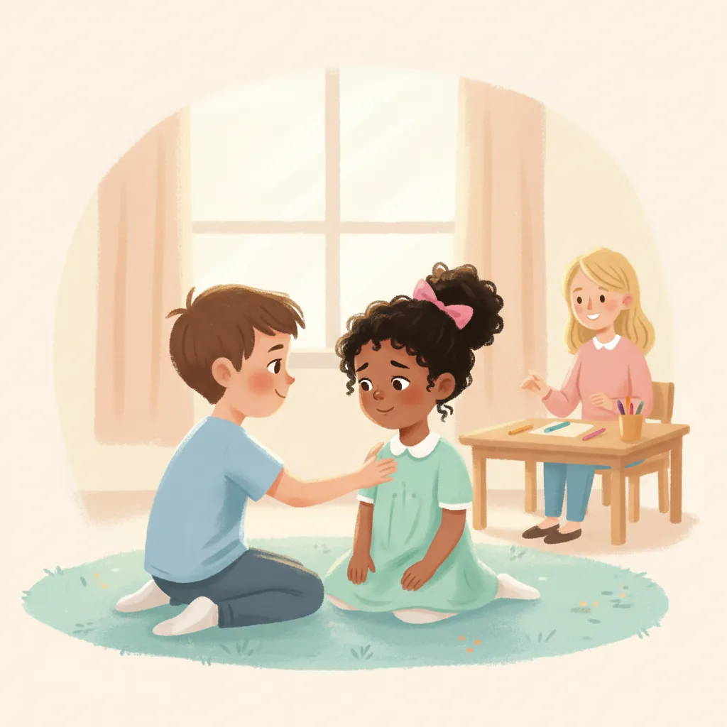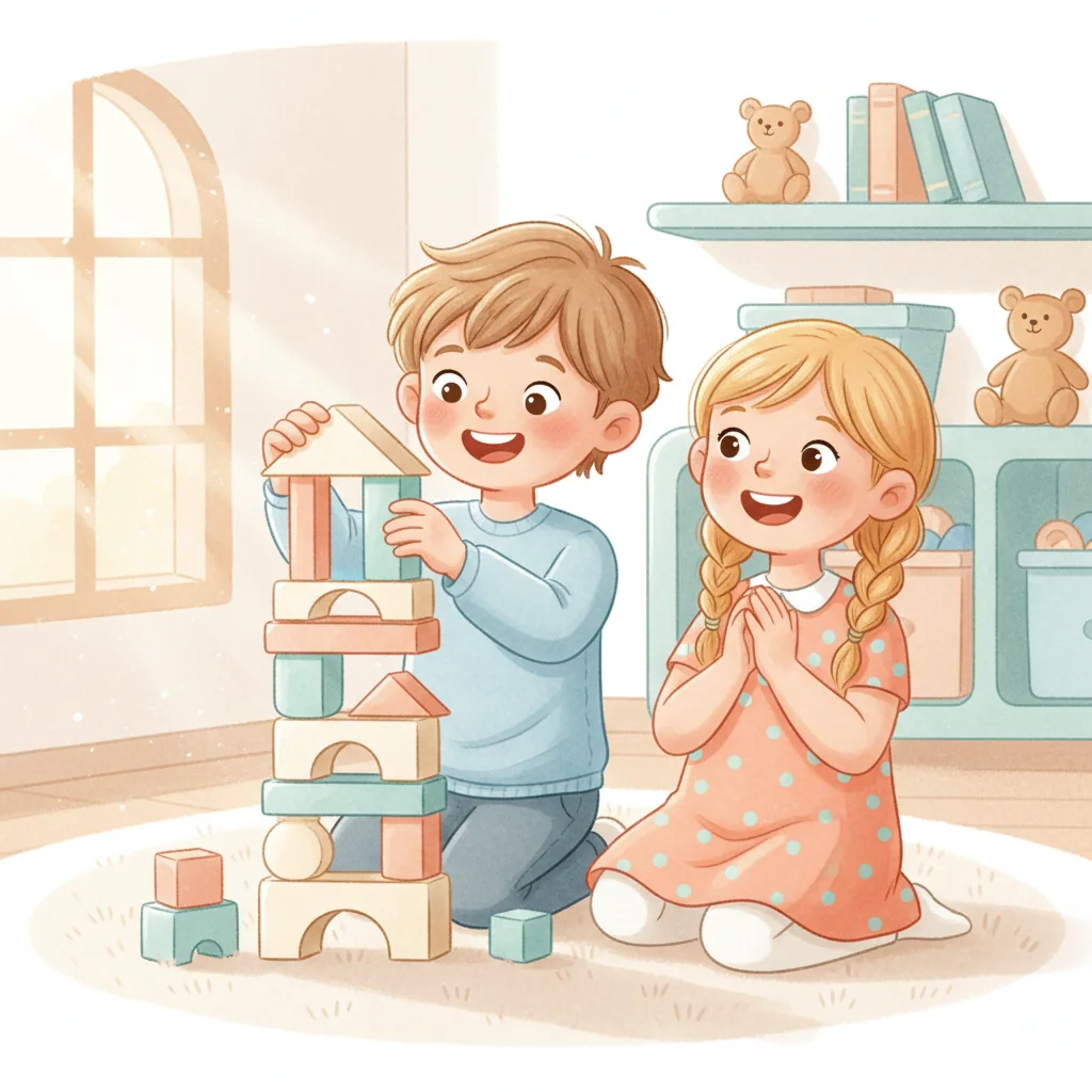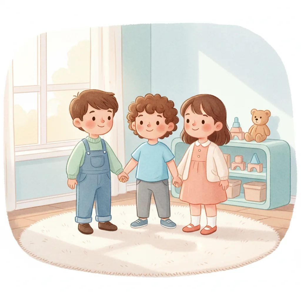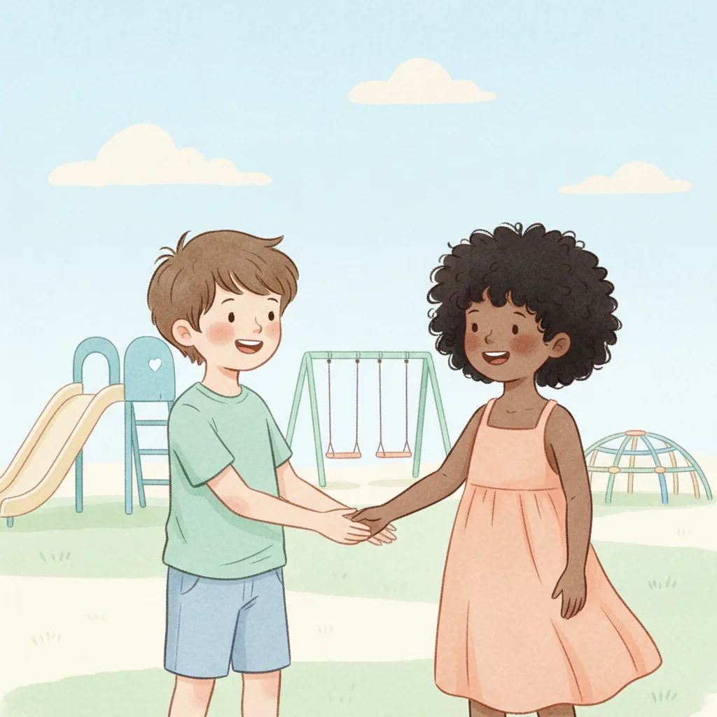 "content": ": Sharing Toys with Friends**\n\n**Scenario 1** \nPretend the child sees a friend playing with a favorite toy. \nPractice saying, \"Can I play with the toy too?\" — feeling a bit shy, then happy when the friend says, \"Yes, let's play together!\"\n\n**Scenario 2** \nAct out a situation where both children have a toy. \nPractice taking turns by saying, \"Your turn,\" with a smile, and waiting patiently for the friend to finish before saying, \"My turn now,\" feeling proud.\n\n**Scenario 3** \nPretend the child is playing with a toy and a friend asks to join. \nPractice responding with, \"Sure, let's share!\" — feeling excited to play together and happy when the friend joins in.",