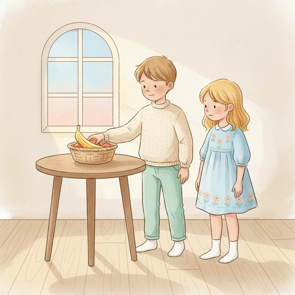 "es": "Texto: Primero encuentro mi plátano favorito.",