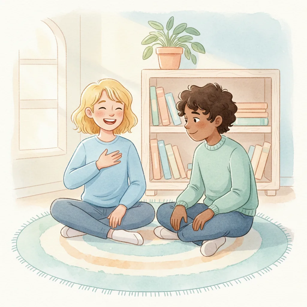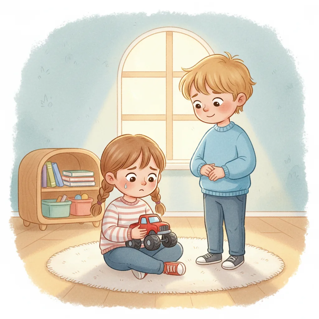 "content": "🧠 Topic: Sharing Toys with Friends \nComprehension Questions (Choose the Best Answer)\n\n1. What did I see my friend Mia playing with? \n A: A big red truck ✅ \n B: A blue ball ❌\n\n2. How did I feel when I wanted to play with the truck too? \n A: Happy ❌ \n B: A little left out ✅\n\n3. What did I do before asking Mia to play with the truck? \n A: I walked away ❌ \n B: I took a deep breath ✅\n\n4. What did Mia say when I asked to play with the truck? \n A: \"No, it's mine!\" ❌ \n B: \"Yes, let's play together!\" ✅\n\n5. How did we play with the truck? \n A: We both pushed it at the same time ❌ \n B: We took turns pushing the truck ✅\n\n6. What did I say when it was Mia's turn? \n A: \"My turn again!\" ❌ \n B: \"Your turn, Mia.\" ✅\n\n7. How did sharing the truck make me feel? \n A: Proud and happy ✅ \n B: Sad and upset ❌\n\n8. What did Mia suggest we do tomorrow? \n A: Play with someone else ❌ \n B: Play again together ✅\n\n9. What is one thing we learn from sharing toys? \n A: It's only fun for one person ❌ \n B: Sharing is fun with friends ✅",