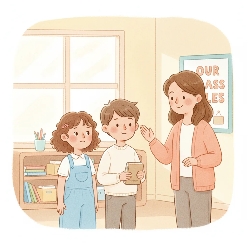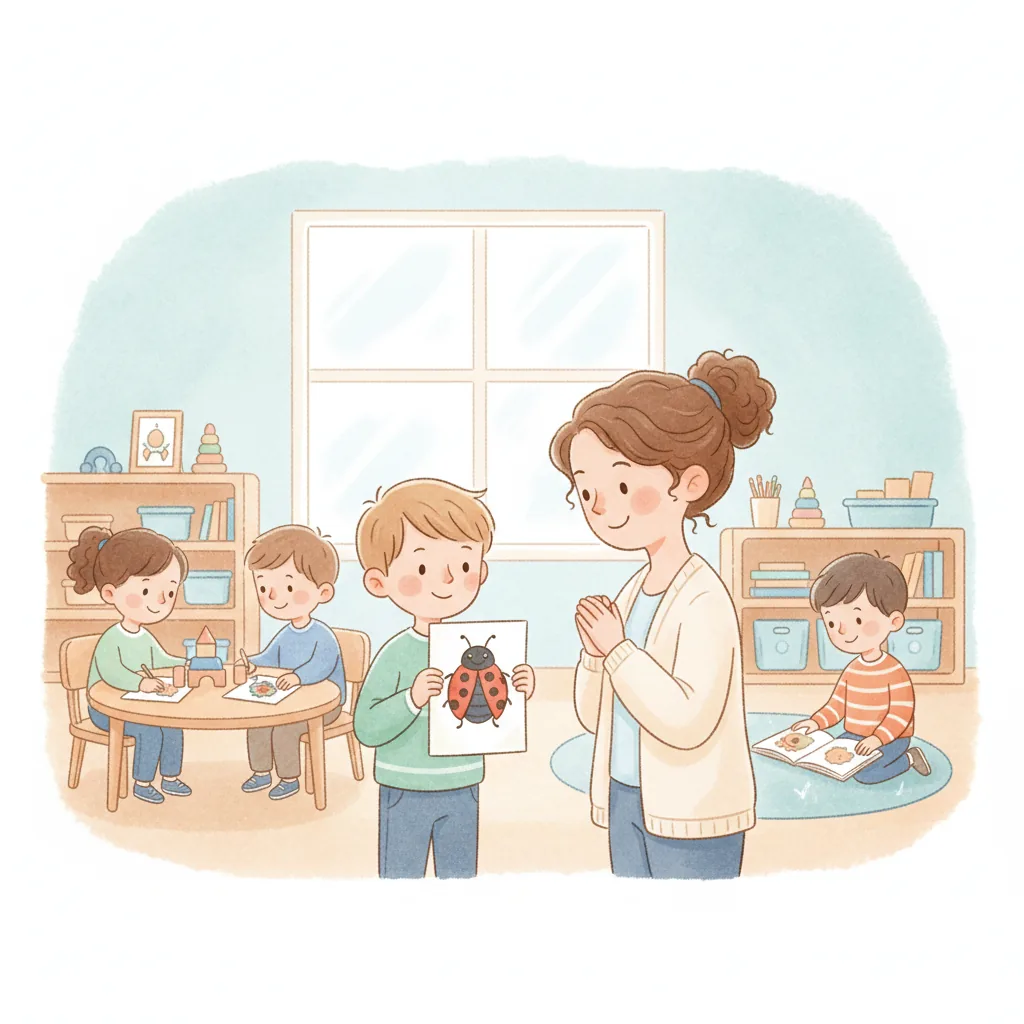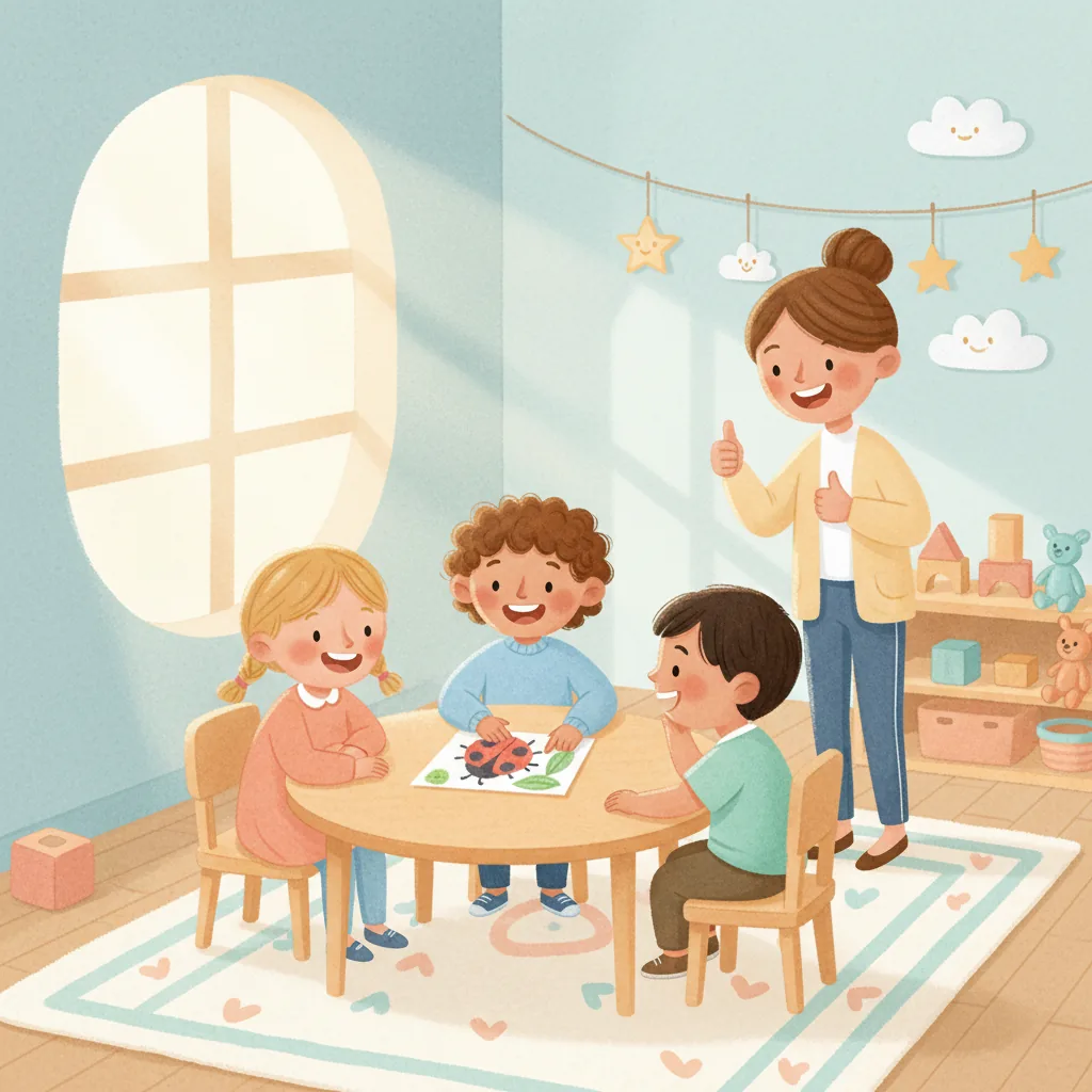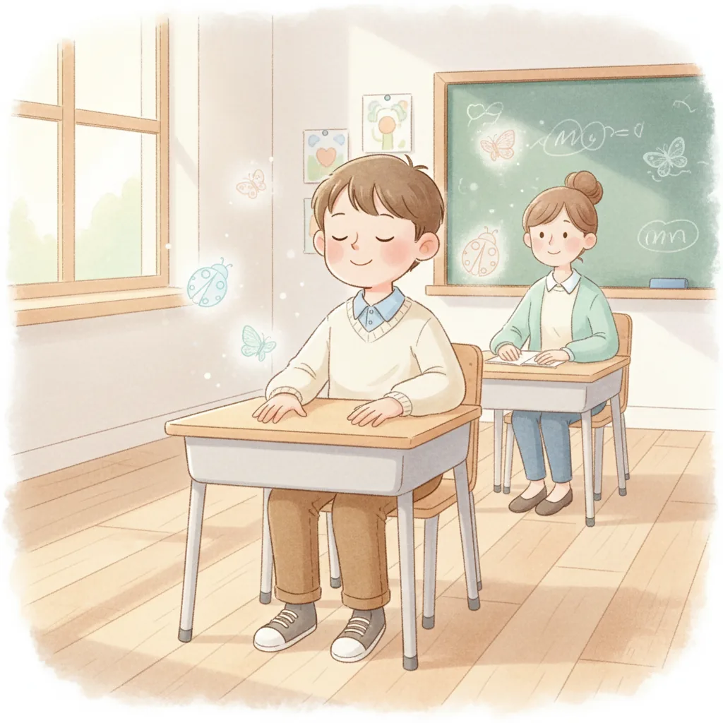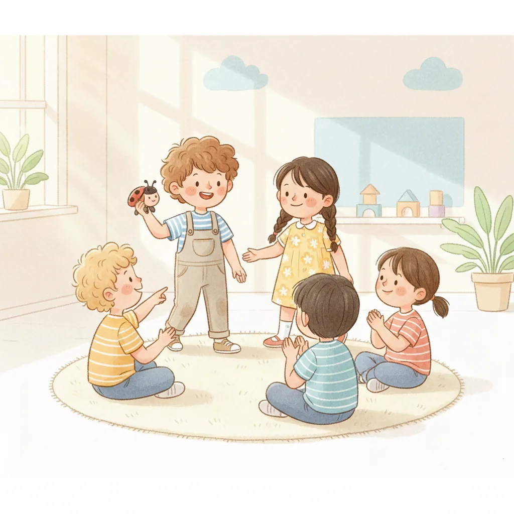 "content": ": Thomas's Journey to School Success\n\n**Scenario 1** \nPretend it's time to line up in class. \nPractice standing behind a friend and keeping hands to oneself. \nChild says, \"I’m ready to line up!\" — feeling focused and proud.\n\n**Scenario 2** \nAct out a situation where the child feels wiggly. \nPractice showing a special picture to the teacher and saying, \"Can I have a Bug Break, please?\" — feeling nervous, then relieved.\n\n**Scenario 3** \nPretend to share a fun fact during a class lesson. \nPractice waiting for a turn and saying, \"Did you know bugs can sing?\" — feeling excited and happy when friends listen and smile.",