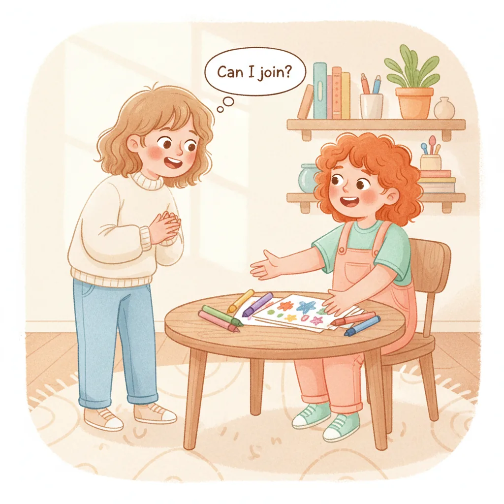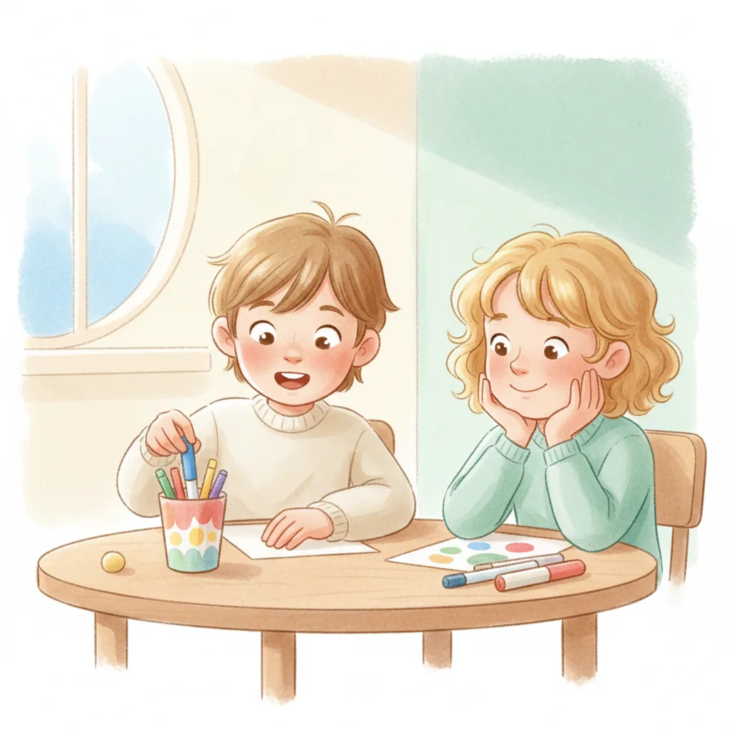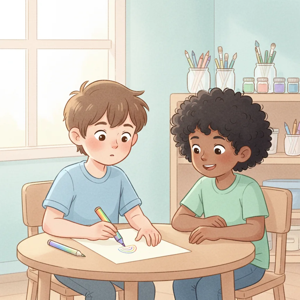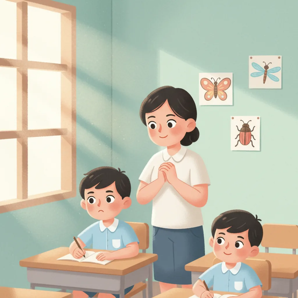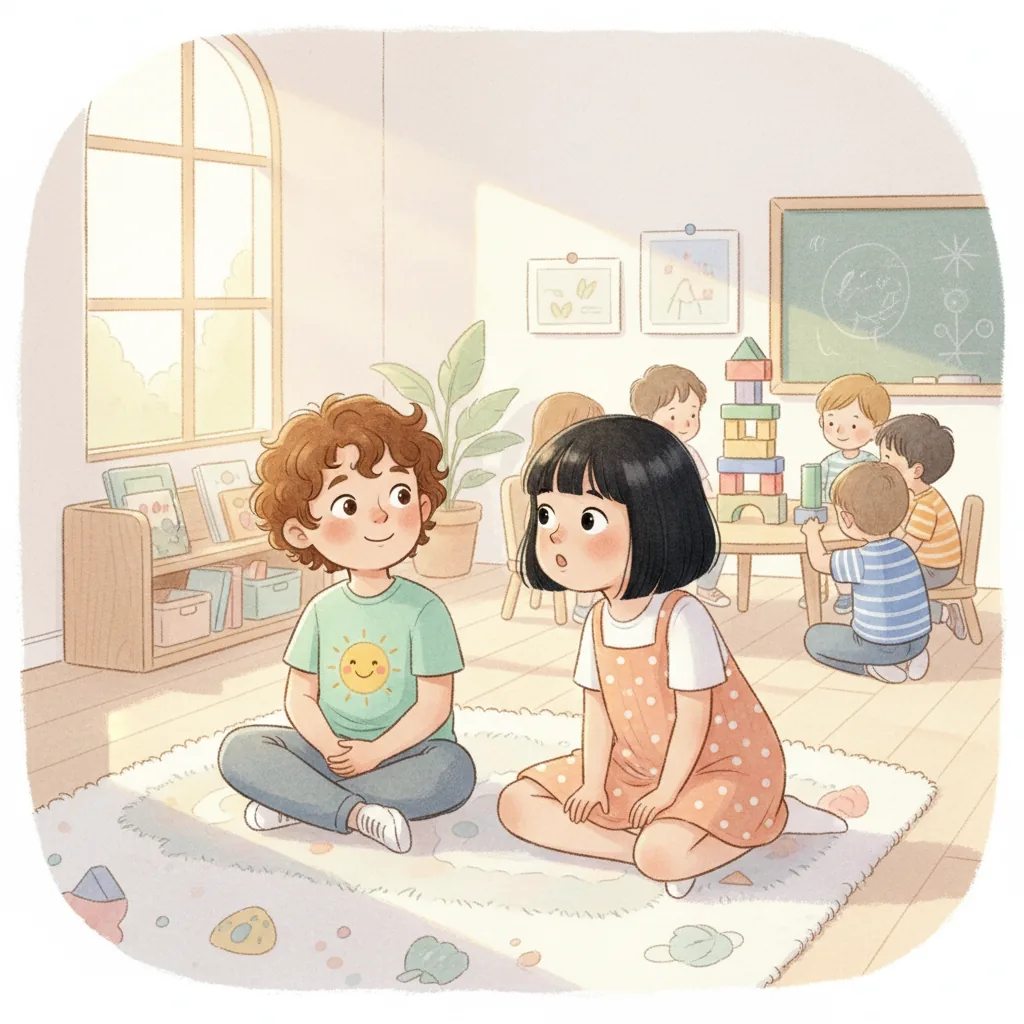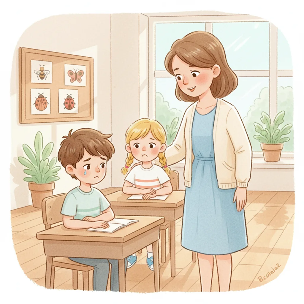 "content": ": Thomas's Journey to School Success\n\n**Scenario 1** \nPretend it's time to line up in class. \nPractice standing behind a friend and keeping hands to oneself. \nChild says, \"I’m ready to line up!\" — feeling focused and proud.\n\n**Scenario 2** \nAct out a situation where the child feels wiggly. \nPractice showing a special picture to the teacher and saying, \"Can I have a Bug Break, please?\" — feeling nervous, then relieved.\n\n**Scenario 3** \nPretend to share a fun fact during a class lesson. \nPractice waiting for a turn and saying, \"Did you know bugs can sing?\" — feeling excited and happy when friends listen and smile.",