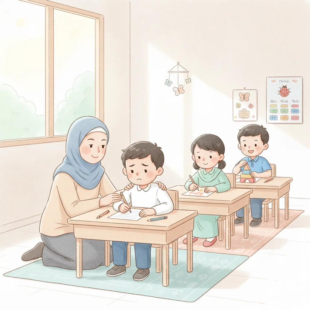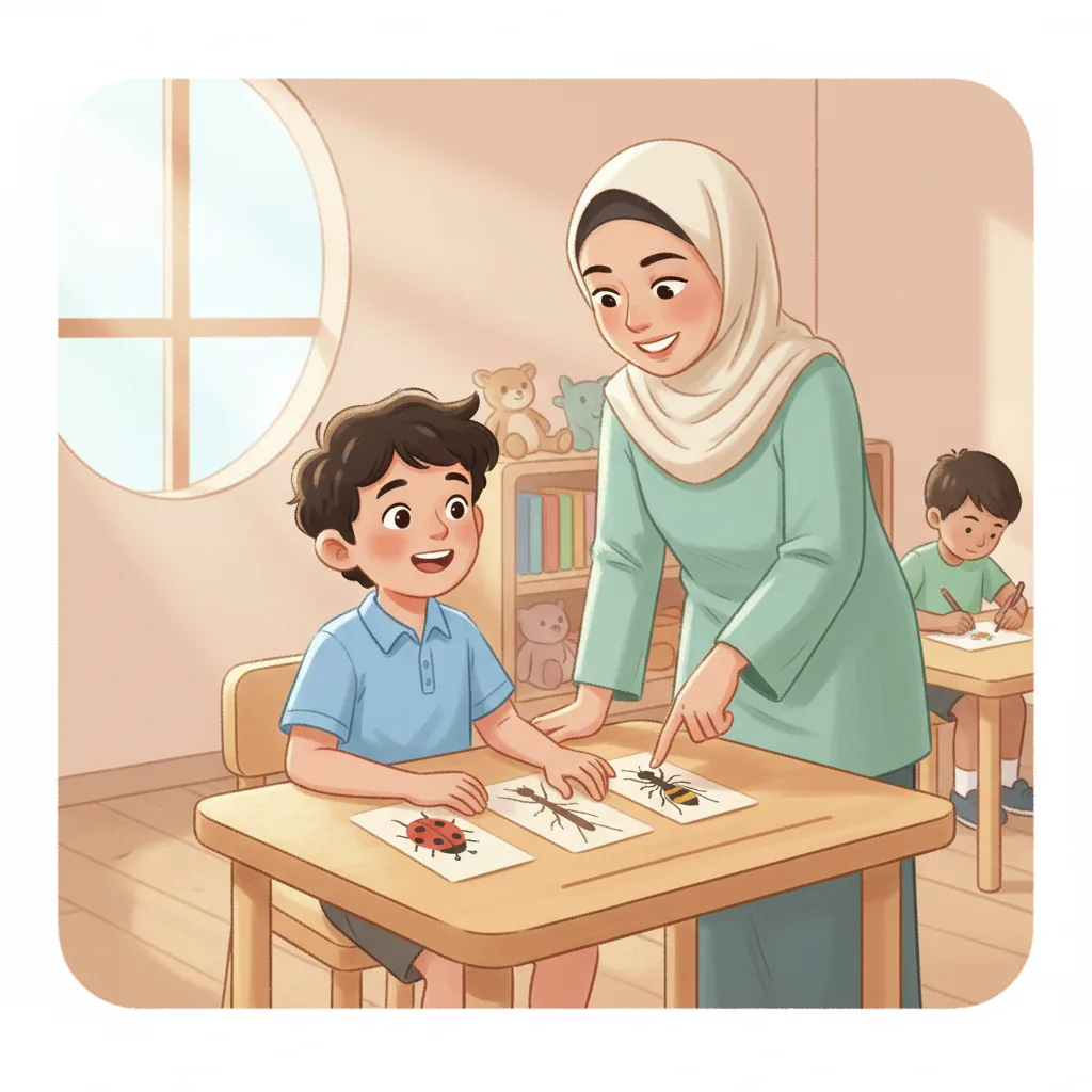 "content_ar": "Comprehension Questions (Choose the Best Answer)\n\n\n1. ماذا يفعل توماس عندما تقول معلمته \"حان وقت الاصطفاف!\"؟\n A: يهرب ❌\n B: يقف خلف صديقه ويبقي يديه لنفسه ✅\n\n2. كيف يشعر توماس عندما يتبع قواعد الاصطفاف؟\n A: فخور وهادئ ✅\n B: حزين ومنزعج ❌\n\n3. بماذا يستخدم توماس ليُظهر أنه بحاجة إلى استراحة؟\n A: صوت عالٍ ❌\n B: صورة حشرة خاصة ✅\n\n4. إلى أين يذهب توماس للاستراحة؟\n A: إلى الخارج للعب ❌\n B: إلى ركن التهدئة مع ألعاب الحشرات الخاصة به ✅\n\n5. كيف يشعر توماس بعد استراحته؟\n A: متعب ومتذمر ❌\n B: مستعد للانضمام إلى أصدقائه مرة أخرى ✅\n\n6. ماذا يمكن أن يشارك توماس مع فصله خلال الدروس؟\n A: حقائق ممتعة عن الحشرات ✅\n B: أسرار عن أصدقائه ❌\n\n7. كيف تظهر معلمة توماس أنها سعيدة به؟\n A: تمنحه إشارة الإبهام لأعلى ✅\n B: تطلب منه أن يكون هادئًا ❌\n\n8. ما الذي يساعد توماس على النجاح في المدرسة؟\n A: اتباع روتيناته واستخدام صورة الحشرة الخاصة به ✅\n B: تجاهل الجميع وفعل ما يريد ❌",