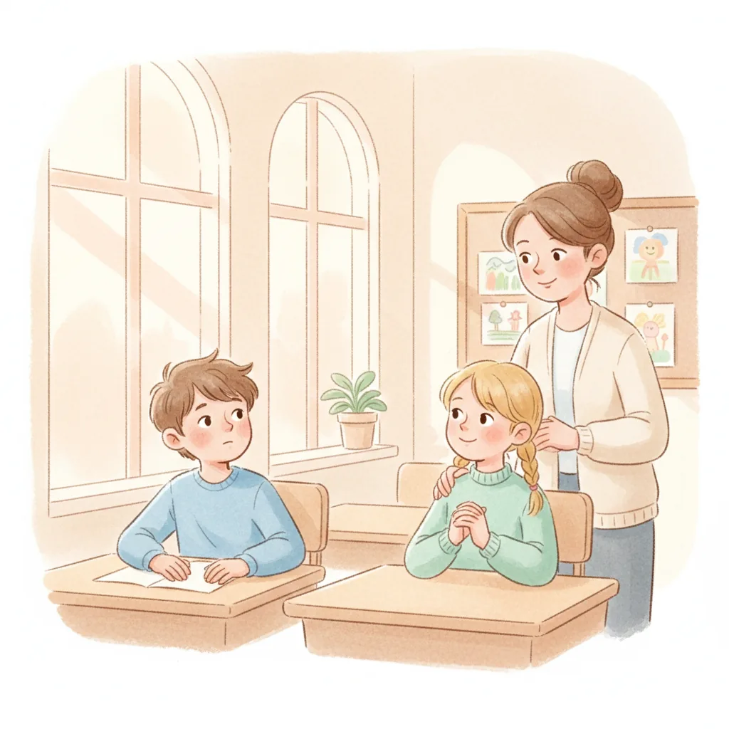 "content": "🧠 Topic: Thomas's Journey to School Success \nComprehension Questions (Choose the Best Answer)\n\n1. What does Thomas do when his teacher says, \"Time to line up!\"? \n A: Runs away ❌ \n B: Stands behind his friend and keeps his hands to himself ✅\n\n2. How does Thomas feel when he follows the line-up rules? \n A: Proud and calm ✅ \n B: Sad and upset ❌\n\n3. What does Thomas use to show he needs a break? \n A: A loud noise ❌ \n B: A special bug picture ✅\n\n4. Where does Thomas go for a break? \n A: Outside to play ❌ \n B: The Cool Down Corner with his bug toys ✅\n\n5. How does Thomas feel after his break? \n A: Tired and grumpy ❌ \n B: Ready to join his friends again ✅\n\n6. What can Thomas share with his class during lessons? \n A: Fun bug facts ✅ \n B: Secrets about his friends ❌\n\n7. How does Thomas's teacher show she is happy with him? \n A: Gives him a thumbs up ✅ \n B: Tells him to be quiet ❌\n\n8. What helps Thomas succeed at school? \n A: Following his routines and using his bug picture ✅ \n B: Ignoring everyone and doing what he wants ❌",