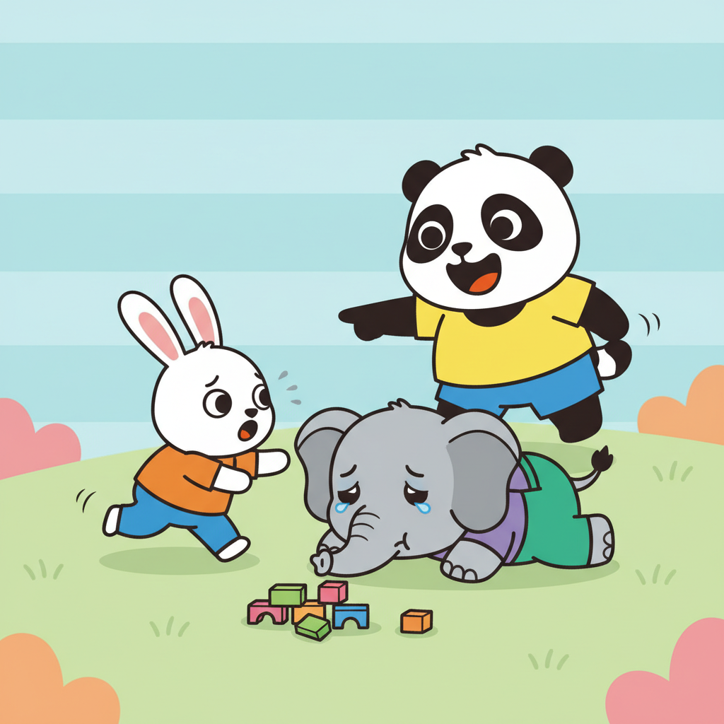 "scenario_text": "The panda is laughing at the elephant who tripped",