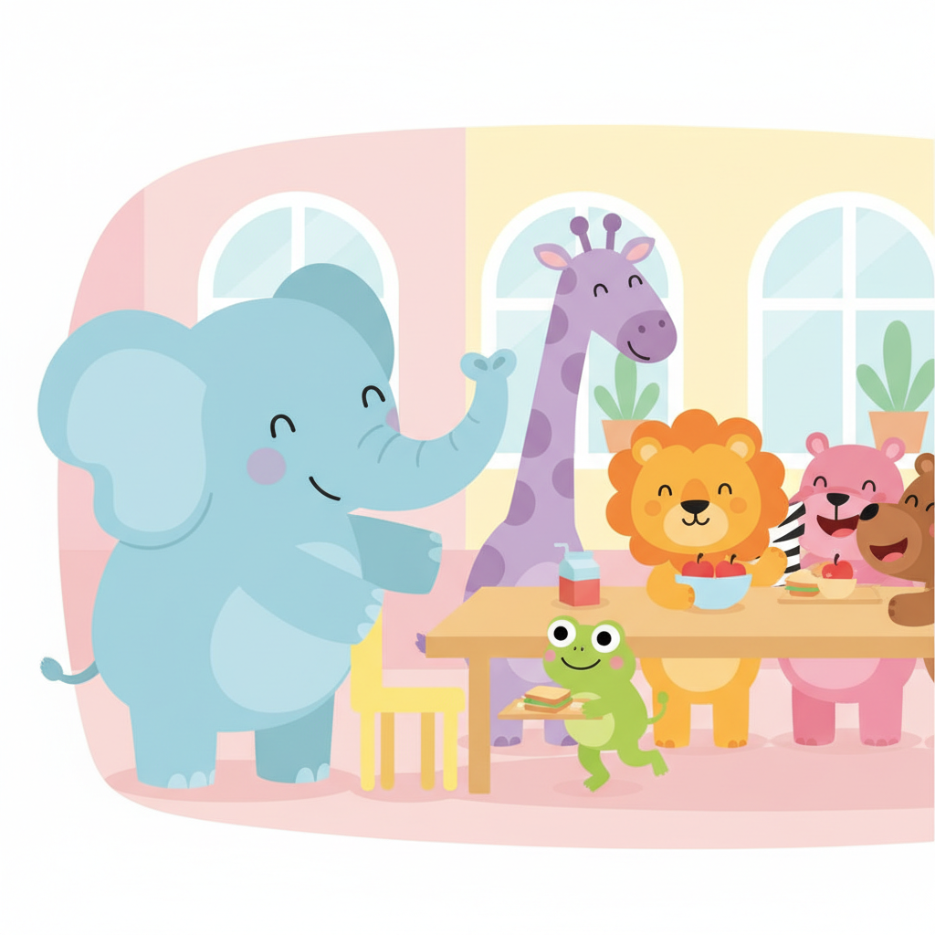 "scenario_text": "The elephant is saving a seat for the frog at lunch!",
